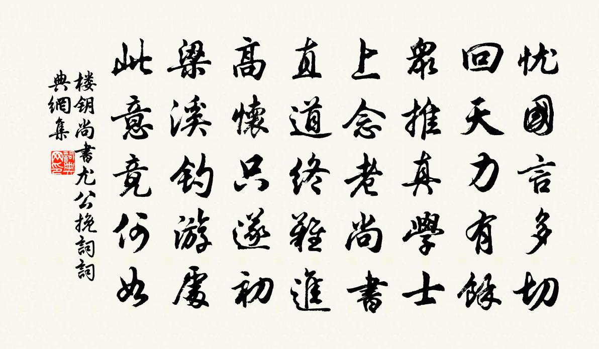 詩詞名句歷史字典書法欣賞書法字典國語詞典說文解字康熙字典古漢語字典標 題 作 者 詩 句 尚書尤公輓詞作者:樓鑰 朝代:宋代尚書尤公輓詞原文憂國言多切,回天力有餘。眾推真學士,上念老尚書。直道終難進,高懷只遂初。梁溪釣游處,此意竟何如。詩詞問答問:尚書尤公輓詞的作者是誰?答:樓鑰問:尚書尤公輓詞寫於哪個朝代?答:宋代樓鑰尚書尤公輓詞書法欣賞尚書尤公輓詞書法作品詩詞推薦竹友為徐南卿作姜夔〔宋代〕發已星星帶已寬,徐郎猶自客長安。家山竹好無由看,謾種庭心一兩竿。慶孝僧自金陵回虎林仇遠〔宋代〕白下長乾住幾年,西風入夢即飄然。斷橋梅柳全非舊,古剎鍾魚大勝前。萬里豈宜常作客,一簞且可穩棲禪。滄江和張器先十絕楊萬里〔宋代〕誰雲涸轍困波臣?合脫青鞋立縉紳。寄與有司高著眼,後來文格待渠新。姚岩寺路懷友(一作桃岩懷賈島)顧非熊〔唐代〕路向姚岩寺,多行洞壑間。鶴聲連塢靜,溪色帶村閒。疏葉秋前渚,斜陽雨外山。憐君不得見,詩思最相關。柳梢青 賦枯梅寄張郎中馬同知 強村叢書用繡張伯淳〔元代〕冷淡根。小春時候,兩蕊三花。栽向西湖,移來東閣,一任安排。絕憐瘦影橫斜。但宜在、山巔水涯。花里平安,雜題陸游〔宋代〕傳家只要存書種,學道當知養聖胎。寧使終身遷比景,莫令一物污靈台。百舌杜甫〔唐代〕百舌來何處,重重只報春。知音兼眾語,整翮豈多身。花密藏難見,枝高聽轉新。過時如發口,君側有讒人。贈相士錢嫰溪李曾伯〔宋代〕塞北煙氛掃未開,何勞青眼過江來。道人已辦游山屐,福將誰勝上馬杯。餈韻楊公濟奉議梅花十首蘇軾〔宋代〕鮫綃剪碎玉簪輕,檀暈妝成雪月明。肯伴老人春一醉,懸知欲落更多情。達磨贊釋心月〔宋代〕面壁而坐,見成行貨。立雪求之,還同蹉過。須知罪犯彌天大。頌古釋慧空〔宋代〕南瞻部州鉏地,東弗於逮種麥。西瞿耶尼拽磨,北郁單越喫面。賀新郎劉過〔宋代〕水浴芙蓉淨。護濃香、遲開半斂,靚妝臨鏡。長憶耶溪薰風裡,年少紅顏照映。夜露冷、酒隨香醒。回首當時同舟送提刑司勛文同〔宋代〕同昔分符守興元,公始仗節來武信。因而出入在門下,未有三日不親近。台移希疏獄讞少,凜凜清風滿牆仞。乘閒嘲崔生劉行敏〔唐代〕崔生犯夜行,武候正嚴更。幞頭拳下落,高髻掌中擎。杖跡胸前出,繩文腕後生。愁人不惜夜,隨意曉參橫。再和答秀實王洋〔宋代〕紅剝芳菲綠作叢,遙知惆悵兩心同。結交舊燕多情語,消病殘花無用紅。獻計欲居塵境外,投各且向酒壺中。新來題寶蓋岩寺張士遜〔宋代〕身為冠冕留,心是雲泉客。每到雲泉中,便擬忘歸跡。況茲寶蓋岩,天造清涼宅。稅車官道邊,誰知願言適。句翁宏〔唐代〕風高弓力大,霜重角聲乾。句王安石〔宋代〕青山捫虱坐,黃鳥俠書眠。次金東園漁家雜詠八首楊公遠〔宋代〕篙撐舴艋閒來往,手把絲綸自卷舒。妻子已諳風露慣,篷窗便可當茅廬。寄吳山淨上人顧非熊〔唐代〕憶共 * 話夜鍾,別來落葉閟行蹤。遙知黛色秋常玩,住向靈岩第幾峰。名句推薦財以成者,扶而埋之;後得生者,而久禁之。墨子《墨子·22章 節用(下)》 春秋多佳日,登高賦新詩。陶淵明《移居二首》 勿言草卉賤,幸宅天池中沈約《詠新荷應詔》 背法而治,此任重道遠而無馬、牛,濟大川而無舡、楫也。商鞅《商君書·弱民》 今夕不登樓,一年空過秋。高觀國《菩薩蠻·何須急管吹雲暝》 天子之怒,伏屍百萬,流血千里。劉向《戰國策·魏四·秦王使人謂安陵君》 飛錫離鄉久,寧親喜臘初。錢起《送外甥懷素上人歸鄉侍奉》 天時、地利、人和,三者不得,雖勝有殃。孫臏《孫臏兵法·月戰》 冰骨清寒瘦一枝。玉人初上木蘭時。吳文英《浣溪沙·題李中齋舟中梅屏》 雁聚河流濁,羊群磧草膻。齊己《送人游塞》