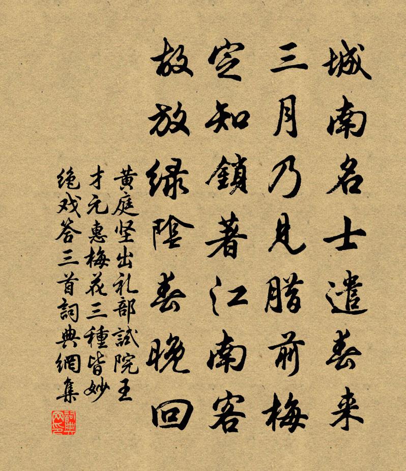 問:《出禮部試院王才元惠梅花三種皆妙絕戲答三首》的作者是誰?答:黃庭堅