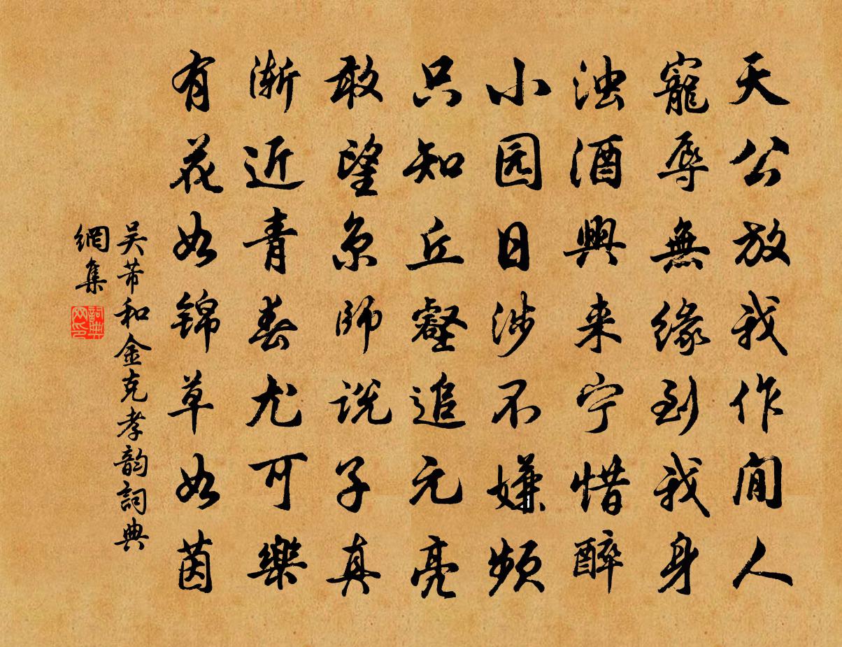 詩詞名句歷史字典書法欣賞書法字典國語詞典說文解字康熙字典古漢語字典標 題 作 者 詩 句 和金克孝韻作者:吳芾 朝代:宋代和金克孝韻原文天公放我作閒人,寵辱無緣到我身。濁酒興來寧惜醉,小園日涉不嫌頻。只知丘壑追元亮,敢望京師說子真。漸近青春尤可樂,有花如錦草如茵。詩詞問答問:和金克孝韻的作者是誰?答:吳芾問:和金克孝韻寫於哪個朝代?答:宋代吳芾和金克孝韻書法欣賞和金克孝韻書法作品詩詞推薦金盞倒垂蓮佚名〔宋代〕依約疏林,見盈盈春意,幾點霜蕤。應是東君,試手作芳菲。粉面倚、天風微笑,是日暖、雪已晴時。人靜么鳳翩奉試詠青荊冬倩〔唐代〕路辟天光遠,春還月道臨。草濃河畔色,槐結路邊陰。未映君王史,先標胄子襟。經明如可拾,自有致雲心。偈頌一百零四首釋紹曇〔宋代〕天高地厚,水闊山遙。古今常理,何用忉忉。衲僧家,腳跟下一段光明,十日並照,明察秋毫。不揀侯門射策,何好事近陳亮〔宋代〕籬菊吐寒花,香弄小園秋色。攜手畫闌西畔,憶去年同摘。小亭依舊鎖西風,往事已無跡。懶向碧雲深處,問征鴻應真二首劉克莊〔宋代〕五百逋逃士,劉郎不放心。教醒阿羅漢,飛空無處尋。清明日觀妓舞聽客詩白居易〔唐代〕看舞顏如玉,聽詩韻似金。綺羅從許笑,弦管不妨吟。可惜春風老,無嫌酒醆深。辭花送寒食,並在此時心。丙寅十四首效韋蘇州黃庭堅〔宋代〕出身世喪道,解綬飢驅我。杯中得醉鄉,去就不復果。豈為俗人言,達人儻余可。和聶之美雞澤官舍詩七首柳司馬光〔宋代〕驛道苦車馬,田廬悲斧斤。誰栽官舍前,老朽完天夫。所願明府心,庇村如庇人。長相思李煜〔唐代〕雲一緺,玉一梭,澹澹衫兒薄薄羅。輕顰雙黛螺。秋風多,雨相和,簾外芭蕉三兩窠。夜長人奈何?榆林郡歌王維〔唐代〕山頭松柏林,山下泉聲傷客心。千里萬里春草色,黃河東流流不息。黃龍戍上遊俠兒,愁逢漢使不相識。宮詞楊皇后〔宋代〕海棠移向小窗栽,高疊盆山合復開。將見紅葩斗新艷,君王應為探花來。塞上曲·胡風略地燒連山戎昱〔唐代〕胡風略地燒連山,碎葉孤城未下關。山頭烽子聲聲叫,知是將軍夜獵還。平水陸游〔宋代〕水悍溪橋敗,沙頹野徑移。年華入詩卷,心事付筇枝。雨霽鵓鳩喜,春歸鶗鳺知。客庖消底物,麥飯薦蕝絲。雜曲歌辭。古別離二首於濆〔唐代〕入室少情意,出門多路岐。黃鶴有歸日,盪子無還時。人誰無分命,妾身何太奇。君為東南風,妾作西北枝。青樓春到村居好四絕鄭剛中〔宋代〕春到村居好,茅檐日漸長。杯深新酒滑,焙暖早茶香。一百五日官舍作宋祁〔宋代〕晉歌本自傳幽憤,楚俗緣何作勝游。宴豆雕文夸瀹卵,俠場星影斗飛毬。光翻蘋吹都無力,暖著花煙不肯流。擣杏碧泉書院偶書花木所有七首胡宏〔宋代〕海棠初破紅如滴,楊柳新回綠似挼。把酒只愁春莫去,望雲時問日如何。過故斛斯校書莊二首杜甫〔唐代〕此老已雲歿,鄰人嗟亦休。竟無宣室召,徒有茂陵求。妻子寄他食,園林非昔游。空餘繐帷在,淅淅野風秋。燕入一翦梅程垓〔宋代〕小會幽歡整及時。花也相宜。人也相宜。寶香未斷燭光低。莫厭杯遲。莫恨歡遲。夜漸深深漏漸稀。風已侵衣。露句趙絳夫〔宋代〕取水觀為政。名句推薦無言暗將紅淚彈闌珊,香銷輕夢還納蘭性德《河傳·春淺》 沉憂能傷人,綠鬢成霜蓬。李白《怨歌行》 鏡中已覺星星誤。人不負春春自負。辛棄疾《玉樓春·風前欲勸春光住》 不修身而求個名於世者,猶貌甚惡而責妍影於鏡也。顏之推《顏氏家訓·名實篇》 人生何事須聚畜,一身之 外亦復何須。李大師、李延壽《南史·列傳·卷三十三》 方慚不耕者,祿食出閭里。韋應物《觀田家》 治民者,禁奸於未萌。韓非及後人《韓非子·心度》 松江上,念故人老矣,甘臥閒雲。吳文英《沁園春·送翁賓暘游鄂渚》 柳垂江上影,梅謝雪中枝。晏幾道《臨江仙·身外閒愁空滿》 寥落古行宮,宮花寂寞紅。元稹《行宮》