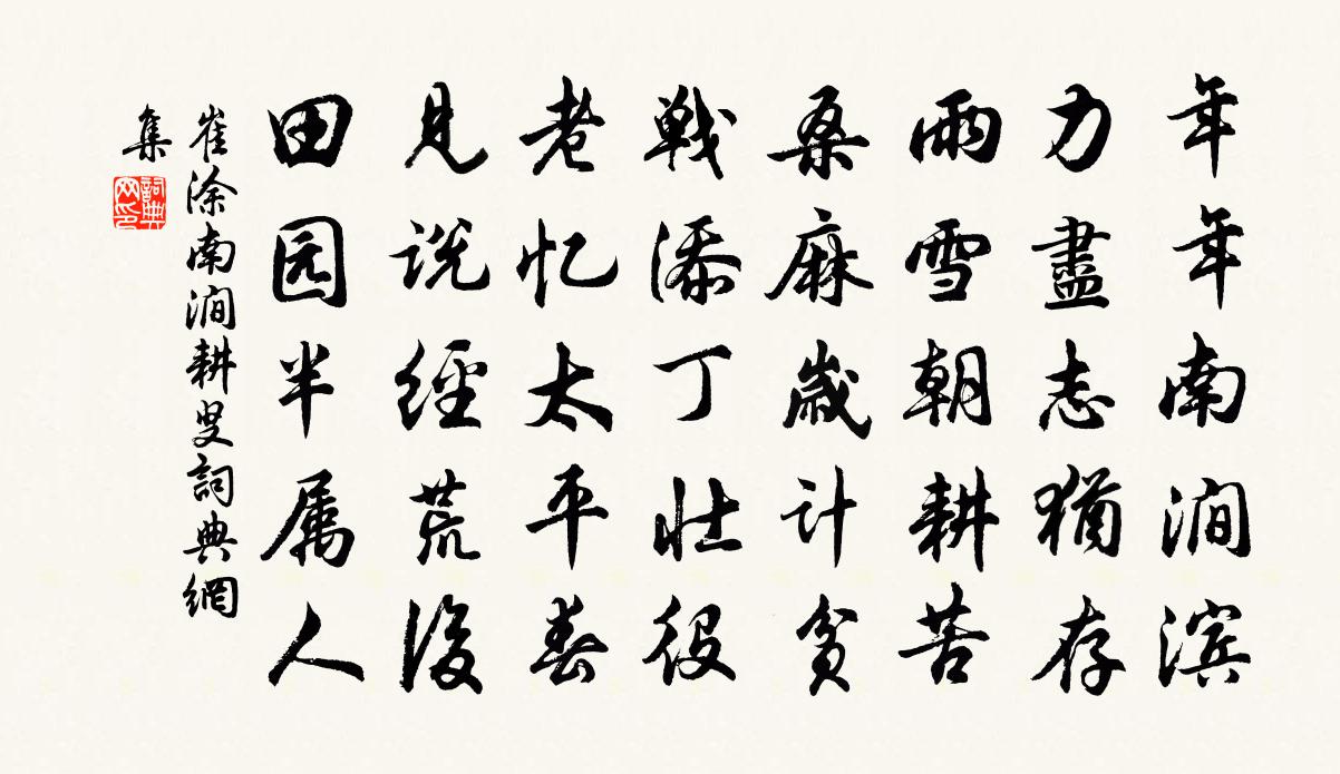 年年南澗濱,力盡志猶存。雨雪朝耕苦,桑麻歲計貧。