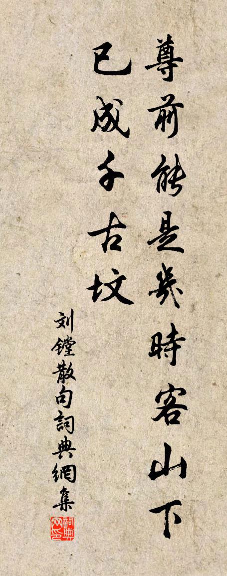 詩詞名句歷史字典書法欣賞書法字典國語詞典說文解字康熙字典古漢語字典標 題 作 者 詩 句 句作者:劉鏜 朝代:宋代句原文尊前能是幾時客,山下已成千古墳。詩詞問答問:句的作者是誰?答:劉鏜問:句寫於哪個朝代?答:宋代劉鏜句書法欣賞句書法作品詩詞推薦謝人送水仙趙蕃〔宋代〕珍重江南好事家,老將種蒔作生涯。似憐寂寞書齋里,折贈盈籃栗玉花。巽公院五詠曲講堂柳宗元〔唐代〕寂滅本非斷,文字安可離。曲堂何為設,高士方在斯。聖默寄言宣,分別乃無知。趣中即空假,名相與誰期。願言九日黃史鑄〔宋代〕露叢花發例皆遲,異品敷金不詭隨。應節及時真可愛,登高且把泛瑤卮。柴門何應龍〔宋代〕何必逢人盡說貧,自來求已勝求人。梅花落盡青山遠,深掩柴門過一春。次韻僧潛見贈蘇軾〔宋代〕道人胸中水鏡清,萬象起滅無逃形。獨依古寺種秋菊,要伴騷人餐落英。人間底處有南北,紛紛鴻雁何曾冥。閉門雜記五言十首劉克莊〔宋代〕先傳傳後學,自覺覺天民。魯儒迷甚者,何以救迷人。江永陳杰〔宋代〕江之永兮,我瞻禹跡。微江之兮,三正幾息。安肅軍范成大〔宋代〕從古銅門控朔方,南城煙火北城荒。台家抵死爭溏濼,滿眼秋蕪襯夕陽。峽州東山陸游〔宋代〕十年不踏東山路,今日重為放浪行。老矣判無黃鵠舉,歸哉惟有白鷗盟。新秧刺水農家樂,修竹環溪客眼明。已駕宋從事方乾〔唐代〕出眾仙才是謫仙,裁霞曳繡一篇篇。雖將潔白酬知己,自有風流助少年。欹枕臥吟荷葉雨,持杯坐醉菊花天。冥搜梅花六首趙蕃〔宋代〕勁草端能抗疾風,歲寒乃識後凋松。是知植物多尤異,更有梅花巧耐冬。青女素娥能莫逆,巽二滕六漫豪凶。嗟予又賜頌宋孝宗〔宋代〕欲言心佛雞分別,俱是精微無礙通。跳出千重縛不住,天涯海角任西風。過元家履信宅白居易〔唐代〕雞犬喪家分散後,林園失主寂寥時。落花不語空辭樹,流水無情自入池。風盪宴船初破漏,雨淋歌閣欲傾欹。前庭寄徐明叔郎中王洋〔宋代〕雪釀寒漿凍結醅,獨謠興懶自持杯。聊憑書詰徐居士,許折梅花不寄來。趙子充示竹夫人詩蓋涼寢竹器憩臂休膝似非夫黃庭堅〔宋代〕青奴元不解梳妝,合在禪齋夢蝶床。公自有人同枕簞,肌膚冰雪助清涼。奉和郎中遊仙山四瀑泉兼寄李吏部包秘監趙婺州齊處州戴公懷〔唐代〕今日永嘉守,復追山水游。因尋莽蒼野,遂得軒轅丘。訪古事難究,覽新情屢周。溪垂綠筱暗,岩度白雲幽。過石句杜衍〔宋代〕獨無風雅可流傳。送潘少白赴連山館舒岳祥〔宋代〕桐木深坑嶺,菊田高弟家。聞渠能館致,去我使人嗟。箬長潛沙筍,蘭開傍石花。古琴留掛壁,此意澹無邪。送鍾子崧解官而歸趙蕃〔宋代〕三年簿領淹佳譽,一日江山問舊程。卻恨過從曾未數,浪緣文字許深評。已傳相國知韓愈,安用河南薦賈生。此去早春夜宴武則天〔唐代〕九春開上節,千門敞夜扉。蘭燈吐新焰,桂魄朗圓輝。送酒惟須滿,流杯不用稀。務使霞漿興,方乘泛洛歸。名句推薦夕陽鳥外,秋風原上,目斷四天垂。柳永《少年游·長安古道馬遲遲》 世治不輕,世亂不沮;同弗與,異弗非也。戴聖《禮記·儒行》 恥之於人大矣。為機變之巧者,無所用恥焉。孟子《孟子·盡心章句上·第七節》 寧添一斗,莫添一口。佚名《增廣賢文·上集》 勾引東風,也知芳思難禁。韓疁《高陽台·除夜》 寄治亂於法術,托是非於賞罰韓非及後人《韓非子·大體》 念歸林葉換,愁坐露華生。張九齡《西江夜行》 秋風起兮木葉飛,吳江水兮鱸正肥。張翰《思吳江歌》 前經洛陽陌,宛洛故人稀。王維《送魏郡李太守赴任》 白雪卻嫌春色晚,故穿庭樹作飛花。韓愈《春雪》