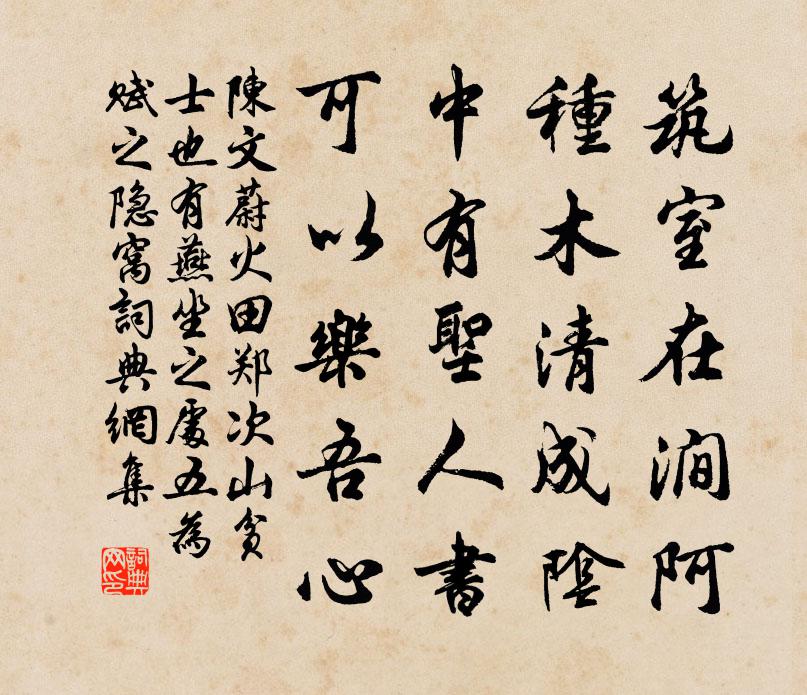 詩詞名句歷史字典書法欣賞書法字典國語詞典說文解字康熙字典古漢語字典標 題 作 者 詩 句 火田鄭次山貧士也有燕坐之處五為賦之隱窩作者:陳文蔚 朝代:宋代原文築室在澗阿,種木清成陰。中有聖人書,可以樂吾心。詩詞問答問:《火田鄭次山貧士也有燕坐之處五為賦之隱窩》的作者是誰?答:陳文蔚問:該詩寫於哪個朝代?答:宋代書法欣賞火田鄭次山貧士也有燕坐之處五為賦之隱窩書法作品詩詞推薦上皇八十慶壽赦書至海陵敬成三十二韻孫應時〔宋代〕禹跡乾坤舊,堯天日月新。龍躔臨丙午,鳳歷首庚辰。卦直三陽泰,時通萬物屯。暖音鳴嶰律,淑氣鼓鴻鈞。奕葉曹娥廟翁逢龍〔宋代〕再拜靈娥廟,魂清若可招。幡風吹古流,帆月落殘潮。碑有行人讀,香多野客燒。迎神漢朝曲,時聽起雲霄。春日衛宗武〔宋代〕化工溥至仁,生機運不停。榮觀遍原野,宇宙一丹青。秋江送客白居易〔唐代〕秋鴻次第過,哀猿朝夕聞。是日孤舟客,此地亦離群。蒙蒙潤衣雨,漠漠冒帆雲。不醉潯陽酒,煙波愁 * 。詠史詩袁宏〔魏晉〕周昌梗槩臣。辭達不為訥。汲黯社稷器。棟樑表天骨。陸賈厭解紛。時與酒檮杌。婉轉將相門。一言和平勃。趨舍賈島徐鈞〔宋代〕早棄浮屠學綴文,爭知命薄第難登。行吟月下敲門句,氣味依然不脫僧。元丹歌贈會稽陳處士曹勛〔宋代〕塵波溢目深溟渤,往古來今空出沒。喜君相見話丹經,起我凌雲惡阡陌。我生素乏兒女姿,面上巉岩聳山骨。少年閒居韓偓〔唐代〕厭聞趨競喜閒居,自種蕪菁亦自鋤。麋鹿跳梁憂觸撥,鷹鸇搏擊恐粗疏。拙謀卻為多循理,所短深慚盡信書。刀尺立秋夕涼風忽至,炎暑稍消,即事詠懷,寄汴白居易〔唐代〕裊裊檐樹動,好風西南來。紅缸霏微滅,碧幌飄颻開。披襟有餘涼,拂簟無纖埃。但喜煩暑退,不惜光陰催。河秋長門怨崔道融〔唐代〕長門春欲盡,明月照花枝。買得相如賦,君恩不可移。丁尚書輓詞二首司馬光〔宋代〕彤闕晨趨退,蕭然忘世榮。閒齋虛自白,永日澹無營。脫略簪紳累,沈冥丘壑情。貪夫誠有激,千載素風清。忠厚吟邵雍〔宋代〕小人斯須,君子長久。斯須傾邪,長久忠厚。偈頌七十一首釋了惠〔宋代〕孟嘉已前,淵明去後。誰家籬畔欠黃花,那個杯中無白酒,重陽只有九月九。呵呵呵,始信茱萸茶苦澀,展眉人少暫還網山井伯以詩送別次韻林亦之〔宋代〕暫著芒鞋歸故丘,新詩吟罷恍如秋。麥堆去後惟君勝,荔子紅時送客愁。好句合教吾北面,生年長恨海東頭。如今和吳夢授韻王炎〔宋代〕卷舒有道在隨時,隱約何須感慨為。末路老夫甘退縮,華途吾友尚驅馳。準繩行義當趨正,淘練文章自出奇。舉世琴枕蘇軾〔宋代〕清眸作金徽,素齒為玉軫。響泉竟何用,金帶常苦窘。斕斑漬珠淚,宛轉堆雲鬒。君若安七弦,應彈卓氏引。和音宋祁〔宋代〕危弦度曲汎孤鉤,一世知音未易求。直把將雛為陌上,主人猶復自搖頭。大慈道趙師秀〔宋代〕青苔生滿路,人跡至應稀。小寺鳴鐘晚,深林透日微。野花春後發,山鳥澗中飛。或有相逢者,多因採藥歸。書韓乾二馬蘇軾〔宋代〕赤髯碧眼老鮮卑,回策如縈獨善騎。赭白紫騮俱絕世,馬中嶽湛有妍姿。粹老使君前被召約往它山謁善政侯祠既不果以舒坦〔宋代〕長江滾滾西南流,秋水時至狂不收。大浪似屋山欲浮,王侯神智禹所啾。萬鬼琢石它山幽,梅梁贔屓臥龍虬。咄嗟名句推薦路出大梁城,關河開曉晴。謝榛《渡黃河》 清晨入古寺,初日照高林。常建《題破山寺後禪院》 青山朝別暮還見,嘶馬出門思舊鄉。李頎《送陳章甫》 天與三台座,人當萬里城。張九齡《奉和聖制送尚書燕國公赴朔方》 見面憐清瘦,呼兒問苦辛。蔣士銓《歲暮到家》 境難足於心,盡行放下,則未有不足矣。王永彬《圍爐夜話·第一一三則》 如欲平治天下,當今之世,捨我其誰也。孟子《孟子·公孫丑章句下·第十三節》 舍其所爭,取其所棄,不亦君子乎?王通《中說·卷四·事君篇》 寵辱不驚,肝木自寧陳繼儒《小窗幽記·集靈篇》 萬里辭家事鼓鼙,金陵驛路楚雲西。劉長卿《送李判官之潤州行營》