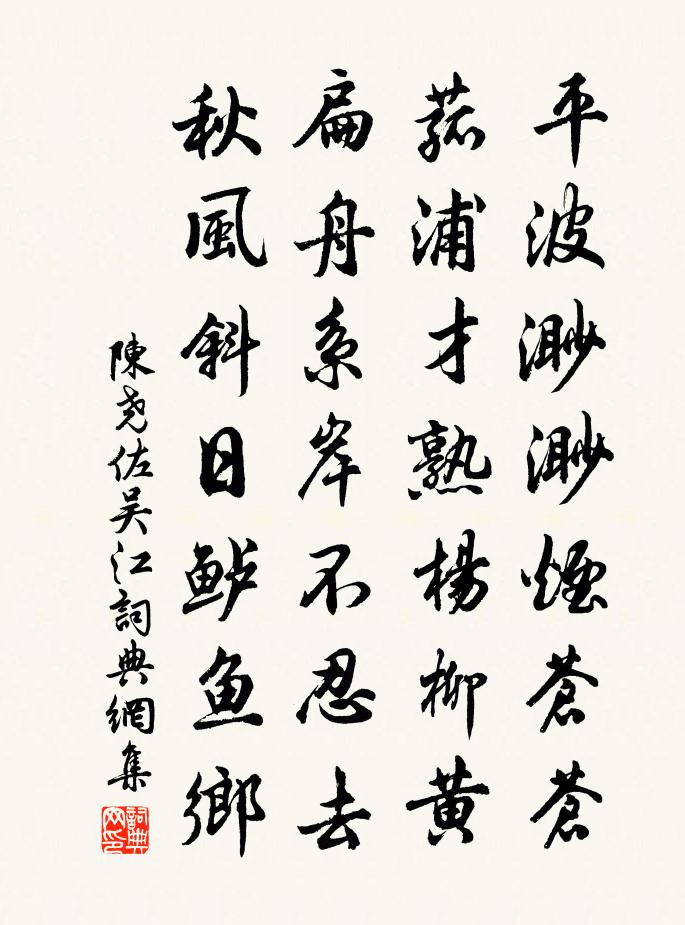 詩詞名句歷史字典書法欣賞書法字典國語詞典說文解字康熙字典古漢語字典標 題 作 者 詩 句 吳江作者:陳堯佐 朝代:宋代吳江原文平波渺渺煙蒼蒼,菰浦才熟楊柳黃。扁舟系岸不忍去,秋風斜日鱸魚鄉。詩詞問答問:吳江的作者是誰?答:陳堯佐問:吳江寫於哪個朝代?答:宋代陳堯佐吳江書法欣賞吳江書法作品詩詞推薦次韻王尉致香方岳〔宋代〕客有知吾癖,能分一雪涼。只將蘭意思,自與夢商量。竹密雨聲雋,窗深山意長。研朱對周易,老鼎亦英揚。宣曲二十二韻劉筠〔宋代〕八月收民算,三千異典章。天機從此淺,國艷或非良。玉戶銅為沓,羅幬象作床。驪姬初悔泣,飛燕近專房。蓮小生查子·獨游西岩辛棄疾〔宋代〕青山招不來,偃蹇誰憐汝?歲晚太寒生,喚我溪邊住。山頭明月來,本在天高處。夜夜入青溪,聽讀《離騷》去。春日三首范成大〔宋代〕藥欄花暖小猧眠,雪白晴雲水碧天。煮酒青梅寒食過,夕陽庭院鎖鞦韆。讀王德甫文卷因送省試葉適〔宋代〕瞢頭文之病,敖腳最所患。軒其奮勇果,榻復墮衰懦。伊人殆天力,卓地挺修乾。欻入岩雲幽,倏出星極爛。儼如觀丙辰省試宣鎖作胡仲弓〔宋代〕一窗絲雨一簾風,當日虀鹽滋味同。見說主司多好句,肯將弄蟻待諸公。捉筆次前韻杜范〔宋代〕晨炊浮早渡,午夜過錢清。越國移舟便,曹娥上堰輕。人言三界近,共指一山橫。古剡明朝到,籃輿數去程。聽政陳造〔宋代〕為政貴中和,偏徇古無取。無心斯善應,奸譽乃其蠹。柰何聞見間,往往用心誤。扶弱抑其強,古或垂此譽。世異早秋出塞寄東台詳正學士駱賓王〔唐代〕促駕逾三水,長驅望五原。天階分斗極,地理接樓煩。溪月明關隴,戎雲聚塞垣。山川殊物候,風壤異涼暄。戍古皋橋岩中道院與梁中砥商嚴翁會飲陳深〔宋代〕夙有岩中約,今晨得得來。幽窗六人坐,清思一時開。雪下宜看竹,天寒未見梅。人生良會少,莫惜共持杯。西山寒日逢韋侍御喻鳧〔唐代〕獬豸霜中貌,龍鍾病後顏。慘傷此身事,風雪動江山。四次寄意陳著〔宋代〕正大從來不徑由,窮崖今卻伴暖愁。棲棲宇內知師孔,吃 * 閒愛說侯。昨夜撞鐘搜句到,他年籠壁把名留。崆峒元日田家薛逢〔唐代〕南村晴雪北村梅,樹里茅檐曉盡開。蠻榼出門兒婦去,烏龍迎路女郎來。相逢但祝新正壽,對舉那愁暮景催。長笑過臨晉縣適調發李復〔宋代〕半夜驚呼府有府,河壖荒邑應軍須。冰生垂血辭鄉淚,風漲飛塵出塞車。千里饋糧人未返,百丁團甲戶無餘。天邊句釋儀〔宋代〕片帆忽逐飛鴻去,知落誰山第幾重。家釀新熟每嘗輒醉妻侄等勸令少飲因成長句以諭之白居易〔唐代〕君應怪我朝朝飲,不說向君君不知。身上幸無疼痛處,瓮頭正是撇嘗時。劉妻勸諫夫休醉,王侄分疏叔不痴。六十對鏡陸游〔宋代〕面大如盤七尺身,珥貂自合上麒麟。詩家事業君休問,不獨窮人亦瘦人。春日風雨中戴復古〔宋代〕瀟瀟風雨閉柴門,年紀衰頹病著身。大似梁鴻居海曲,略如公幹臥漳濱。三春晴暖無多日,一世安閒有幾人。聞道渾鴻臚宅聞歌效白紵柳宗元〔唐代〕翠帷雙卷出傾城,龍劍破匣霜月明。朱唇掩抑悄無聲,金簧玉磬宮中生。下沉秋水激太清,天高地迥凝日晶,羽觴玉田八景文筆夕照李堪〔宋代〕玉邑東南第一峰,銛錐穎脫亂山中。夕陽影里分明見,五色文章耀筆鋒。名句推薦離別家鄉歲月多,近來人事半消磨。賀知章《回鄉偶書二首》 賢能不待次而舉,罷不能不待須而廢。荀子《荀子·王制》 秋草六朝寒,花雨空壇。更無人處一憑闌。朱彝尊《賣花聲·雨花台》 碧野朱橋當日事,人不見,水空流。秦觀《江城子·西城楊柳弄春柔》 事諸父,如事父。事諸兄,如事兄。李毓秀《弟子規·出則弟》 結髮為夫妻,恩愛兩不疑。蘇武《留別妻》 春來茗葉還爭白,臘盡梅梢盡放紅。韓元吉《送陸務觀福建提倉》 孟夏草木長,繞屋樹扶疏。陶淵明《讀山海經·其一》 細腰爭舞君沉醉,白日秦兵天下來。李涉《楚宮怨二首·其一》 能令暫開霽,過是吾無求。韓愈《洞庭湖阻風贈張十一署·時自陽山徙掾江陵》