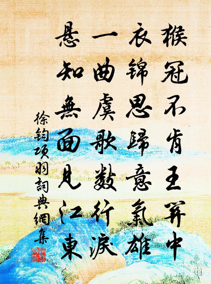 詩詞名句歷史字典書法欣賞書法字典國語詞典說文解字康熙字典古漢語字典標 題 作 者 詩 句 項羽作者:徐鈞 朝代:宋代項羽原文猴冠不肯王關中,衣錦思歸意氣雄。一曲虞歌數行淚,懸知無面見江東。詩詞問答問:項羽的作者是誰?答:徐鈞問:項羽寫於哪個朝代?答:宋代徐鈞項羽書法欣賞項羽書法作品詩詞推薦立春方岳〔宋代〕冰絲玉縷簇青紅,已逗花梢一信風。夢到謝池新雪盡,暖煙含雨綠匆匆。送窮石延年〔宋代〕世人貪利意非均,交送窮愁與底人。窮鬼無歸於我去,我心憂道不憂貧。元忠學士八兄耒離京師遠蒙追送許惠服丹法托張耒〔宋代〕欲盜羲和一點春,五更注想隔重雲。如何但欲獨不死,分我刀圭未費君。問祖顯疾章甫〔宋代〕念子何多病,逢人問好音。可無安樂法,未用短長吟。陋巷鄰南北,春風酒淺深。杯蛇弓落影,應已斷疑心。旴江道中易士達〔宋代〕翠煙濃處著啼鵑,喚得韶光上柳綿。父老已知農事急,一蓑煙雨辨秧田。送王頤赴官八桂孔武仲〔宋代〕久不憶桂海,因君還起予。江光平漫石,山翠上凌虛。黃港窺尋舊,青衫黽勉初。年豐桴鼓息,清趣在琴書。超化雲山沈說〔宋代〕入門松作徑,步步接秋陰。山帶孤城起,雲歸古殿深。隔池聞鶴唳,倚樹看僧吟。笑指煎茶處,青煙出竹林。解嘲陸游〔宋代〕我生學語即耽書,萬卷縱橫眼欲枯。莫道終身作魚蠹,爾來書外有工夫。玩新庭樹,因詠所懷白居易〔唐代〕靄靄四月初,新樹葉成陰。動搖風景麗,蓋覆庭院深。下有無事人,竟日此幽尋。豈惟玩時物,亦可開煩襟。時與自桃川至辰州絕句四十有二趙蕃〔宋代〕摘得青梅江岸邊,兒童競食也堪憐。山青指問紅何樣,說是石榴花欲然。郊居友人相訪崔道融〔唐代〕柴門深掩古城秋,背郭緣溪一徑幽。不有小園新竹色,君來那肯暫淹留。題棲鳳亭四首白玉蟾〔宋代〕竹也多年管風月,鳳兮幾夜宿雲煙。林間有客 * 去,竹化成龍鳳入天。冬曉章上人院皮日休〔唐代〕山堂冬曉寂無聞,一句清言憶領軍。琥珀珠黏行處雪,棕櫚帚掃臥來雲。松扉欲啟如鳴鶴,石鼎初煎若聚蚊。不是試胡夢傳筆二首曾豐〔宋代〕用從書契到於今,萬世功名一洗心。甘與墨卿絕交後,管城蕭散退藏深。若耶溪謝景溫〔宋代〕若耶溪出若耶山,浪里溶溶入醉閒。仙客曾因一箭贈,樵風長到五雲關。數峰蘸碧輕清外,雙舸浮春上下間。料得奉和禁苑餞別應令褚亮〔唐代〕大藩初錫瑞,出牧邇皇京。暫以綠車重,言承朱傳榮。舒桃臨遠騎,垂柳映京營。惠化宣千里,威風動百城。禁籞水仙子·尋梅喬吉〔元代〕冬前冬後幾村莊,溪北溪南兩履霜。樹頭樹底孤山上。冷風來何處香?忽相逢縞袂綃裳。酒醒寒驚夢,笛淒春斷腸對酒陸游〔宋代〕 * 色爽如秋,一榼燈前自獻酬。百萬愁魔降未得,故套用爾作戈矛。五丈觀音董嗣杲〔宋代〕海國風濤擁萬尋,此身何翅直千金。涉波直現昂藏相,結屋還堅報施心。圓得諸方傳轉智,倖存一半有觀音。陰廊讀王伯大都承奏疏王邁〔宋代〕近得故人盈紙書,卻將取辱笑吾徒。世間處胡可羞事,曾見歐陽責范無。名句推薦令公桃李滿天下,何用堂前更種花。白居易《奉和令公綠野堂種花》 治國常富,而亂國常貧。管仲《管子·治國》 故人何處。帶我離愁江外去。呂本中《減字木蘭花·去年今夜》 商葉墮乾雨,秋衣臥單雲。孟郊《秋懷十五首》 當年不肯嫁春風,無端卻被秋風誤。賀鑄《芳心苦·楊柳回塘》 悠悠天宇曠,切切故鄉情。張九齡《西江夜行》 長歌吟松風,曲盡河星稀。李白《下終南山過斛斯山人宿置酒》 朝雲亂人目,帝女湘川宿。吳均《登二妃廟》 水榭風微玉枕涼。牙床角簟藕花香。蘇庠《浣溪沙·書虞元翁書》 大直若屈,大巧若拙,大辯若訥。老子《老子·德經·第四十五章》