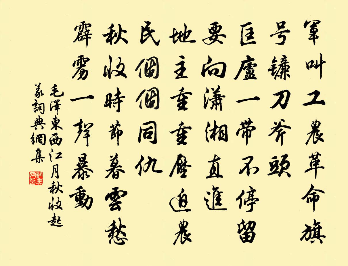 西江月:詞牌名。秋收起義:一九二七年大革命失敗,中國 * 八七會議決定發動農民在秋收季節舉行武裝起義。