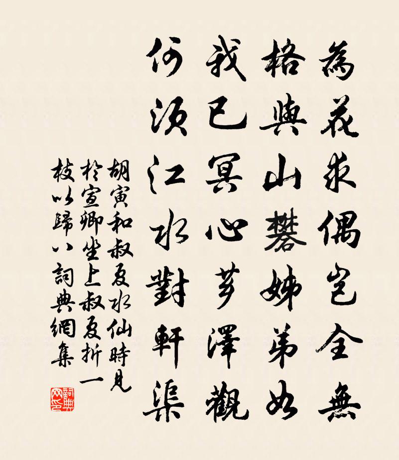 詩詞名句歷史字典書法欣賞書法字典國語詞典說文解字康熙字典古漢語字典標 題 作 者 詩 句 和叔夏水仙時見於宣卿坐上叔夏折一枝以歸八作者:胡寅 朝代:宋代原文為花求偶豈全無,格與山礬姊弟如。我已冥心薌澤觀,何須江水對軒渠。詩詞問答問:《和叔夏水仙時見於宣卿坐上叔夏折一枝以歸八》的作者是誰?答:胡寅問:該詩寫於哪個朝代?答:宋代書法欣賞和叔夏水仙時見於宣卿坐上叔夏折一枝以歸八書法作品詩文賞析【原題】:和叔夏水仙時見於宣卿坐上叔夏折一枝以歸八絕詩詞推薦送人入越夏竦〔宋代〕廣陵江口柳疏疏,自領笙歌上舳艫。一片曉山迎越絕,數程春水背姑蘇。蓮供晚果蜂房細,膾市朝餐線縷粗。他日皇媧補天謠楊維楨〔元代〕盤皇開天露天醜,夜半天星墮天狗。璇樞缺壞奔星斗,輪雞環兔愁飛走。聖媧巧手煉奇石,飛廉鼓鞲虞淵赤。紅絲黃鶯兒王哲〔元代〕堪嗟浮世如何度。酒色 * 財氣。沈埋人人,都緣四般留住。因上上起榮華,節節生迷誤。總夸伶俐惺惺,各斗機簡呂少馮吳則禮〔宋代〕此生不記老婆禪,兀兀坐睡忘永嘆。要聽車聲出銅鼎,故教鼻竊吼 * 。淮山宿昔面目好,葵藿從來骨相寒。白髮秋雨嘆十解楊萬里〔宋代〕濕侵團扇不能輕,冷逼孤燈分外明。蕉葉半黃荷葉碧,兩家秋雨一家聲。行香子沈瀛〔宋代〕野叟愚痴。一向昏迷。笑呵呵、前事皆非。從前業債,今盡拼離。也不能文,不能酒,不能詩。屏除人事,閉卻門三姑石安麐〔宋代〕霧鬢煙鬟彷佛梳,老翁指點說三姑。娉婷不嫁非無意,誰是人間大丈夫。和汪正夫梅鄭獬〔宋代〕江南還有謝娘才,試數春期幾日來。彩勝未隨釵上燕,玉台先插鬢邊梅。句韋奇〔宋代〕山風噓冷信,檐溜管離情。華下司空圖〔唐代〕日炙旱雲裂,迸為千道血。天地沸一鑊,竟自烹妖孽。堯湯遇災數,災數還中輟。何事奸與邪,古來難撲滅。喜遷鶯佚名〔宋代〕一陽初起。漸庾嶺梅雪,才苞香蕊。品格清高,姿容閒雅,別受化工深意。放開獨占嚴景,不使混同凡卉。微雨霽舟中戴復古〔宋代〕扁舟何處泊,沙渚夕陽邊。遠浦橫魚網,高山起燒煙。客行今老矣,秋思日悽然。且復開懷抱,囊中有酒錢。同舊韻韋莊〔唐代〕大火收殘暑,清光漸惹襟。謝莊千里思,張翰五湖心。暮角迎風急,孤鍾向暝沈。露滋三徑草,日動四鄰砧。簟委浮邱山方信孺〔宋代〕碧海何年已變田,空傳雙舄舊時仙。乘風欲挹浮邱袖,同訪朱明別洞天。常州先生以太守入對五首趙蕃〔宋代〕一州固菲輕,四海豈不重。與其事扶疎,孰若深培壅。驥不取德稱,馬多求駕泛。偉哉底柱功,障彼百川洶。醉歌徐珩〔唐代〕得誰釀法乃爾佳,連引數杯極口夸。須臾忘物亦忘我,是非榮辱不可加。兒童相隨拍手笑,阿翁醉也扶歸家。平生山居雜詩九十首曹勛〔宋代〕白日忽若暮,北風天正寒。濃陰欲釀雪,雲侶商量間。群兒競喜躍,婢子爭仰看。命席撥瓮碧,取醉期盡歡。玩丹砂 自詠馬鈺〔元代〕破戒山侗說一場。 * 恥辱不慚惶。邇來酷好飲瓊漿。玄玉玄金盈寶鼎,真男真女滿丹房。貪心更待住蓬莊。招魏倅項教授小飲王炎〔宋代〕菖葉青青初出水,布穀聲中耕事起。去年蝗旱傷農收,今年日望歲豐美。聞道郊原麥浪平,但慮飛蝗遺孽耳。甚欲桃園胡梅所〔宋代〕洞門無鎖白雲深,同日閒表一問津。安待霄時{左礻右黽}桃者,相逢花下說前因。名句推薦教人無處寄相思,落花芳草過前期,沒人知。孫光憲《虞美人·好風微揭簾旌起》 年年今夜,月華如練,長是人千里。范仲淹《御街行·秋日懷舊》 惡人自有惡人磨。施耐庵《水滸傳·第三十回》 賭近盜,淫近殺。馮夢龍《警世通言·卷三十五》 大江流日夜,客心悲未央。謝朓《暫使下都夜發新林至京邑贈西府同僚》 柴門聞犬吠,風雪夜歸人。劉長卿《逢雪宿芙蓉山主人》 一生傲岸苦不諧,恩疏媒勞志多乖。李白《答王十二寒夜獨酌有懷》 才過清明,漸覺傷春暮。李冠《蝶戀花·春暮》 日中則昃,月盈則食佚名《易傳·彖傳下·豐》 天下大勢,分久必合,合久必分。羅貫中《三國演義·第一回》