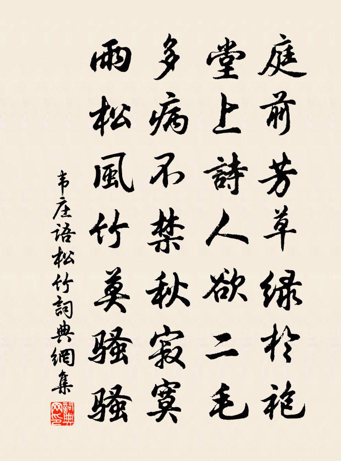 庭前芳草綠於袍,堂上詩人慾二毛。多病不禁秋寂寞,雨松風竹莫騷騷。