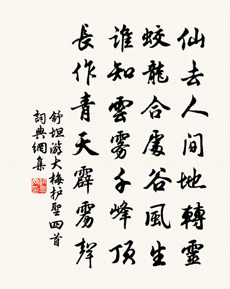 詩詞名句歷史字典書法欣賞書法字典國語詞典說文解字康熙字典古漢語字典標 題 作 者 詩 句 游大梅護聖四首作者:舒坦 朝代:宋代游大梅護聖四首原文仙去人間地轉靈,蛟龍合處谷風生。誰知雲霧千峰頂,長作青天霹靂聲。詩詞問答問:游大梅護聖四首的作者是誰?答:舒坦問:游大梅護聖四首寫於哪個朝代?答:宋代舒坦游大梅護聖四首書法欣賞游大梅護聖四首書法作品詩詞推薦夏日韋應物〔唐代〕已謂心苦傷,如何日方永。無人不晝寢,獨坐山中靜。悟澹將遣慮,學空庶遺境。積俗易為侵,愁來復難整。贈黃君俞方惟深〔宋代〕紫書夕降御床邊,門下褒衣繞數千。捧檄喜隨親色動,授經榮勝主恩偏。相如好賦真童子,賈誼多才患少年。道在句陸游〔宋代〕歌呼宛轉連漁市,燈火青熒擁郡樓。寄李起居四韻杜牧〔唐代〕楚女梅簪白雪姿,前溪碧水凍醪時。雲罍心凸知難捧,鳳管簧寒不受吹。南國劍眸能盼眄,侍臣香袖愛僛垂。自憐題永石屏陳宓〔宋代〕琅玕三尺重南金,風韻仍同綠綺琴。胸次便如斯壁立,千年不受一塵侵。癸巳歲邑中大歉三七侄捐金散谷以濟艱食因成吳芾〔宋代〕吾家謂侄非常兒,自幼讀書嘗下帷。平居事母盡孝道,力供子職曾無違。辛勤農畝三十載,頓立門戶成家肥。恥同再蒙簽判丈惠示惜花三絕句因次韻趙蕃〔宋代〕試覓圖經看,宜章路幾多。彼謀寧去穴,吾備且橫戈。累土生平地,安流起丈波。計愚無可采,敢復問云何。感懷劉木〔宋代〕幾度言歸未得歸,歸心常切故山薇。人於愁處酒難著,春正好時花已稀。殘日明池蝌蚪集,綠隊滿院伯勞飛。浮生詠酒壺宋祁〔宋代〕刻像小蹁躚,無情是所憐。客歡迎指顧,觴冷寄迴旋。屢轉疑投節,將休似取妍。勞君戢深意,醒者勿須傳。和三門竇寺丞見寄魏野〔宋代〕風情不獨少人同,滿腹書寧愧郝隆。職務恰如波正急,輜囊長似獄長空。柳藏衙樹侵堤綠,旗插樓船照岸紅。見說句陳恬〔宋代〕雪晨消磨一半春。三婦艷歌曹勛〔宋代〕大尋雙綺襦,中婦紅羅裾。小婦服翡翠,理曲調笙宇。良人幸安坐,美酒傾玉壺。金山王令〔宋代〕長江從天來,意欲以地分。西山避之逃,東山開為門。木石所不捍,土沙固隨奔。東西兩隨海,勢已無完坤。如何五峰合澗詩蓮華峰釋遵式〔宋代〕青瑛麗芙蕖,造化工且奇。輝彩向星河,結根在天地。臨飈無馨香,御雨不離披。朝靄發翠華,暮雲生碧姿。鼎湖暢伯圭父子下第歸鄉攜嗣由廣文書並手佳章寵度正〔宋代〕先正傳家逮泗濱,一言一論本諸身。是間極力窺真際,物外何心逐像人。贈以酒寄詩杜范〔宋代〕茅茨底下坐寒氈,應是孤吟舌本乾。急遣曲生相問訊,滿澆磊磈潤毫端。登岳陽樓李延永〔宋代〕轉地傾荊水,連天漲洞庭。勢疑吞郡邑,怒欲辟雷霆。依韻酬周騤太博同年范仲淹〔宋代〕孰敢先懷富貴圖,良時須惜幾嗟吁。眾心可致巍巍主,上意思平兩兩符。不稱內朝裨耳目,多慚外補救皮膚。子陵漁家傲 西方樂梵琦〔元代〕聽說西方無量樂。三賢十聖同依託。稽首彌陀圓滿覺。長參學。川流赴海塵成岳。佛性在躬如玉璞。須憑巧匠勤雕池上竹張文姬〔唐代〕此君臨此池,枝低水相近。碧色綠波中,日日流不盡。名句推薦此去與師誰共到,一船明月一帆風。韋莊《送日本國僧敬龍歸》 獨立小橋風滿袖,平林新月人歸後。馮延巳《鵲踏枝·誰道閒情拋擲久》 花落家童未掃,鶯啼山客猶眠。王維《田園樂七首·其六》 歸雁橫秋,倦客思家。張可久《折桂令·九日》 欲尋芳草去,惜與故人違。孟浩然《留別王侍御維 / 留別王維》 綠楊芳草長亭路。年少拋人容易去。晏殊《玉樓春·春恨》 試澆橋下水,今夕到湘中。陳與義《臨江仙·高詠楚詞酬午日》 飲馬渡秋水,水寒風似刀。王昌齡《塞下曲四首》 漫江碧透,百舸爭流。 * 《沁園春·長沙》 直須看盡洛城花,始共春風容易別。歐陽修《玉樓春·尊前擬把歸期說》