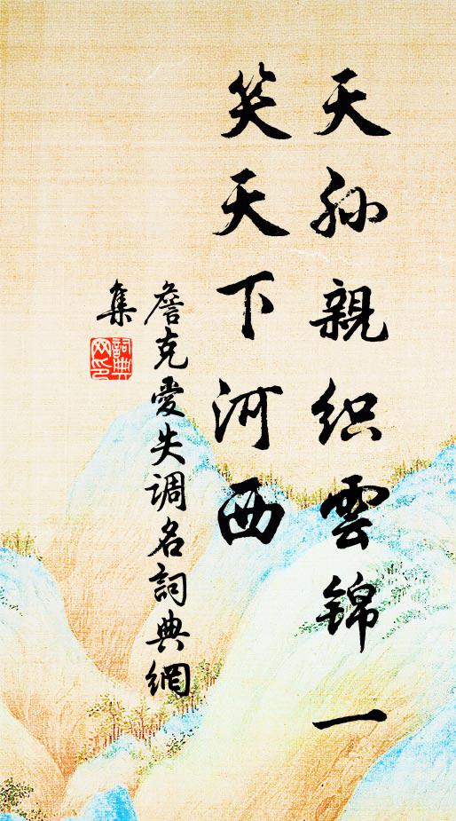 詩詞名句歷史字典書法欣賞書法字典國語詞典說文解字康熙字典古漢語字典標 題 作 者 詩 句 失調名作者:詹克愛 朝代:宋代失調名原文天孫親織雲錦,一笑天下河西。詩詞問答問:失調名的作者是誰?答:詹克愛問:失調名寫於哪個朝代?答:宋代問:失調名是什麼體裁?答:詞詹克愛失調名書法欣賞失調名書法作品詩詞推薦送僧釋重顯〔宋代〕路歧長草帶青青,雲片相兼野思生。多謝春風莫吹散,等閒為蓋贈君行。挽楊訓母莢氏胡寅〔宋代〕戚戚秋風颭旐旌,送車千輛咽佳城。令妻壽母名兼美,孝子慈孫禮備成。望士有詩歌紼綍,梵坊無侶獻鐃鉦。更慚過臨江第八十三文天祥〔宋代〕獨帆如飛鴻,清江轉山急。回首白雲多,山寒夜中泣。春郊即事華岳〔宋代〕樂風吹動綺羅塵,翠蓋紅纓處處新。蝶翅拍開千樹雪,鶯聲催老十洲春。人生有酒須行樂,吏祿無階且食貧。歸客句元晦〔唐代〕石靜如開鏡,山高若聳蓮。筍竿抽玉管,花蔓綴金鈿。村郭寒食雨中作穆修〔宋代〕寂寥村郭見寒食,風光更著微雨遮。鞦千閒垂愁稚子,楊柳半濕眠春鴉。白社皆驚放狂客,青錢盡送沽酒家。眼前贈長安小主人李涉〔唐代〕上清真子玉童顏,花態嬌羞月思閒。仙路迷人應有術,桃源不必在深山。淳熙二的春帖子詞光堯壽聖憲天體道太上皇崔敦詩〔宋代〕采柏浮仙醁,凝酥點壽盤。君王千萬歲,長奉兩宮歡。次韻惟西堂巧山二首陳著〔宋代〕一片靈心著古風,清吟披拂到衰翁。從教湖海相傳去,知我曾來茅屋中。喜客泉次韻馮去非〔宋代〕白雲在空山,丹光照崖水。仙人跡如埽,客至泉輒喜。世路多不平,箇中太清生。政以靜自怡,亦與凡將迎。風波枕上陸游〔宋代〕風竹無時靜,月窗終夜明。時時聽驚鵲,一一數殘更。吳楚民猶困,燕齊虜未平。功名天所命,吾志固難成。奉和隨王殿下詩 七謝朓〔南北朝〕玄冬寂修夜。天圍靜且開。亭皋霜氣愴。松宇清風來。高琴時以思。幽多多感懷。幸藉汾陽想。嶺首一些徘徊。白玉樓步虛詞(六之四)范成大〔宋代〕流鈴響,龍馭籋雲來。夾道騫華籠彩仗,紅雲扶輅輾天街。迎駕鶴毰毸。金鳳花晏殊〔宋代〕九苞顏色春霞萃,丹穴威儀秀氣殫。題品直須名最上,昂昂驤首倚朱欄。次韻何子應留詩為別王灼〔宋代〕蘭若生祠付百年,曾將秀筆紀夤緣。涪江口口歌遺愛,碑版懸知四裔傳。林夫有詩趣歸期次其韻答之李流謙〔宋代〕乾坤大逆旅,日月兩行客。江頭垂楊樹,折盡供馬策。學舍如冰壑,遠與簿書隔。天風吹我去,自哂殊役役。英英再和班字三首晁說之〔宋代〕丈人在何許,箕外潁中間。明映波心月,清余雨面山。短衣非舊甯,陋巷是今顏。不解湟州去,平超十八班。山雲曾協〔宋代〕自聳乾霄勢,應憐望歲心。試將膚寸澤,來作濟時霖。送同年林多益丞寧海陳傅良〔宋代〕同裡衣冠近闊疎,同年齒髮多衰變。美人宜在玉筍班,隱吏亦隨花雨懸。有杭一葦逢迎可,每食雙魚甘旨便。顧瞻小重山曹冠〔宋代〕風颭池荷雨蓋翻。明珠千萬顆,碎仍圓。龜魚浮戲皺清漣。翠光映,垂柳冪瑤煙。幽興寓薰弦。俗塵飛不到,小壺名句推薦身多疾病思田裡,邑有流亡愧俸錢。韋應物《寄李儋元錫》 好景落誰詩句里,蹇驢馱我畫圖間。趙渢《黃山道中》 滿目山河空念遠,落花風雨更傷春。晏殊《浣溪沙·一向年光有限身》 燕子不曾來,小院陰陰雨。蔣春霖《卜運算元·燕子不曾來》 財上分明大丈夫。佚名《增廣賢文·上集》 惡人自有惡人磨。施耐庵《水滸傳·第三十回》 記得舊時,探梅時節。老來舊事無人說。呂本中《踏莎行·雪似梅花》 半床落月蛩聲病,萬里寒雲雁陣遲。曹雪芹《殘菊》 雨中黃葉樹,燈下白頭人。司空曙《喜外弟盧綸見宿》 毋意,毋必,毋固,毋我。孔子弟子《論語·子罕篇》