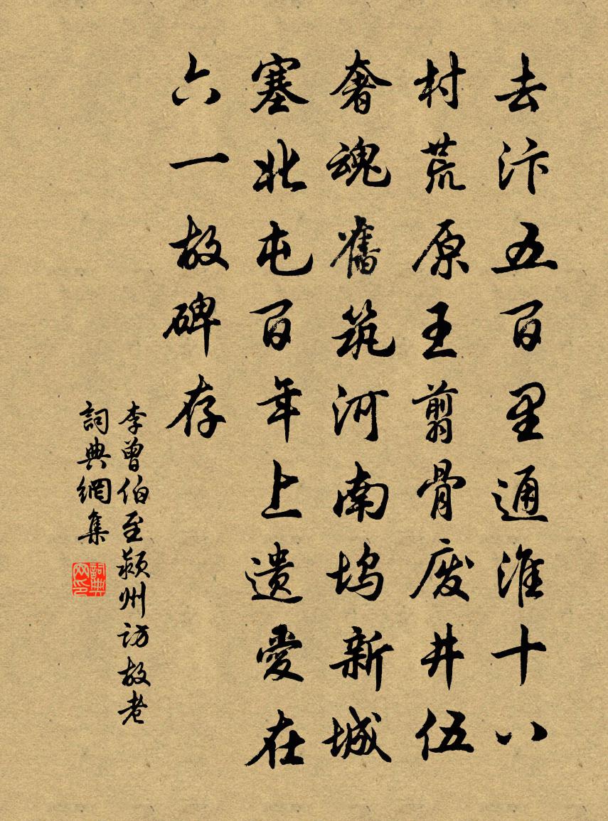 詩詞名句歷史字典書法欣賞書法字典國語詞典說文解字康熙字典古漢語字典標 題 作 者 詩 句 至潁州訪故老作者:李曾伯 朝代:宋代至潁州訪故老原文去汴五百里,通淮十八村。荒原王翦骨,廢井伍奢魂。舊築河南塢,新城塞北屯。百年上遺愛在,六一故碑存。詩詞問答問:至潁州訪故老的作者是誰?答:李曾伯問:至潁州訪故老寫於哪個朝代?答:宋代李曾伯至潁州訪故老書法欣賞至潁州訪故老書法作品詩詞推薦見於給事暇日上直寄南省諸郎官詩因以戲贈白居易〔唐代〕位下才高多怨天,劉兄道勝獨恬然。貧於楊子兩三倍,老過榮公六七年。筆硯莫拋留壓案,簞瓢從陋也銷錢。郡丞搗練子王哲〔元代〕搜芳翠,哂輕盈。驀然聽得賣花聲。艷陽天,氣候明。朝雲白。晚風清。遮藏吹轉蕊珠精。放馨香,滿樹榮。松桂堂蘇泂〔宋代〕素韠歸來痛倚廬,四時花鳥護幽居。躬行已達參乎孝,佩服難忘孔子書。綠蔭千年知不改,清香奕世豈無餘。客來六言章甫〔宋代〕從來鐘鼎無夢,是處林泉可家。料事頗知風雨,逢人且說桑麻。幼子娶歸姜特立〔宋代〕六十得幼子,薄者以為嗤。新婦拜阿翁,茲事在何時。翁今已八秩,又見兒婦歸。不遠年歲間,更作弄璋詩。行香子吳潛〔宋代〕行香子,走筆和韻世事塵輕,寵辱何驚。□不須、更問君平。一帆客棹,幾曲漁汀。正年華晚,露華澹,月華明。西行白居易〔唐代〕衣裘花不單薄,花車馬不羸花弱。藹藹三月天,閒行亦不惡。壽安流水館,硤石青山郭。官道柳陰陰,行宮花漠漠滿庭芳 和張飛卿殿試韻馬鈺〔元代〕七赴皇都,三經殿試,怎知鍊氣綿綿。心猿休歇,意馬罷強顛。燕處申申快意,仗清淨、固住靈源。玄玄處,三光句梅蟠〔宋代〕延相堂前偏利市,袞衣相次又來迎。觸觀物邵雍〔宋代〕萬物備吾身,身貧道未貧。觀時見物理,主敬得天真。心淨星辰夜,情析草木春。自憐斵喪者,能作太平人。大行皇太后輓詞二首蘇轍〔宋代〕家風承舊相,國體繼皇姑。定策從中禁,傳聲震海隅。春風開閉蟄,朝露濕焦枯。萬里生還客,冠纓淚雨濡。送李舍人攜家歸江東覲省韓翃〔唐代〕二十青宮吏,成名似者稀。承顏陸郎去,攜手謝娘歸。夜月回孤燭,秋風試袷衣。扁舟楚水上,來往速如飛。春水李建勛〔唐代〕萬派爭流雨過時,晚來春靜更逶迤。輕鷗散繞夫差國,遠樹微分夏禹祠。青岸漸平濡柳帶,舊溪應暖負蓴絲。風鬟同辛簿簡仰酬思玄上人林泉四首駱賓王〔唐代〕聞君招隱地,仿佛武陵春。緝芰知還楚,披榛似避秦。崩查年祀積,幽草歲時新。一謝滄浪水,安知有逸人。芳晨感興陳杰〔宋代〕滿目塵沙萬里還,客來相對舊儒酸。秋風慣識茅茨屋,朝日仍登苜蓿盤。雲鶴性情閒去好,山林面目本來看。今年友人所居竹岡以關名之曹勛〔宋代〕曉驅羸馬踏塵埃,喜見前關亦快哉。幾啟雙扉迎曉日,未妨斜月掩蒼苔。聲搖沙寨中無比,翠銷城埤寒未開。趁得上已前一日欲雨復晴楊萬里〔宋代〕去年上已政南來,明日初三忽又催。雨壓雲頭渾欲落,風翻日腳急吹開。莫因嶺外無花卉,便對春光廢酒杯。只揀出自薊門行汪元量〔宋代〕出自薊門行,行行望天北。何處愁 * ,黑風走沙石。華裾者誰子,意氣萬人敵。金鞍鞁白馬,馬奮飛虎生翼。書秋晚十詠多病李彌遜〔宋代〕茗枕醒晝寢,粥盂供晚餐。支離慚受粟,拓落笑為官。幡影伽藍古,鈴聲窣堵寒。病多閒步屐,猶可據征鞍。樂居戶文輓詩項安世〔宋代〕荊州十萬戶,惟我獨知公。皓皓巉巉甚,涼涼踽踽中。平生尊骨鯁,互死諱雷同。此士理黃壤,何人立素風。名句推薦送君如昨日,檐前露已團。江淹《古離別》 論山水,則循聲而得貌;言節侯,則披文而見時。劉勰《文心雕龍·辨騷》 雪嶺金河獨向東,吳山楚澤意無窮清江《送婆羅門》 紅淚偷垂,滿眼春風百事非。納蘭性德《採桑子·當時錯》 桃花落後蠶齊浴,竹筍抽時燕便來。朱彝尊《鴛鴦湖棹歌·一百首選二》 露清枕簟藕花香,恨悠揚。顧敻《虞美人·觸簾風送景陽鍾》 寒更承夜永,涼夕向秋澄。駱賓王《送別》 豆蔻連梢煎熟水,莫分茶。李清照《攤破浣溪沙·病起蕭蕭兩鬢華》 矮紙斜行閒作草,晴窗細乳戲分茶。陸游《臨安春雨初霽》 憐君片雲思,一棹去瀟湘。杜牧《送薛種游湖南》