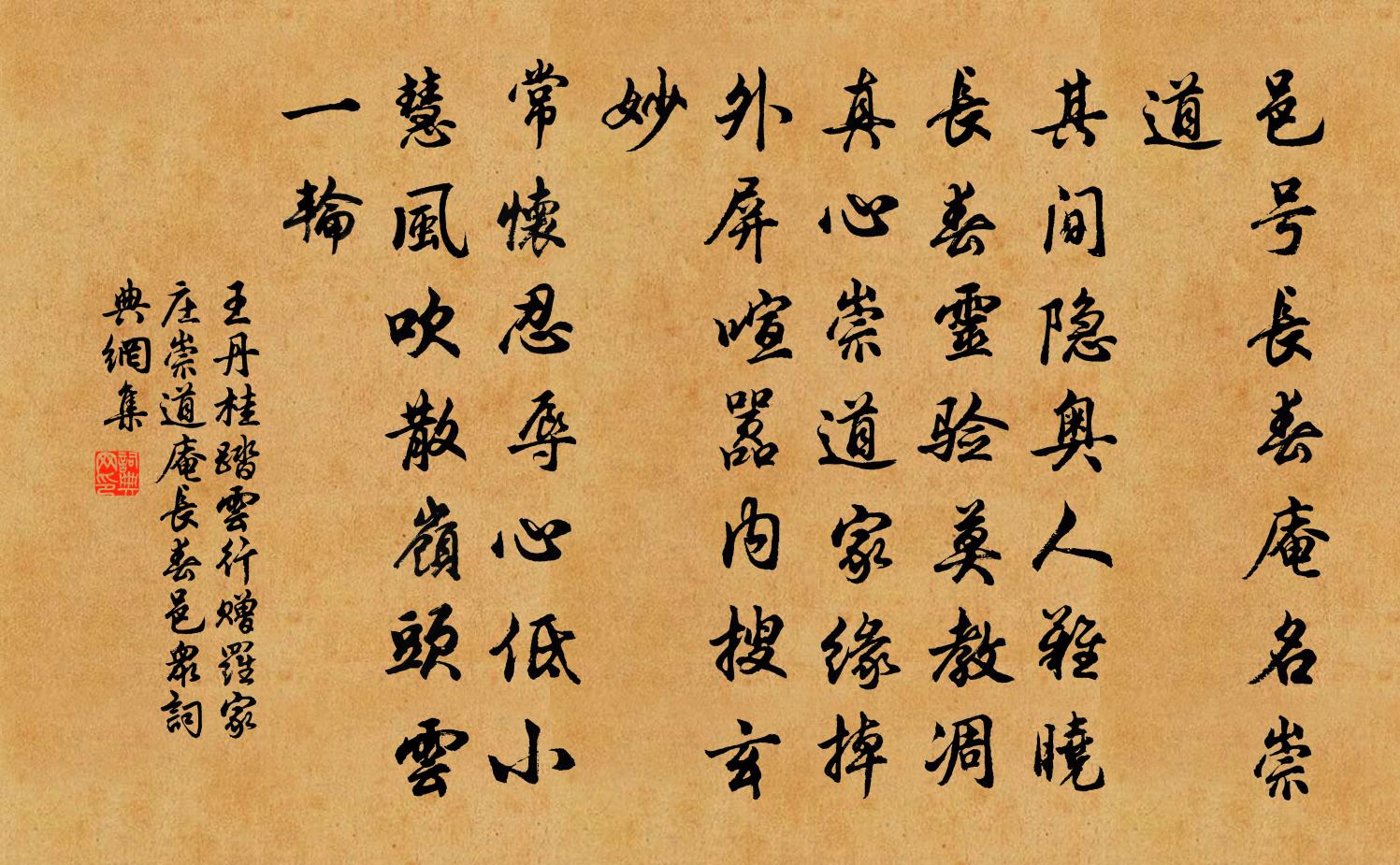 詩詞名句歷史字典書法欣賞書法字典國語詞典說文解字康熙字典古漢語字典標 題 作 者 詩 句 踏雲行 贈羅家莊崇道庵長春邑眾作者:王丹桂 朝代:元代原文邑號長春,庵名崇道。其間隱奧人難曉。長春靈驗莫教凋,真心崇道家緣掉。外屏喧囂,內搜玄妙。常懷忍辱心低小。慧風吹散嶺頭雲,一輪詩詞問答問:《踏雲行 贈羅家莊崇道庵長春邑眾》的作者是誰?答:王丹桂問:該詩寫於哪個朝代?答:元代問:該詩是什麼體裁?答:詞書法欣賞踏雲行 贈羅家莊崇道庵長春邑眾書法作品詩詞推薦天柱峰杜范〔宋代〕探幽不知疲,前賞方未極。晨行越高嶺,拔地見峭石。有如萬菡萏,玲瓏倚秋碧。東西忽異狀,雇步忘所歷。一烽奉送孔十兄賓客承恩致政歸東都舊居權德輿〔唐代〕達人曠跡通出處,每憶安居舊山去。乞身已見抗疏頻,優禮新聞詔書許。家法遙傳闕里訓,心源早逐嵩丘侶。南史南鄉子(送朱元晦行,張欽夫、邢少連同集張孝祥)張孝祥〔宋代〕江上送歸船。風雨排空浪拍天。賴有清尊澆別恨,悽然。寶蠟燒花看吸川。楚舞對湘弦。暖響圍春錦帳氈。坐上定橫吹曲辭雍台歌溫庭筠〔唐代〕太子池南樓百尺,八窗新樹疏簾隔。黃金鋪首畫鉤陳,羽葆亭童拂交戟。盤紆闌楯臨高台,帳殿臨流鸞扇開。早雁十二月二十九日雪三首趙蕃〔宋代〕蔽天才集雨,動地忽驚風。薴絮潛加力,杯觴稍費功。山川相映發,竹樹失青蔥。幼質知難久,茅檐溜已通。晨登衡岳祝融峰譚嗣同〔清代〕身高殊不絕,四顧乃無峰。但有浮雲度,時時一盪胸。地沉星盡沒,天躍日初熔。半勺洞庭水,秋寒欲起龍。喜遷鶯薛昭蘊〔唐代〕殘蟾落,曉鐘鳴,羽化覺身輕。乍無春睡有餘酲,杏苑雪初晴。紫陌長,襟袖冷,不是人間風景。回看塵土似前生早梅梅堯臣〔宋代〕江南近臘時,梅亞雪中枝。一夜欲開盡,百花猶未知。人心空共惜,天意不教遲。莫訝無穠艷,芳筵最好吹。次韻景彝閣後紫薇花盛開梅堯臣〔宋代〕禁中五月紫薇樹,閣後近聞都著花。薄薄嫩膚搔鳥爪,離離碎葉翦晨霞。鳳皇浴去池波響,鳷鵲陰來日影斜。六十句張釜〔宋代〕四水縈紆十里程。和江如晦王洋〔宋代〕婦未生兒先制名,人生適意但隨情。有無何預它人事,輪奐當期異日成。慢拾功名須義勇,較量得失是心兵。鄙文送贈王平甫王令〔宋代〕士學何漫漫,近習忘遠紹。文章多自名,誰出得高調。子才希世珍,拔俗起孤峭。如解萬里駿,不以羈縻要。篇章和子淵除夜司馬光〔宋代〕緹室重飛玉琯灰,物華全與斗杓回。依依殘臘無情別,歷歷新春滿眼來。強取酒卮池翠柏,懶開粽葉覓楊梅。男兒次韻孫翊尉李石〔宋代〕芻狗分明跡已陳,鑿開七竅是天真。低枝斥鷃從渠笑,深水蛟龍得自神。生查子(晴色入青山)韓淲〔宋代〕晴色入青山,更見飛花晚。不是不登臨,自是心情懶。試襞小紅箋,與寫天涯怨。杜宇一聲春,樓下滄波遠。過武侯廟陳古〔宋代〕群雄角逐自驅除,邂逅真龍起畏途。材並管蕭非亞匹,氣吞曹馬直庸奴。兩朝冠蓋尊元老,千載風雲屈壯圖。天欲傾杯序/傾杯樂佚名〔宋代〕昔有王生,冠世文章,嘗隨舊遊江渚。偶爾停舟寓目,遙望江祠,依依陌上閒步。恭詣殿砌,稽首瞻仰,返回歸路示兒舒岳祥〔宋代〕蛻蝶將舒魄尚凝,如痴如夢復如醒。風吹海水飛成雪,月入梅花脈作冰。有口勿言唯飲酒,無家可著不如僧。眼前過雲台李俊民〔元代〕夜半風吹霽色開,曉來殘月過雲台。連山斷處瞰平野,一線黃流掌上來。浣溪沙(再用韻)張孝祥〔宋代〕宮柳垂垂碧照空。九門深處五雲紅。朱衣只在殿當中。細拈絲梢龍尾北,緩攜綸旨鳳池東。阿婆三五笑春風。名句推薦人人親其親、長其長而天下平。孟子《孟子·離婁章句上·第十一節》 老去悲秋強自寬,興來今日盡君歡。杜甫《九日藍田崔氏莊》 惟有南來無數雁,和明月、宿蘆花。鄧剡《唐多令·雨過水明霞》 極目離離,遍地濛濛,官橋野塘。陳維崧《沁園春·詠菜花》 明月照高樓,流光正徘徊。曹植《七哀》 知音如不賞,歸臥故山秋。賈島《題詩後》 論至德者不和於俗,成大功者不謀於眾。司馬遷《史記·趙世家》 長太息以掩涕兮,哀民生之多艱。屈原《離騷》 齊有倜儻生,魯連特高妙。李白《古風·齊有倜儻生》 尊前故人如在,想念我、最關情。周邦彥《綺寮怨·上馬人扶殘醉》