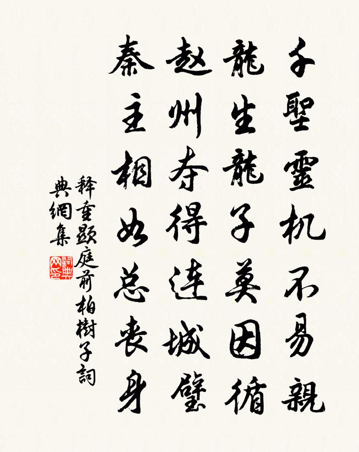 詩詞名句歷史字典書法欣賞書法字典國語詞典說文解字康熙字典古漢語字典標 題 作 者 詩 句 庭前柏樹子作者:釋重顯 朝代:宋代庭前柏樹子原文千聖靈機不易親,龍生龍子莫因循。趙州奪得連城璧,秦主相如總喪身。詩詞問答問:庭前柏樹子的作者是誰?答:釋重顯問:庭前柏樹子寫於哪個朝代?答:宋代釋重顯庭前柏樹子書法欣賞庭前柏樹子書法作品詩詞推薦卜運算元(席上贈瞻明)洪适〔宋代〕修竹拂疏欞,淡月侵涼榭。四畔青山進好風,金鴨香煤灺。寶唾粲珠璣,長袖飄蘭麝。莫問更樓夜若何,且結高陽新居用韓昌黎詩辛勤三十年以有此屋廬為韻蔡戡〔宋代〕我家本儒素,為吏廉而貧。所仰斗升祿,役役常苦辛。無地可置錐,有釜多生塵。空餘清白操,以此遺後人。村居即事陸游〔宋代〕長笛圜鼙曲調新,東家西舍送迎神。不因豐歲人情樂,淡殺溪頭老病人。夜泊劉口雨連明有懷成勻趙蕃〔宋代〕山中風雨夕,招要對床期。今夕風亦雨,牢落孤舟維。蓬窗與竹窗,蕭瑟雨在茲。不寐欲至曙,何繇夢見之。頌古釋道顏〔宋代〕官路無人獨自行,兩家公驗甚分明。路傍偷販私鹽客,草里蹲身過一生。好事近(二月十八日)佚名〔宋代〕桃李緣陰濃,屈指中和三六。恰是仙翁初度,靄瑞煙芬馥。歌喉宛轉繞華堂,總是長生曲。他日臨清亭上,看兒孫投壺曾幾〔宋代〕連朝賜沐吏功休,請以陶壺竹矢投。整整斜斜森劍戟,紛紛藉藉委戈矛。坐人各自慶多馬,老子不惟輸一籌。中否秋宵辭白玉蟾〔宋代〕仰觀銀河月,千林散寒光。佳人今何之,遠在天一方。秋聲酸我鼻,秋色斷我腸。夜深倚西風,清淚如雨滂。世有用明發不寐有懷二人為韻寄李秉彝德叟黃庭堅〔宋代〕桃李春成徑,本自不期人。歷下兩寒士,簞瓢能悅親。恥蒙伐國問,肯臥覆車塵。子既得此友,從之求日新。傷春俞處俊〔宋代〕黏天芳草綠蒙茸,久客傷心望不窮。山色自隨人遠近,鶯聲只在水西東。家園示弟槱鄭樵〔宋代〕隻身空後死,千卷未酬恩。不辱看來世,貪生托立言。無家稱馬糞,何史世龍門。負名今愁晚,中宵吊屈原。謹和老人初冬寓筆十絕洪咨夔〔宋代〕當場弄出百般奇,傀儡棚中老偃師。滿眼機關無著處,到頭線索有收時。獻獨孤尚書許棠〔唐代〕虛拋南楚滯西秦,白首依前衣白身。退鷁已經三十載,登龍曾見一千人。魂離為役詩篇苦,淚竭緣嗟骨相貧。今日崔十四宅問候錢起〔唐代〕曉日早鶯啼,江城旅思迷。微官同寄傲,移疾阻招攜。遠水閭閻內,青山雉堞西。王孫莫久臥,春草欲萋萋。出軍戎昱〔唐代〕龍繞旌竿獸滿旗,翻營乍似雪中移。中軍一隊三千騎,儘是并州遊俠兒。樂語口號楊時〔宋代〕庭下秋風颭旆旌,使君爽氣逼人清。功名共喜千齡會,尊酒仍逢四事並。甘谷殘英留晚翠,雍門余曲有新聲。莫辭送徐秀才之吳齊己〔唐代〕吳都霸道昌,才子去觀光。望闕雲天近,朝宗水路長。海門收片雨,建業泊殘陽。欲問淮王信,仙都即帝鄉。自感二首梅堯臣〔宋代〕我不嫌髭白,白髭何自落。雖然失醜衰,將恐日髭薄。有生無不老,歲事看秋籜。一身憂已大,毫髮誰能度。寄深居馮發管釋斯植〔宋代〕相懷千里外,空望極遙天。處世唯今日,看花憶去年。春風生島樹,夜月滿漁船。此後閒尋處,應須借榻眠。端午帖子皇后合五首歐陽修〔宋代〕蘭苕擢秀迎風紫,槿艷繁開照日紅。嘉節相望傳有舊,深宮行樂自無窮。名句推薦況是清明好天氣,不妨游衍莫忘歸。程顥《郊行即事》 山下孤煙遠村,天邊獨樹高原。王維《田園樂七首·其五》 雙星良夜,耕慵織懶,應被群仙相妒。范成大《鵲橋仙·七夕》 攜來百侶曾游,憶往昔崢嶸歲月稠。 * 《沁園春·長沙》 君子以遏惡揚善,順天休命。佚名《易傳·象傳上·大有》 清鏡無雙影,窮泉有幾重。顧況《酅公合祔輓歌》 賈生年少虛垂淚,王粲春來更遠遊。李商隱《安定城樓》 秋風吹到江村,正黃昏,寂寞梧桐夜雨不開門。顧彩《相見歡·秋風吹到江村》 相思血,都沁綠筠枝。姜夔《小重山令·賦潭州紅梅》 荷花開後西湖好,載酒來時。歐陽修《採桑子·荷花開後西湖好》
