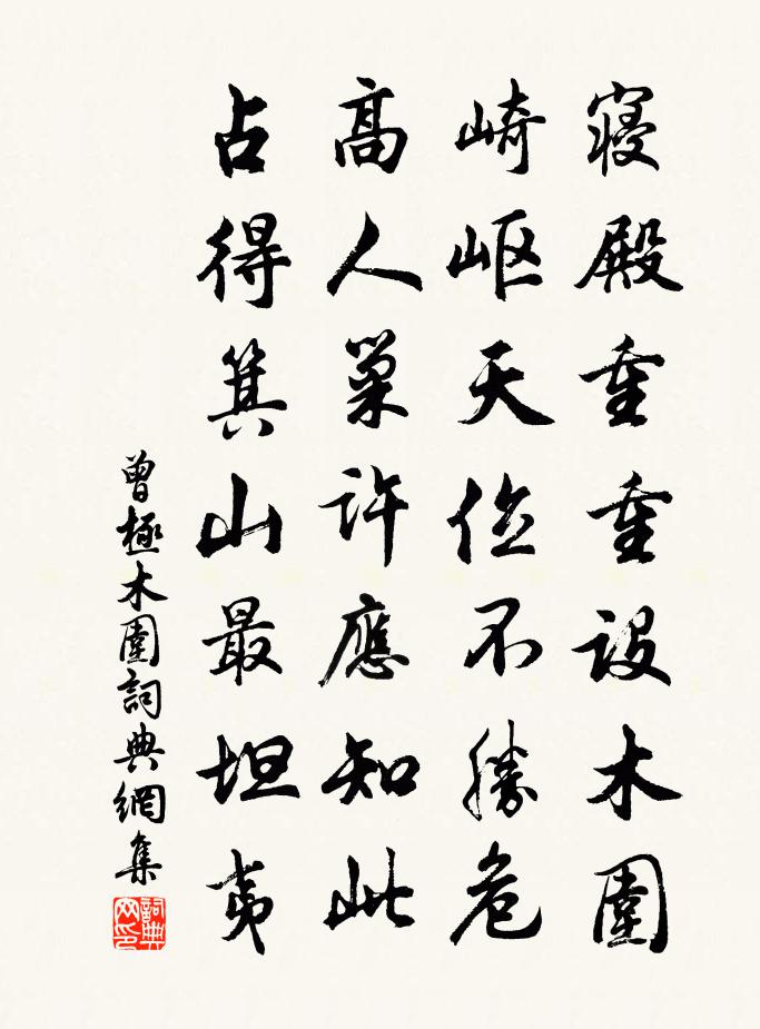 詩詞名句歷史字典書法欣賞書法字典國語詞典說文解字康熙字典古漢語字典標 題 作 者 詩 句 木圍作者:曾極 朝代:宋代木圍原文寢殿重重設木圍,崎嶇天位不勝危。高人巢許應知此,占得箕山最坦夷。詩詞問答問:木圍的作者是誰?答:曾極問:木圍寫於哪個朝代?答:宋代曾極木圍書法欣賞木圍書法作品詩詞推薦句王欽若〔宋代〕龍帶晚煙歸洞府,雁拖秋色入衡陽。浪淘沙杜安世〔宋代〕簾外微風。雲雨回蹤。銀釭燼冷錦幃中。枕上深盟,年少心事,陡頓成空。嶺外白頭翁。到沒由逢。一床鴛被疊香西園堂榭落成種植畢工偶成口號十首呈參政張周麟之〔宋代〕水流映帶清漳宅,野望遲回半月台。只恐宮鶯阻陪賞,日邊便有鶴書來。淮陰遇風雨李彌遜〔宋代〕吾廬豈不好,白日苦易夕,如何芳歲闌,尚此千里役。乾坤一虛舟,浩蕩楚天碧。江山已在眼,道路修且隔。風雨贈蜀士盧石受二首劉克莊〔宋代〕蜀郡盧夫子,沉冥不偶時。幽深病梨賦,奇怪磔蟆詩。古有嚴並李,今無曠與夔。何當短檠下,歷歷叩群疑。史院晚出陸游〔宋代〕已乞殘骸老故丘,誤恩重作道山游。龍津雨過橋如拭,鳳闕煙消瓦欲流。直舍小眠鍾報午,歸途微冷葉飛秋。心知憂旱李石〔宋代〕清和氣始交,候火未可熾。雨師偶失職,焰焰使人畏。東湖冷如水,舍此誰止沸。猊吻呀不吐,濁泥點枯翠。農田內直奉寄聖俞博士歐陽修〔宋代〕千門鑰入斷人聲,樓閣沉沉夜氣生。獨直偏知宮漏永,稍寒尤覺玉堂清。霜雲映月鱗鱗色,風葉飛空摵摵鳴。犬馬從歐陽全真借觀陳擇之蜀中詩題其後趙蕃〔宋代〕書去方懷蜀道長,寄憶未達忽傳亡。那知今夕辰陽郡,灑淚殘詩十數章。偈頌十七首釋師範〔宋代〕諸佛不出世,祖師不西來。顢頇一句子,南嶽對天台。省宿題天官廳後竹林楊萬里〔宋代〕秋聲偷入翠琅玕,葉葉竿竿玉韻寒。聲在樹間元未是,秋聲只在竹林間。金蓮出玉花 於疃于吉先索馬鈺〔元代〕於公聽勸。世事無涯難歷偏。好認玄微。稍稍知空達妙機。家緣*掉。雲水遨遨修大道。異日功成。跨鶴攜雲赴玉題畫四首唐寅〔明代〕綠水紅橋夾杏花,數間茅屋似仙家。主人莫拒看花客,囊有青錢酒不賒。宇文樞密輓詩魏了翁〔宋代〕人物眇然甚,天胡不憗公。北風鳴槭槭,西火亂蓬蓬。襄鄂誰專閫,江淮孰總戎。是應當饋嘆,曩日鎮江功。題質龜軒李新〔宋代〕百歲才容山鬼知,九淵那許季鹹窺。事明告我肯三瀆,謀既協人何兩疑。曳尾詎堪從太史,刳腸猗嘆漏神蓍。試看論俗十二首劉子翬〔宋代〕愚氓擾潢池,囏難亦常態。簪紳有包藏,事異吁可怪。豺聲久伺亂,鯨戮終何悔。游言張凶焰,巧諜移機會。初如偈三十五首釋祖珍〔宋代〕衰老百無堪,擔頭入鬧籃。生涯何所有,彌勒是同龕。奉壽季章大參相公度正〔宋代〕卓立三峰萬仞高,依然兄弟並雄褒。卷懷經濟藏三徑,震起聲音滿九皋。曾向黃扉參道論,詎容綠野恣閒遨。紫雲偈頌七十六首釋子益〔宋代〕天上月圓,人間月半。明眼衲僧,見似不見。盞子撲落地,楪子成七片。安鄉縣西晚泊范成大〔宋代〕水闊鳥烏倦,墟寒童僕飢。一灣村縣過,百折暮江遲。曉夢孤燈見,春陰病骨知。簡書寧不畏,旅力奈先疲。名句推薦秋風蕭瑟,洪波湧起。曹操《觀滄海 / 碣石篇》 倉廩實,則知禮節;衣食足,則知榮辱管仲《管子·牧民》 三千年事殘鴉外,無言倦憑秋樹。吳文英《齊天樂·與馮深居登禹陵》 昔有佳人公孫氏,一舞劍器動四方。杜甫《觀公孫大娘弟子舞劍器行》 一夜相思,水邊清淺橫枝瘦。陳亮《點絳唇·詠梅月》 覆巢之下,復有完卵劉義慶《世說新語·言語》 中山孺子倚新妝,鄭女燕姬獨擅場。李夢陽《汴京元夕》 摘青梅薦酒,甚殘寒,猶怯薴蘿衣。湯恢《八聲甘州·摘青梅薦酒》 竹外桃花三兩枝,春江水暖鴨先知。蘇軾《惠崇春江晚景 / 惠崇春江曉景》 波瀾誓不起,妾心古井水。孟郊《列女操 / 烈女操》