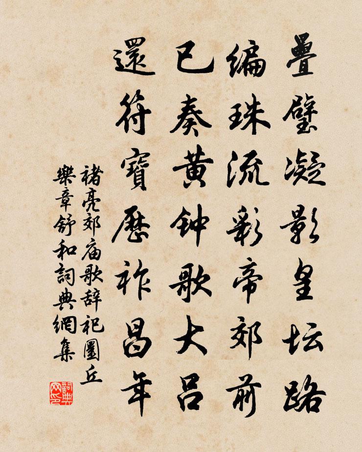 詩詞名句歷史字典書法欣賞書法字典國語詞典說文解字康熙字典古漢語字典標 題 作 者 詩 句 郊廟歌辭祀圜丘樂章舒和作者:褚亮 朝代:唐代郊廟歌辭祀圜丘樂章舒和原文疊璧凝影皇壇路,編珠流彩帝郊前。已奏黃鐘歌大呂,還符寶曆祚昌年。詩詞問答問:郊廟歌辭祀圜丘樂章舒和的作者是誰?答:褚亮問:郊廟歌辭祀圜丘樂章舒和寫於哪個朝代?答:唐代問:郊廟歌辭祀圜丘樂章舒和是什麼體裁?答:樂府褚亮郊廟歌辭祀圜丘樂章舒和書法欣賞郊廟歌辭祀圜丘樂章舒和書法作品注釋全唐詩:卷10_6詩詞推薦周公謹硯黃宗羲〔清代〕弁陽片石出塘棲,餘墨猶然積水湄。一半已書亡宋事,更留一半寫今時。游梅坡席上雜酬李彌遜〔宋代〕醉帽迎風落,春衣日徑斜。花梢密藏路,隱約見山家。送張逸人二首夏竦〔宋代〕徘徊獨鶴翻清景,容曳孤雲下絳霄。朝市山林本無異,前賢出處盡逍遙。劉世疏庵陳岩〔宋代〕亂草枯茅町疃場,寒風捲地日荒荒。有來提起山庵話,又是先生朽骨香。代書寄周愚卿二首趙蕃〔宋代〕窮岡岡上歐陽子,荷屋屋中常不輕。邂逅論詩儻相及,為言即日鬢霜生。呈謝仲連章甫〔宋代〕一葦江頭風雨寒,邂逅三日同清驩。諸塵不染眼自碧,萬事隨緣心已安。雨晴歸路馬蹄疾,問君呼船定何日。杖藜依韻和淮南憲張司封邵雍〔宋代〕庭梧葉半黃,籬菊初受霜。向晚意不快,把酒西南望。望君不見君,但見鴻南翔。正欲思寄書,自成書數行。李仁甫侍講閣學輓詩二首楊萬里〔宋代〕紫橐猶黃帽,青燈到白頭。芝庭過晁董,金鐀續春秋。曉月承明寂,東風玉壘愁。殷懃倩潮水,將淚去西州。次韻平甫贈三靈山人程惟象王安石〔宋代〕家山松菊半荒蕪,杖策窮年信所如。占見地靈非卜筮,算知人貴自陶漁。久諳郭璞言多驗,老比顏含意更疏。只欲相士釋如淨〔宋代〕月落滄溟夜渺漫,衲僧面目太寒酸。擬將禍福輕偷眼,惡浪狂風袞亂山。初冬山居即事十首吳芾〔宋代〕自笑謀生拙,空驚歲月除。年衰惟藉藥,發少不禁梳。盡日扃蓬戶,無人過草廬。晚來閒策杖,緩步當柴車。中書令程文簡輓辭三首蘇頌〔宋代〕邦國藩宣老,階符陟降賢。朝方尊舊德,天不畀遐年。勛載奉常誄,神棲京兆阡。悲笳聲未斷,壟日下虞淵。餞賀方回分韻得歸字游酢〔宋代〕邀客十分飲,送君千里歸。情隨綠水去,目斷白鷗飛。松菊今應在,風塵昔已非。維舟待夜月,能不重依依。燒丹示道流陸游〔宋代〕昔燒大藥青牛谷,磊落玉床收箭鏃。扶桑朝暾謹火候,仙掌秋露勤沐浴。帶間小瓢鬼神衛,異氣如虹夜穿屋。點成風入松陸游〔宋代〕十年裘馬錦江濱。酒隱紅塵。萬金選勝鶯花海,倚疏狂、驅使青春。吹笛魚龍盡出,題詩風月俱新。自憐華發滿紗桐柏崇道觀楊愈〔宋代〕深入黃庭景,徙思五滴泉。青牛眠藥塢,白鹿臥芝田。浮世人空老,長生事宛然。三屍飛不去,皆是自留連。寄答顏長道陳師道〔宋代〕薄命猶多難,浮生未定居。故人憂已矣,千里問何如。白髮羞明鏡,青燈怯細書。不曾知史館,何用索枯魚。次韻王待制游東坡留題十一絕喻良能〔宋代〕先生仙去幾經年,赤壁依然浪接天。去棹來舟相指示,曾游元佑玉堂賢。棲真紀勝贈立公二首金履祥〔宋代〕閒闖秋高強入山,棲真勝地極高寒。契泉水下人間去,靈洞雲從天半看。麗澤先生留姓字,潁濱元子蛻衣冠。典刑減字木蘭花王觀〔宋代〕壽星明久。壽曲高歌沉醉後。壽燭榮煌。手把金爐爇壽香。滿斟壽酒。我意殷勤來祝壽。問壽如何。壽比南山福更名句推薦除腹心之疾,而置諸股肱,何益?左丘明《左傳·哀公·哀公六年》 可憐閨里月,長在漢家營。沈佺期《雜詩三首·其三》 寧知寸心裡,蓄紫復含紅!沈約《詠新荷應詔》 光陰似箭,日月如梭吳承恩《西遊記·第八回》 客有哀時失職而聽者,淚淋浪以沾襟。李白《幽澗泉》 兒大詩書女絲麻,公但讀書煮春茶。黃庭堅《送王郎》 落月滿屋樑,猶疑照顏色。杜甫《夢李白二首·其一》 高或入於虛,華或入於浮,而虛浮之士,究難指為高華。王永彬《圍爐夜話·第一一O則》 見人初解語嘔啞,不肯歸眠戀小車。韋莊《與小女》 看破的,遁入空門;痴迷的,枉送了性命。曹雪芹《紅樓夢·第五回》