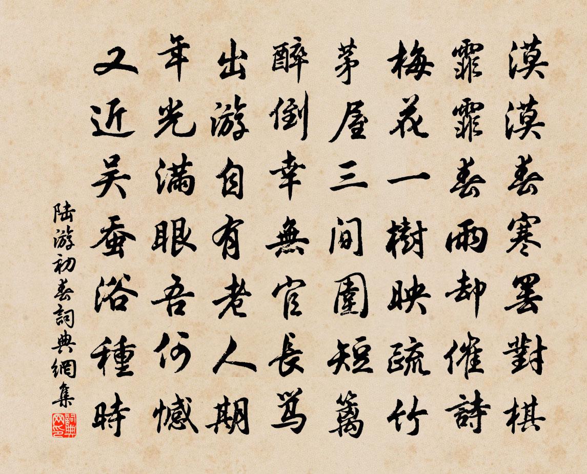 漠漠春寒罷對棋,霏霏春雨卻催詩。梅花一樹映疏竹,茅屋三間圍短籬。