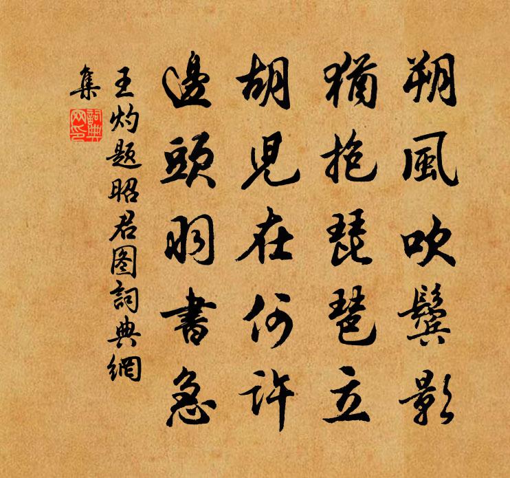 詩詞名句歷史字典書法欣賞書法字典國語詞典說文解字康熙字典古漢語字典標 題 作 者 詩 句 題昭君圖作者:王灼 朝代:宋代題昭君圖原文朔風吹鬢影,猶抱琵琶立。胡兒在何許,邊頭羽書急。詩詞問答問:題昭君圖的作者是誰?答:王灼問:題昭君圖寫於哪個朝代?答:宋代王灼題昭君圖書法欣賞題昭君圖書法作品詩詞推薦枕上聞風鈴陸游〔宋代〕毒暑今年倍故常,蚊聲四合欲舁床。老人不辦搖團扇,靜聽風鈴意已涼。重修聖濟院陳有聲〔宋代〕蒙泉距宜春,相去百餘里。有僧來問余,借問何姓氏。乃余昔所敬,見之蹙然喜。敘余語未既,省記到山始。屋廬過從弟制疑官舍竹齋張謂〔唐代〕羨爾方為吏,衡門獨晏如。野猿偷紙筆,山鳥污圖書。竹里藏公事,花間隱使車。不妨垂釣坐,時膾小江魚。中和節賜百官燕集因示所懷李适〔唐代〕至化恆在宥,保和茲息人。推誠撫諸夏,與物長為春。仲月風景暖,禁城花柳新。芳時協金奏,賜宴同群臣。絲竹與公序避暑石盎方晝欲寢聞林間鳥樂因得小詩李彌遜〔宋代〕一林啼鳥不知名,應怪山翁此地行。化蝶與周俱是夢,游魚知我久忘情。胸中丘壑真餘事,世上功名畏後生。但得品令辛棄疾〔宋代〕迢迢征路。又小舸、金陵去。西風黃葉,淡煙衰草,平沙將暮。回首高城,一步遠如一步。江邊朱戶。忍追憶、分聞蟬有感三首宋祁〔宋代〕勞君驚暮節,助我思流年。嘒若橫吹管,繁如未破弦。城殘嘶外月,林暝噪餘煙。塊坐秋風裡,潘郎鬢颯然。偈頌一百六十首釋宗杲〔宋代〕驅耕夫之牛,奪飢人之食。趯翻大海水,拳倒須彌廬。生擒虎兕,活捉弄獰龍,猶未是衲僧本分事。張丞見和次韻答之陳造〔宋代〕故人十年別,牆宇今密邇。譚勝復詩工,排日有歡喜。所嗟連城璧,過詫窶人子。何況政術疎,一一賴提耳。山亭錢厚〔宋代〕又踏君山路,來驅陌上塵。江仍舊時面,我是去年人。愛聽松聲古,休催柳色新。片雲銜落日,梅與月爭春。贈淳于公歸養王旦〔宋代〕年少復家貧,懸車去養親。銅扉沾美命,彩服稱閒身。純孝敦時俗,高風似古人。禁林榮華者,羞見二毛新。送馮彭寺丞長興知縣宋祁〔宋代〕天外仙鳧舄影翻,河乾畫鷁棹聲喧。奇才欲向菰蘆國,麗賦空留霰雪園。短柳搖搖迎去袂,初花的的伴離罇。汀蘋老學庵北窗雜書陸游〔宋代〕松棚接屋得陰多,石徑生苔奈滑何!盡道疏籬宜細雨,晴時最好曬漁蓑。望江南(南嶽銓德觀作)張孝祥〔宋代〕朝元去,深殿扣瑤鍾。天近月明黃道冷,參回斗轉碧宵空。身在九光中。風露下,環佩響丁東。玉案燒香縈翠鳳,送春酒邊陳著〔宋代〕今朝天氣新,聚首見情真。園木相看古,池魚亦詠春。山林如此酒,宇宙幾何人。堪笑塵埃世,興懷石季倫。寄君貺王學士宋祁〔宋代〕雞檄防邊未得休,久停歡酌為前籌。良辰並賞何憂晚,他日三公尚黑頭。小雪日戲題絕句張登〔唐代〕甲子徒推小雪天,刺梧猶綠槿花然。融和長養無時歇,卻是炎洲雨露偏。寄題喻叔奇國傅郎中園亭二十六詠亦好園楊萬里〔宋代〕金谷惟堪貯俗塵,輞川今復得詩人。先生道是貧到骨,猶有山園斗大春。頌古三十九首釋道樞〔宋代〕百千諸佛問來由,崔顥曾題黃鶴樓。雪後竹籬梅亂放,一枝臨水最風流。白微時募縣小吏入令臥內嘗驅牛經堂下令妻怒…以詩謝雲李白〔唐代〕素麵倚欄鉤,嬌聲出外頭。若非是織女,何得問牽牛。名句推薦不聞不若聞之,聞之不若見之,見之不若知之,知之不若行之。學至於行之而止矣。荀子《荀子·儒效》 春宵苦短日高起,從此君王不早朝。白居易《長恨歌》 去年燕子天涯,今年燕子誰家?張炎《清平樂·采芳人杳》 痛飲狂歌空度日,飛揚跋扈為誰雄。杜甫《贈李白》 馬先馴而後求良,人先信而後求能。劉安及其門客《淮南子·說林訓》 春日載陽,有鳴倉庚。佚名《七月》 夏條綠已密,朱萼綴明鮮。韋應物《夏花明》 嫁得瞿塘賈,朝朝誤妾期。李益《江南曲》 若教眼底無離恨,不信人間有白頭。辛棄疾《鷓鴣天·晚日寒鴉一片愁》 澹泊之守,須從穠艷場中試來;鎮定之操,還向紛紜境上勘過。陳繼儒《小窗幽記·集醒篇》