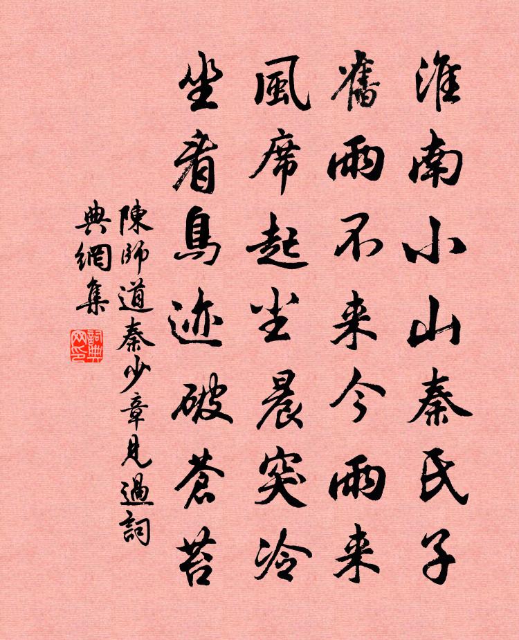 淮南小山秦氏子,舊雨不來今雨來。風席起塵晨突冷,坐看鳥跡破蒼苔。