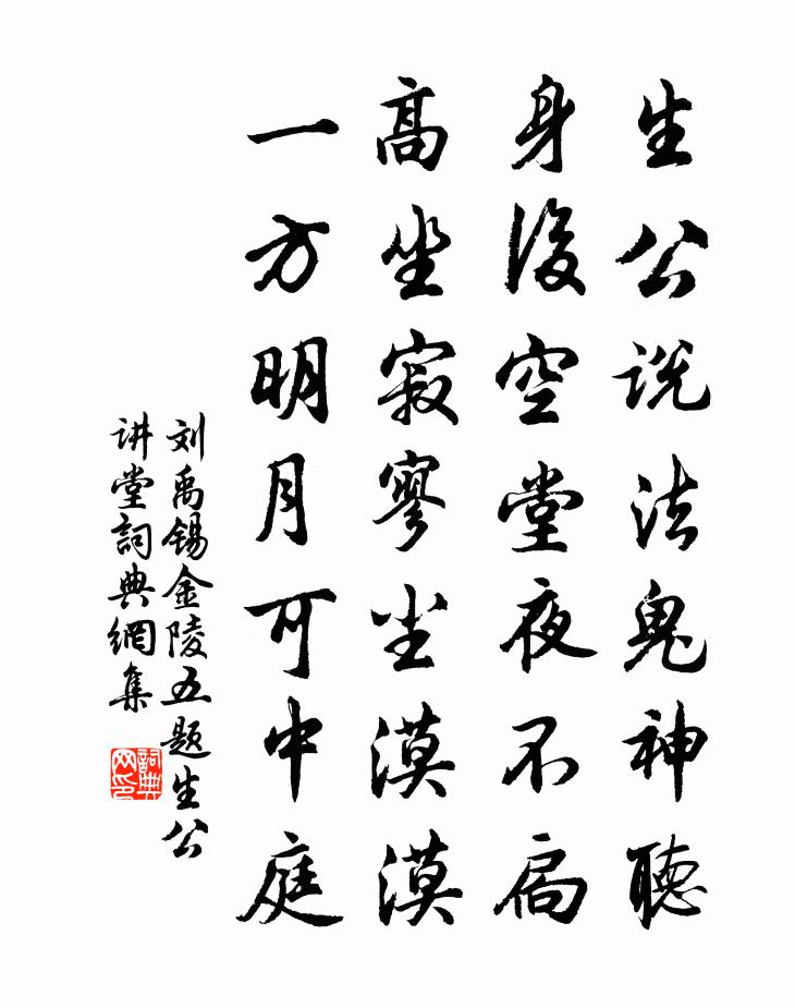 生公說法鬼神聽,身後空堂夜不扃。高坐寂寥塵漠漠,一方明月可中庭。