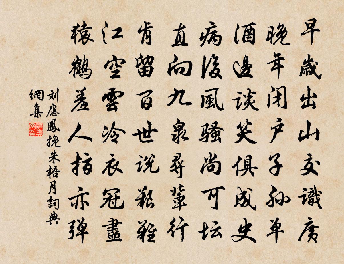 詩詞名句歷史字典書法欣賞書法字典國語詞典說文解字康熙字典古漢語字典標 題 作 者 詩 句 挽朱梧月作者:劉應鳳 朝代:宋代挽朱梧月原文早歲出山交識廣,晚年閉戶子孫單。酒邊談笑俱成史,病後風騷尚可壇。直向九泉尋輩行,肯留百世說艱難。江空雲冷衣冠盡,猿鶴羞人指亦彈。詩詞問答問:挽朱梧月的作者是誰?答:劉應鳳問:挽朱梧月寫於哪個朝代?答:宋代劉應鳳挽朱梧月書法欣賞挽朱梧月書法作品詩詞推薦杏花元稹〔唐代〕常年出入右銀台,每怪春光例早回。慚愧杏園行在景,同州園裡也先開。秋朝木芙蓉李嘉祐〔唐代〕水面芙蓉秋已衰,繁條到是著花時。平明露滴垂紅臉,似有朝愁暮落悲。贈劉舍人古意徐彥伯〔唐代〕女床閟靈鳥,文章世所希。巢君碧梧樹,舞君青瑣闈。或言鳳池樂,撫翼更西飛。鳳池環禁林,仙閣靄沉沉。璇題題舒女廟許渾〔唐代〕山樂來迎去不言,廟前高柳水禽喧。綺羅無色雨侵帳,珠翠有聲風繞幡。妝鏡尚疑山月滿,寢屏猶認野花繁。孤舟題崇山陳與義〔宋代〕短蓬如鳧鷖,載我萬斛愁。試登山上亭,卻望沙際舟。世故莽相急,長江去悠悠。西南浸山影,晦明分中流。盪搖贈程惠子許月卿〔宋代〕我朝詩道愧唐人,魏晉風流更勿論。莊子於今逢惠子,孔門自昔契程門。君宜鶯出雲霄路,我亦猿吟煙水村。趁取壽康堂為吳氏題陳杰〔宋代〕人莫不欲壽,文子之祈省非矯。人莫不欲康,文公之步者非狂。震風不貸蝸牛廬,堂中老人方晏知,笑我閉門生白上趙主簿霽宇張爚〔宋代〕辭棘鸞飛遠,重來棹雪舟。政聲清似水,官況冷於秋。譜系王侯貴,文章班馬流。賑民問錢穀,名已在金甌。寄贈致仕沈彬郎中李中〔唐代〕鶴氅換朝服,逍遙雲水鄉。有時乘一葉,載酒入三湘。塵夢年來息,詩魔老亦狂。蓴羹與鱸膾,秋興最宜長。頌古五十七首釋道昌〔宋代〕仰面穿針不見天,低頭拾薺不見地。天地針芥無處安,堂堂面目眼中翳。君不見諦當未徹在,齪人真大彩。蓮花亭避暑黃庚〔宋代〕日火燒空海欲乾,蓮宮深處書生寒。佛家一片清涼景,借與詩人盡日看。文宣王及其弟子贊宋高宗〔宋代〕養才以道,聖人兼濟。始謂不仁,問鮑良喜。寓志農圃,似睽仁義。學稼之辭,豈姑舍是。蘭若寓居白居易〔唐代〕名宦老慵求,退身安草野。家園病懶歸,寄居在蘭若。薜衣換簪組,藜杖代車馬。行止輒自由,甚覺身瀟灑。晨游醉落魄(龍涎香)楊無咎〔宋代〕雙心小萼。瑞爐慢炷輕煙初著清香已透紅綃幄。底事多情,玉筍更輕掠。鬢雲側畔□眉角。妝成曾印鉛華薄。幾回題壁二首福州僧〔宋代〕不嫌夫婿醜,亦勿厭深村。但得一回嫁,全勝不出門。祈雪霧豬泉出城馬上作贈舒堯文蘇軾〔宋代〕三年走吳越,踏遍千重山。朝隨白雲去,暮與棲鴉還。翩如得木狖,飛步誰能攀。一為符竹累,坐老敲榜間。此行浣溪沙(詠梅)毛滂〔宋代〕月樣嬋娟雪樣清。索強先占百花春。於中燭底好精神。多恨肌膚元自瘦,半殘妝粉不忺勻。十分全似那人人。渡湘江宋祁〔宋代〕春過湘江渡,真觀八景圖。雲藏嶽麓寺,江入洞庭湖。晴日花爭發,豐年酒易沽。長水十萬戶,游女似京都。過金陵四首蘇泂〔宋代〕老樹前頭柿葉紅,又騎瘦馬立西風。江山未必儂能認,卻被江山認得儂。新竹俞桂〔宋代〕傍牆穿過鄰家竹,愛護新篁數十竿。剪伐莫令童僕輩,老夫日日要來看。名句推薦泰山不要欺毫末,顏子無心羨老彭。白居易《放言五首·其五》 同來望月人何處?風景依稀似去年。趙嘏《江樓舊感 / 江樓感舊》 誰念遷客歸來,老大傷名節。李綱《六么令·次韻和賀方回金陵懷古鄱陽席上作》 午夢扁舟花底,香滿西湖煙水。楊萬里《昭君怨·詠荷上雨》 天地相合,以降甘露,民莫之令而自均。老子《老子·道經·第三十二章》 不知天上宮闕,今夕是何年。蘇軾《水調歌頭·丙辰中秋》 送君如昨日,檐前露已團。江淹《古離別》 不厚其棟,不能任重。重莫如國,棟莫如德。左丘明《國語·魯語·子叔聲伯辭邑》 冷紅葉葉下塘秋。長與行雲共一舟。姜夔《憶王孫·番陽彭氏小樓作》 雖有戈矛之刺,不如恭儉之利也。荀子《荀子·榮辱》
