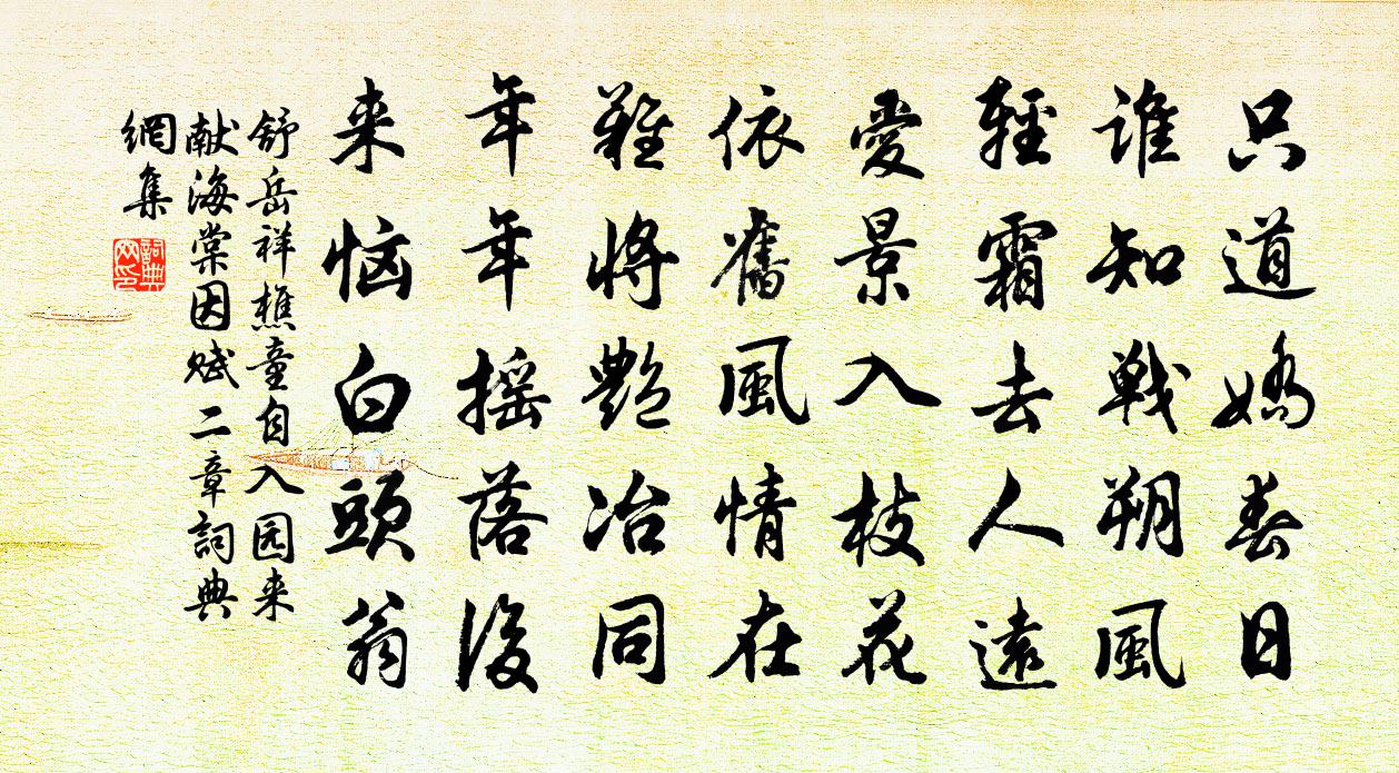 - 可能無意傳雙蝶,盡付芳心與蜜房。宋祁《落花》
