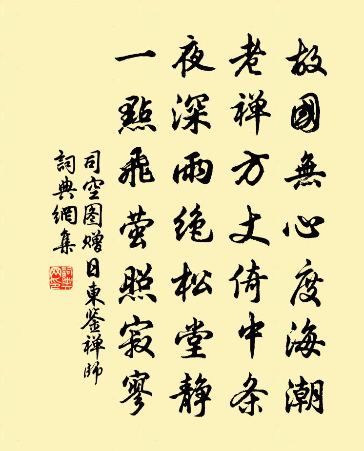 故國無心度海潮,老禪方丈倚中條。夜深雨絕松堂靜,一點飛螢照寂寥。