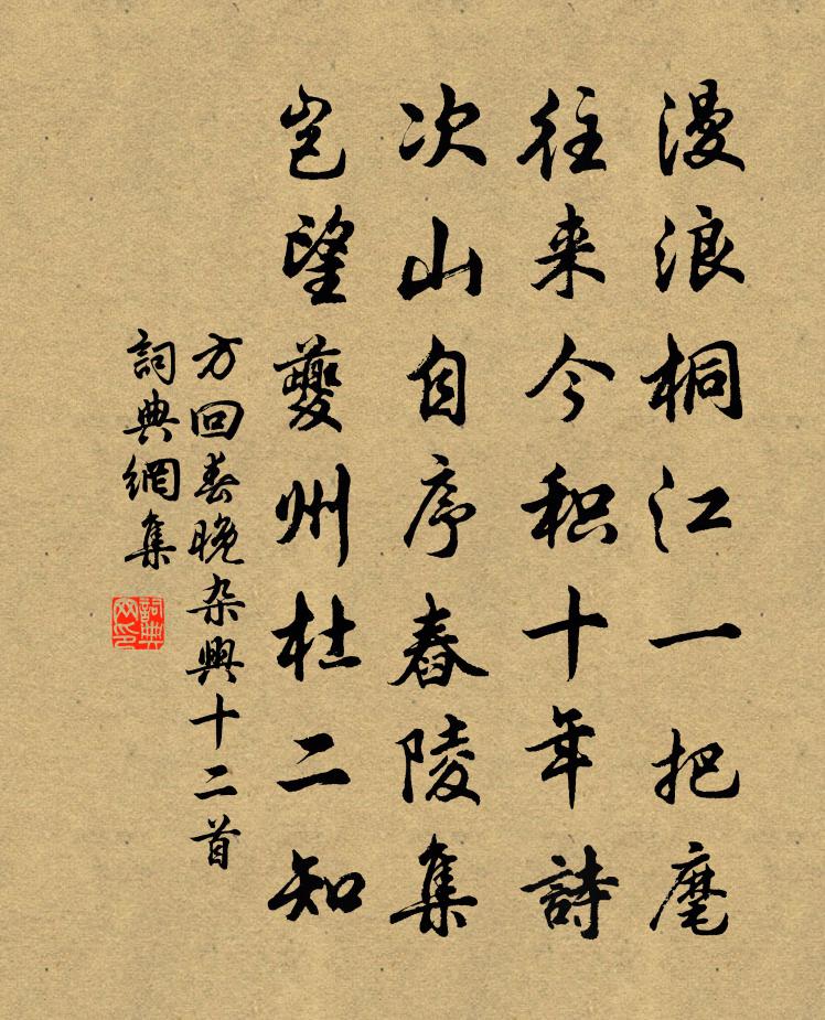 詩詞名句歷史字典書法欣賞書法字典國語詞典說文解字康熙字典古漢語字典標 題 作 者 詩 句 春晚雜興十二首作者:方回 朝代:宋代春晚雜興十二首原文漫浪桐江一把麾,往來今積十年詩。次山自序舂陵集,豈望夔州杜二知。詩詞問答問:春晚雜興十二首的作者是誰?答:方回問:春晚雜興十二首寫於哪個朝代?答:宋代方回春晚雜興十二首書法欣賞春晚雜興十二首書法作品詩詞推薦次韻蔡仲平察院中秋葛立方〔宋代〕素魄經秋分外明,桂枝濃傍蕊淵清。人寰散影千山白,愁絕村村砧杵鳴。夏旱一首蘇籀〔宋代〕陽厄會百六,驕亢慘如燬。素秋垂二七,十旬赤千里。土田靈龜坼,水車渴烏柅。歷時書不雨,槁矣吁田穉。雖然癸未寄王甥劉宰〔宋代〕別時庭戶正秋清,劃見園林翠織成。吳下餘思頻刮目,渭陽子豈遂忘情。堤間飛蓋分垂柳,水面浮舟約半萍。乘興送崔詹事論之上都(崔嘗典吳興)皎然〔唐代〕金虎城池在,銅龍劍珮新。重看前浦柳,猶憶舊洲蘋。遠思秦雲暮,歸心臘月春。青園昔游處,惆悵別離人。夜歸陸游〔宋代〕今年寒到江鄉早,未及中秋見雁飛。八十老翁頑似鐵,三更風雨采菱歸。一葉舟侯善淵〔元代〕大道本無一物。遍納十方充塞。無外亦無心。不容針。要見闡開清目。認得本元虛谷。非淺亦非深。滿壺金。菩薩蠻·隔花才歇廉纖雨納蘭性德〔清代〕隔花才歇廉纖雨,一聲彈指混無語。梁燕自雙歸,長條脈脈垂。小屏山色遠,妝薄鉛華淺。獨自立瑤階,透寒金縷寄宋州田中丞賈島〔唐代〕古郡近南徐,關河萬里余。相思深夜後,未答去秋書。自別知音少,難忘識面初。舊山期已久,門掩數畦蔬。謹和老人初冬寓筆十絕洪咨夔〔宋代〕方窮蔡擇問唐舉,未遇鄴侯逢懶殘。觸石起雲能沛雨,不應長作旱雷看。送范景仁游洛中蘇軾〔宋代〕小人真暗事,閒退豈公難。道大吾何病,言深聽者寒。憂時雖早白,駐世有還丹。得酒相逢樂,無心所遇安。去年題碧瀾亭王炎〔宋代〕一色挼藍染碧流,翬飛恰對白苹洲。風清六月非朱夏,氣爽三時似素秋。自笑品題無翰墨,也知領略欠觥籌。鳧鷗杭州祝濤頭二首徐凝〔唐代〕不道沙堤盡,猶欺石棧頑。寄言飛白雪,休去打青山。倒打錢塘郭,長驅白浪花。吞吳休得也,輸卻五千家。戲效連珠疊韻體陳棣〔宋代〕溯流遲澀須流輕,石岸崎嶇沙岸平。高樹影藏低樹影,前灘聲掩後灘聲。飛禽飛去語禽語,歸客歸休行客行。望斷博士舉陳東秀才雪詩云已成堆積勢應費掃除功李若水〔宋代〕寒意連朝進,祥霙萬里通。潔身原的道,潤物又成功。余靄猶吞日,狂飆漫走空。田公鉤膝語,貧里幸年豐。花石詩十一章鄧肅〔宋代〕飽食官吏不深思,務求新巧日孳孳。不知均是圃中物,遷遠而近蓋其私。詠懷阮籍〔魏晉〕獨坐空堂上,誰可與歡者?出門臨永路,不見行車馬。登高望九州,悠悠分曠野。孤鳥西北飛,離獸東南下。日暮嘆息行王安石〔宋代〕官驅群囚入市門,妻子慟哭白日昏。市人相與說囚事,破事劫錢何處村。朝廷法令亦寬大,汝罪當死誰雲冤。路傍折梅楊公遠〔宋代〕折時須揀帶苔枝,兩蕊三花儘自奇。簪向銀瓶全俗了,古銅瓶浸恰相宜。踏莎行李之儀〔宋代〕紫燕銜泥,黃鶯喚友。可人春色暄晴晝。王孫一去杳無音,斷腸最是黃昏後。寶髻慵梳,玉釵斜溜。憑闌目斷空回示長蘆仁禪師張良臣〔宋代〕叢叢竹雀鬧人家,農事春來漸有涯。品字柴頭煨政暖,不知風雪到梅花。名句推薦可憐青冢已蕪沒,尚有哀弦留至今。王安石《明妃曲二首》 閉心塞意,不高瞻覽者,死人之徒也哉。王充《論衡·卷十三·別通篇》 萬物並育而不相害。道並行而不相悖。子思《中庸·第三十章》 沉舟側畔千帆過,病樹前頭萬木春。劉禹錫《酬樂天揚州初逢席上見贈》 不用憑欄苦回首,故鄉七十五長亭。杜牧《題齊安城樓》 非懷北歸興,何用勝羈愁韓愈《洞庭湖阻風贈張十一署·時自陽山徙掾江陵》 尊嚴而憚,可以為師荀子《荀子·致士》 投我以木瓜,報之以瓊琚。佚名《木瓜》 濤瀾洶湧,風雲開闔。蘇轍《黃州快哉亭記》 春風試手先梅蕊,頩姿冷艷明沙水。趙令畤《菩薩蠻·春風試手先梅蕊》