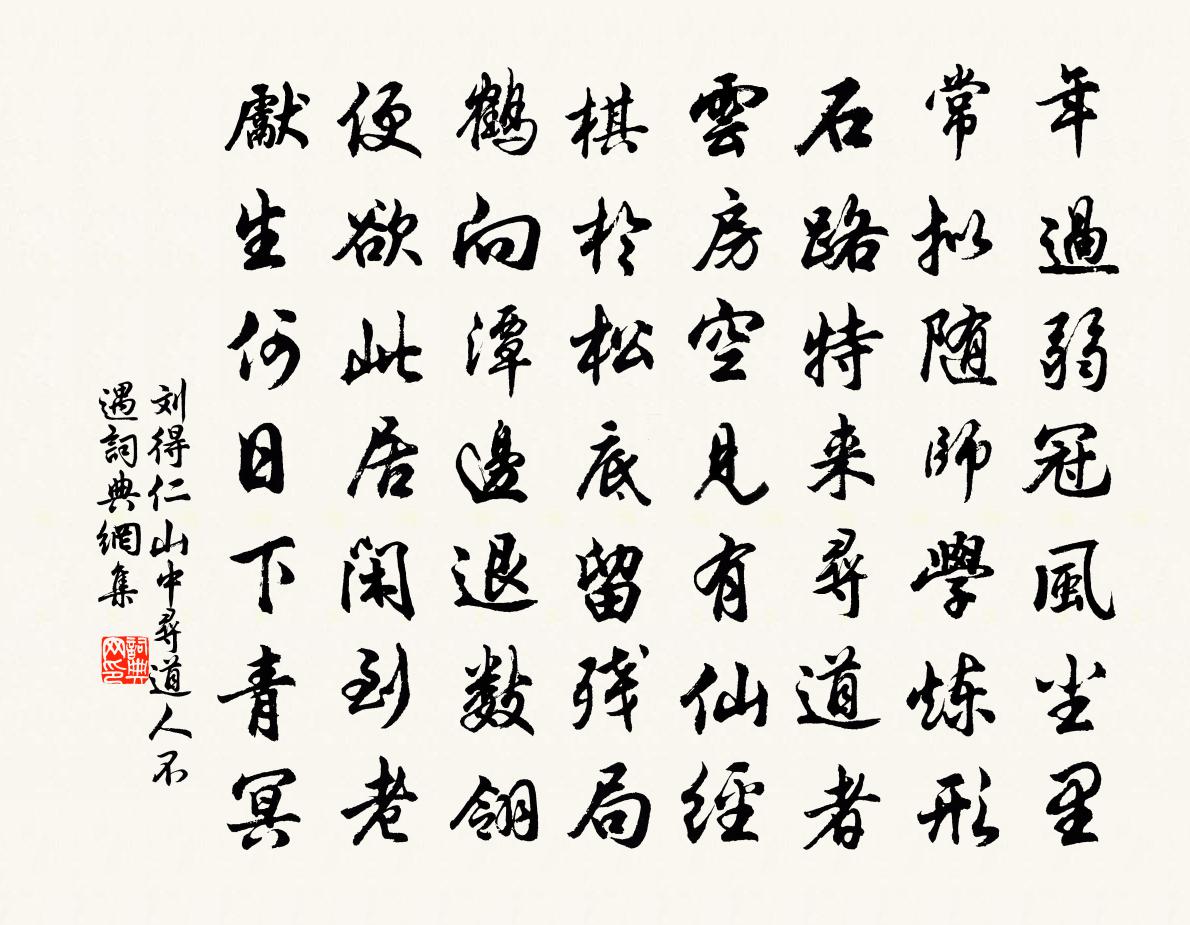 詩詞名句歷史字典書法欣賞書法字典國語詞典說文解字康熙字典古漢語字典標 題 作 者 詩 句 山中尋道人不遇作者:劉得仁 朝代:唐代山中尋道人不遇原文年過弱冠風塵里,常擬隨師學鍊形。石路特來尋道者,雲房空見有仙經。棋於松底留殘局,鶴向潭邊退數翎。便欲此居閒到老,先生何日下青冥。詩詞問答問:山中尋道人不遇的作者是誰?答:劉得仁問:山中尋道人不遇寫於哪個朝代?答:唐代問:山中尋道人不遇是什麼體裁?答:七律劉得仁山中尋道人不遇書法欣賞山中尋道人不遇書法作品注釋全唐詩:卷545-2詩詞推薦古別離陸游〔宋代〕孤城窮巷秋寂寂,美人停梭夜嘆息。空園露濕荊棘枝,荒蹊月照狐狸跡。憶君去時兒在腹,走如黃犢爺未識。紫姑阮郎歸 自洪還家梁寅〔元代〕歸來長嘯碧山河。結茅牽翠蘿。衰顏借問近如何。吳霜侵鬢多。衣短褐,臥行窩。眼前隨分過。一溪風月與煙波。新開墳路梅堯臣〔宋代〕古徑約城斜,鋤荒可過車。直穿深筱去,不比繞村賒。伐樹侵籬腳,裨塍掘澗沙。欲為蘭若處,松柏屬吾家。新秋陸游〔宋代〕秋氣入清笳,旗亭酒可賒。長歌穿小市,短帽插幽花。溪女留新蟹,園公餉晚瓜。誰知閒老子,解作醉生涯?西村勞農陸游〔宋代〕川雲散盡十分晴,繚出溪頭信意行。片片飛花隨步遠,離離芳草上牆生。村深日暖單衣爽,路轉沙平兩履輕。膰肉送了侍者游台山釋智愚〔宋代〕慕膻高舉興何窮,秋在黃蘆葉里風。已慢示明如蹈火,白雲深處見岩翁。和令公問劉賓客歸來稱意無之作白居易〔唐代〕水南秋一半,風景未蕭條。皂蓋回沙苑,籃輿上洛橋。閒嘗 * 酒,醉唱紫芝謠。稱意那勞問,請錢不早朝。偶題因懷張王二諫議四錫〔宋代〕理郡三年政未聞,孤城僻在浙江濆。金門路遠書難奇,水國吟余日又曛。半夜啼猿千里客,數峰殘雪一谿雲。詩中建隆郊祀八首竇儼〔宋代〕在國南方,時維就陽。以祈帝祉,式致民康。豆邊鼎俎,金石絲簧。禮行樂奏,皇作無疆。自舉師不克,與二三同志怏怏不平賦此張家玉〔明代〕落落南冠且笑歌,肯將壯志竟蹉跎。丈夫不作尋常死,縱死常山舌不磨。賦得華亭鶴孔德紹〔唐代〕華亭失侶鶴,乘軒寵遂終。三山凌苦霧,千里激悲風。心危白露下,聲斷彩弦中。何言斯物變,翻覆似遼東。與盧員外象過崔處士興宗林亭裴迪〔唐代〕喬柯門裡自成陰,散發窗中曾不簪。逍遙且喜從吾事,榮寵從來非我心。漁家傲(金陵賞心亭送王勝之龍圖。王守金陵,視事一日移南郡)蘇軾〔宋代〕千古龍蟠並虎踞。從公一吊興亡處。渺渺斜風吹細雨。芳草渡。江南父老留公住。公駕飛車凌彩霧。紅鸞驂乘青鸞黃仙菴字謎白玉蟾〔宋代〕青紅白黑欠中央,聞道西人已大方。二十一人田下電,阿誰訪之詹仲皇。次王仲衡尚書韻陳造〔宋代〕著腳功名馬絡頭,人生君所幾居州。惟公德操朱弦直,映世冰壺白月秋。久已短長冥尺寸,可須骯髒羨伊優。即今贈雲陽裴明府韋莊〔唐代〕南北三年一解攜,海為深谷岸為蹊。已聞陳勝心降漢,誰為田橫國號齊?暴客至今猶戰鶴,故人何處尚驅雞?歸來齋中雜題陸游〔宋代〕湖水日益長,柳色日益深。好鳥西山來,飛鳴過前林。年華挽不留,陳跡曠難尋。花開少共賞,酒熟惟孤斟。王謝送運使李工部自陝西移益部十韻強至〔宋代〕近取河湟議出師,公才正合濟今時。朝廷好問平戎策,郡縣無勞諭蜀辭。蕭相餽餉堪仰給,馬卿建節忽西之。未容登李叔器家見一亭趙蕃〔宋代〕別駕當年蚤見幾,郎君久亦棄文闈。閉門幽徑滋蒼蘚,杖策高亭接翠微。試問丘園返初服,定勝風雨蓋征衣。一官黃筌畫金盆鴿孟蜀屏風者也一首蘇籀〔宋代〕孟氏觀闕嘗鮮新,虯虯栱桷翔青冥。可憐當年百事足,鬼眼未遽窺高明。鋪首倉琅百樓聳,寶簾珠帶關銀屏。風台名句推薦此心終合雪,去已莫思量。虛中《送遷客》 別君去兮何時還?且放白鹿青崖間。須行即騎訪名山。李白《夢遊天姥吟留別 / 別東魯諸公》 浮雲一別後,流水十年間。韋應物《淮上喜會梁川故人 / 淮上喜會梁州故人》 心事孤山春夢在,到思量、猶斷詩魂吳文英《極相思·題陳藏一水月梅扇》 一郡官閒唯副使,一年冷節是清明。王禹偁《清明日獨酌》 樂民之樂者,民亦樂其樂;憂民之憂者,民亦憂其憂。孟子《孟子·梁惠王章句下·第四節》 士為知己者死,女為悅己者容。劉向《戰國策·趙一·晉畢陽之孫豫讓》 兒童相見不相識,笑問客從何處來。賀知章《回鄉偶書二首·其一》 目送征鴻飛杳杳,思隨流水去茫茫。孫光憲《浣溪沙·蓼岸風多橘柚香》 善學者盡其理,善行者究其難。荀子《荀子·大略》