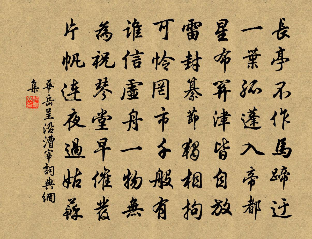 詩詞名句歷史字典書法欣賞書法字典國語詞典說文解字康熙字典古漢語字典標 題 作 者 詩 句 呈沿漕宰作者:華岳 朝代:宋代呈沿漕宰原文長亭不作馬蹄迂,一葉孤蓬入帝都。星布關津皆自放,雷封纂節獨相拘。可憐罔市千般有,誰信虛舟一物無。為祝琴堂早催發,片帆連夜過姑蘇。詩詞問答問:呈沿漕宰的作者是誰?答:華岳問:呈沿漕宰寫於哪個朝代?答:宋代華岳呈沿漕宰書法欣賞呈沿漕宰書法作品詩詞推薦春日離合詩 一庾信〔南北朝〕秦青初變曲。未有逐琴心。明年花樹下。月月來相尋。古詩陸游〔宋代〕能自得我心,無入不自得。靈府長優閒,蕉鹿烏能惑。濁醪吞數升,浩氣漫漫塞。醉來隱几酣,屢到華胥國。人生鹽梅李龍高〔宋代〕世味明知可口難,到頭終不換寒酸。直須袖卻和羹手,何必貪居鼎鼐間。長相思吳潛〔宋代〕上簾鉤,下簾鉤。夜半天街燈火收。有人曾倚樓。思悠悠,恨悠悠。只有西湖明月秋。知人如許悠。咀業間新茶二絕汪炎昶〔宋代〕虜全陸羽事烹,謾自誇張立戶庭。別向人間傅一法,吾詩便把當茶經。新市雜詠十首華岳〔宋代〕小橋相見便相親,猶帶西湖陌上塵。欲買一樽聊款曲,歸遲還怕小蠻嗔。如夢令(憶別)李石〔宋代〕憶被金尊勸倒。燈下紅香圍繞。別後有誰憐,一任春殘鶯老。煩惱。煩惱。腸斷綠楊芳草。片雪歌張耒〔宋代〕瑤池一片孤飛雪,風急身輕飛不歇。誰將翠袖遮得歸,十斛明珠換與誰。金龜貴客迎將去,玉作輜軿載塵霧。人間送馮貫道赴行在二首馮時行〔宋代〕儒雅風流總不如,蒸髦久合下旌車。黃堂報政瓜初及,宣室傾賢席已虛。楚樹迎船春去盡,吳蓮傍槳雨收余。留連題秋風亭葛紹體〔宋代〕稻鐮影盡雲垂野,衣杵聲高月滿空。春在萬家歌笑里,不知亭上有秋風。洛陽道江總〔隋代〕德陽穿洛水。伊闕邇河橋。仙舟李膺棹。小馬王戎鑣。杏堂歌吹合。槐路風塵饒。綠珠含淚舞。孫秀強相邀。授衣還田裡韋應物〔唐代〕公門懸甲令,浣濯遂其私。晨起懷愴恨,野田寒露時。氣收天地廣,風淒草木衰。山明始重疊,川淺更逶迤。煙火句釋曉瑩〔宋代〕舟橫漁唱晚。西江月張孝祥〔宋代〕風定灘聲未已,雨來篷底先知。岸邊楊柳最憐伊。憶得船兒曾系。湖霧平吞白塔,茅檐自有青旗。三杯村酒醉如泥高麗爐一枚寄虎丘結老為說偈言曹勛〔宋代〕茲爐之先,鯨波空際。有國曰韓,以陶以器。奉之函丈,寶煙輕細。此一瓣香,用嚴報地。言詩釋行海〔宋代〕句織天機字字難,冥搜長在寂寥間。每驚白雪陽春變,未放光風霽月閒。子美到今誰是史,仲尼亡後不曾刪。衰吾答張士然詩陸雲〔魏晉〕行邁越長川。飄颻冒風塵。通波激枉渚。悲風薄丘榛。修路無窮跡。井邑自相循。百城各異俗。千室非良鄰。歡舊重別薛華王勃〔唐代〕明月沉珠浦,風飄濯錦川。樓台臨絕岸,洲渚亘長天。旅泊成千里,柏遑共百年。窮途唯有淚,還望獨潸然。家書不至自嘲董嗣杲〔宋代〕客愁難遏鬢華添,晝寢醒來飽黑甜。春雨褪花粘蘚屐,晚風吹燕入蘆簾。自知闕下家書斷,不過城南卜肆占。蕭散登寺閣見月上率然成詠張嵲〔宋代〕殘陽猶半谷,片月已臨山。暮色千林起,鄉心萬里還。不堪常俯仰,寧有但間關。絕世非吾意,幽棲寄暫閒。名句推薦暗燈涼簟怨分離,妖姬,不勝悲。閻選《河傳·秋雨》 料峭春寒中酒,交加曉夢啼鶯。吳文英《風入松·聽風聽雨過清明》 利出者實及,怨往者害來。列子及其弟子《列子·說符》 斜倚畫闌嬌不語,暗移梅影過紅橋,裙帶北風飄。納蘭性德《望江南·詠弦月》 扶桑已在渺茫中,家在扶桑東更東。韋莊《送日本國僧敬龍歸》 衣不如新,人不如故。佚名《古艷歌》 萬里不惜死,一朝得成功。高適《塞下曲》 旌旆夾兩山,黃河當中流。李白《經亂離後天恩流夜郎憶舊遊書懷贈江夏韋太守良宰》 念天地之悠悠,獨愴然而涕下。陳子昂《登幽州台歌》 股肱體合,則四海和平;上下猜貳,則封疆幅裂。姚察、姚思廉《梁書·列傳·卷五十六》