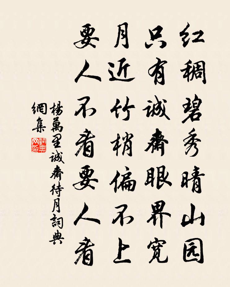 紅稠碧秀晴山園,只有誠齋眼界寬。月近竹梢偏不上,要人不看要人看。