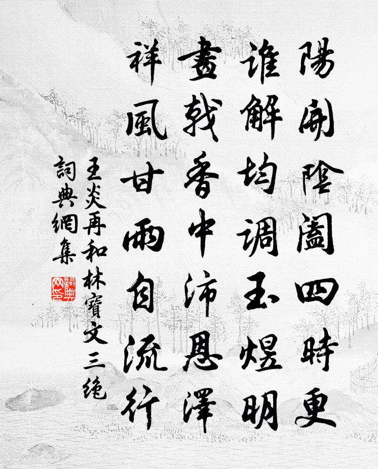 詩詞名句歷史字典書法欣賞書法字典國語詞典說文解字康熙字典古漢語字典標 題 作 者 詩 句 再和林寶文三絕作者:王炎 朝代:宋代再和林寶文三絕原文陽開陰闔四時更,誰解均調玉煜明。畫戟香中沛恩澤,祥風甘雨自流行。詩詞問答問:再和林寶文三絕的作者是誰?答:王炎問:再和林寶文三絕寫於哪個朝代?答:宋代王炎再和林寶文三絕書法欣賞再和林寶文三絕書法作品詩詞推薦去年過鉛山一見季承自後邈不相聞秋試度必入趙蕃〔宋代〕去歲飄然反自閩,訪君曾為駐征輪。尺書不至知殊縣,五字可追如隔晨。秦論舊聞追乃祖,漢庭那得棄平津。行當胡文昌和東坡子由彭城月詩並綠澹庵新州以所陳元晉〔宋代〕澹庵眼似坡仙高,眇視軒冕如秋毫。忠臣要作社稷計,那知平陸生風濤。當時蓋亦輕餘子,富貴轉頭真逝水。汗青山中即事釋斯植〔宋代〕千峰當此境,誰可共登臨。月過秋池靜,雲歸古木深。懶觀前去事,已悟未來心。更欲尋詩伴,相攜向石林。奉和襲美公齋四詠次韻鶴屏陸龜蒙〔唐代〕時人重花屏,獨即胎化狀。叢毛練分彩,疏節筇相望。曾無氃氋態,頗得連軒樣。勢擬搶高尋,身猶在函丈。如憂送子思兄參惠州軍王安石〔宋代〕沄沄曲江水,天借九秋色。樓台飛半空,秀氣盤韶石。載酒填里閭,吹花換朝夕。笙簫震河漢,錦繡爛冠幘。地靈韋氏館與周隱客、杜歸和泛舟元稹〔唐代〕天色低澹澹,池光漫油油。輕舟閒繳繞,不遠池上樓。時物欣外獎,真元隨內修。神恬津藏滿,氣委支節柔。眾處種藥苗二首其二種決蘇轍〔宋代〕閒居九年,祿不代耕。肉食不足,藜烝藿羹。多求異蔬,以佐晨烹。秋種甖粟,春種決明。頌十玄談玄機釋印肅〔宋代〕妙體本來無處所,超聲越色非今古。詮題不及議難思,莫怪道吾頻作舞。憶秦娥汪元量〔宋代〕天沉沉。香羅拭淚行窮陰。行窮陰。左霜右雪,冷氣難禁。幾回相憶成孤斟。塞邊鞞鼓愁人心。愁人心。北魚南雁衰荷張耒〔宋代〕衰荷有餘姿,秋水清更急。木落天宇寬,庭虛山氣入。寒魚漸受釣,野果晴可拾。幽居無餘營,但與山水習。濟時馬上施樞〔宋代〕只為溪山有宿盟,兩旬兩度此經行。馬嘶險逕霜蹄滑,鷗舞平沙雪羽輕。豪氣不從塵外減,新詩偏向道間成。梅花詐者吟邵雍〔宋代〕詐者固疑人,天下盡行詐。不信天下人,其間無真話。匡山新霽圖唐寅〔明代〕翁昔少年初畫山,蒼松蒼竹雜潺湲。直疑積雨得深潤,不假浮雲相往還。世外空青秋一色,岩前遠黛曉千鬟。天台山中胡仲弓〔宋代〕世情紛醉夢,抱獨入山林。有竹堪翳俗,無弦誰賞音。松蘿青嶂合,雞犬白雲深。未必幽居者,能賡梁甫吟。別周季隱東湖隱居項安世〔宋代〕君不見東湖先生徐師川,雅歌清廟彈朱弦。又不見於湖居士張安國,健語龍蛇雜矛戟。佳人往矣不易致,見君使我挽貢南漪三首王珪〔唐代〕燕居宣聖像,侑坐祖黎公。衿佩一朝集,弦歌九族同。夜窗書案雪,春服舞雩風。長使南湖學,千秋紀此翁。代書寄{左堇右阝}江知縣張太博邵雍〔宋代〕長憶當年歸弊廬,弟兄同受策名初。一生不記尋常事,千里猶通咫尺書。風月遙知四明好,江山況是發秋余。片帆至政王侍郎輓歌二首司馬光〔宋代〕習冠獻奇策,居然終賈才。賦成平樂館,歌奉柏梁杯。麗藻留昭世,英游隔夜台。土中埋美玉,誰見不興哀。寄洞元師鄭獬〔宋代〕一尊聊寄洞元師,既到山中春未遲。料得醉眠岩石上,晚風零落小桃枝。踏歌佚名〔宋代〕帶雪。向南枝,一朵江梅坼。許多時、甚處收香白。占千葩百卉、先春色。擬瑩潔。正廣寒宮殿人窺隔。銷魂處、名句推薦天意眷我中興,吾皇神武,踵曾孫周發。黃中輔《念奴嬌·炎精中否》 一別都門三改火,天涯踏盡紅塵。蘇軾《臨江仙·送錢穆父》 春去也,飛紅萬點愁如海。秦觀《千秋歲·水邊沙外》 不種閒花,池亭畔、幾竿修竹。陸容《滿江紅·詠竹》 敗莫大於不自知。呂不韋《呂氏春秋·論·不苟論》 平生多感激,忠義非外獎。李白《酬裴侍御對雨感時見贈》 武公不但歌淇澳,賢女猶能唁衛侯。姜塘《摘星樓九日登臨》 雖萬被戮,豈有悔哉!班固《漢書·傳·司馬遷傳》 失之東隅,收之桑榆。范曄《後漢書·列傳·馮岑賈列傳》 若待得君來向此,花前對酒不忍觸。蘇軾《賀新郎·夏景》