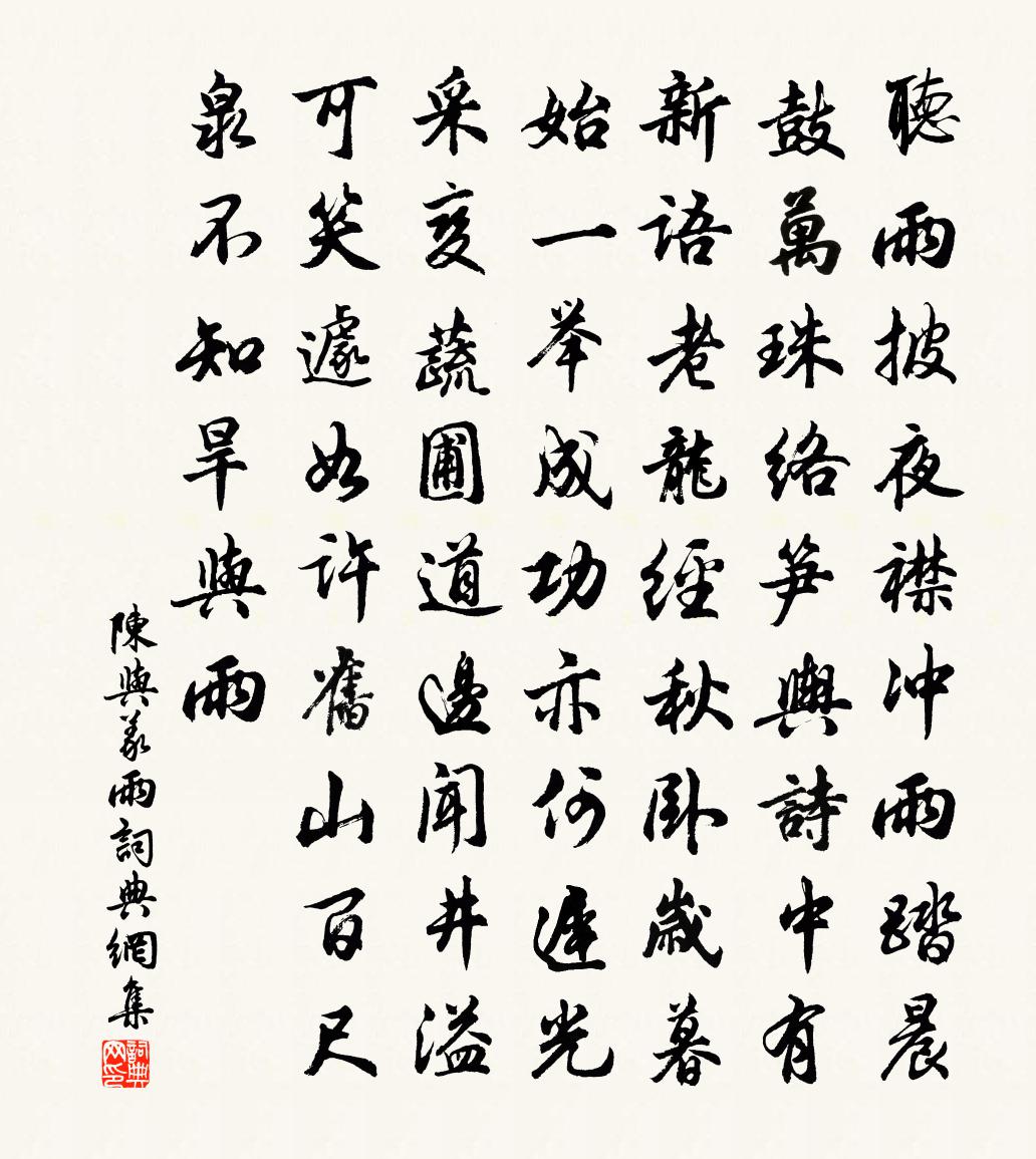聽雨披夜襟,沖雨踏晨鼓。萬珠絡筍輿,詩中有新語。