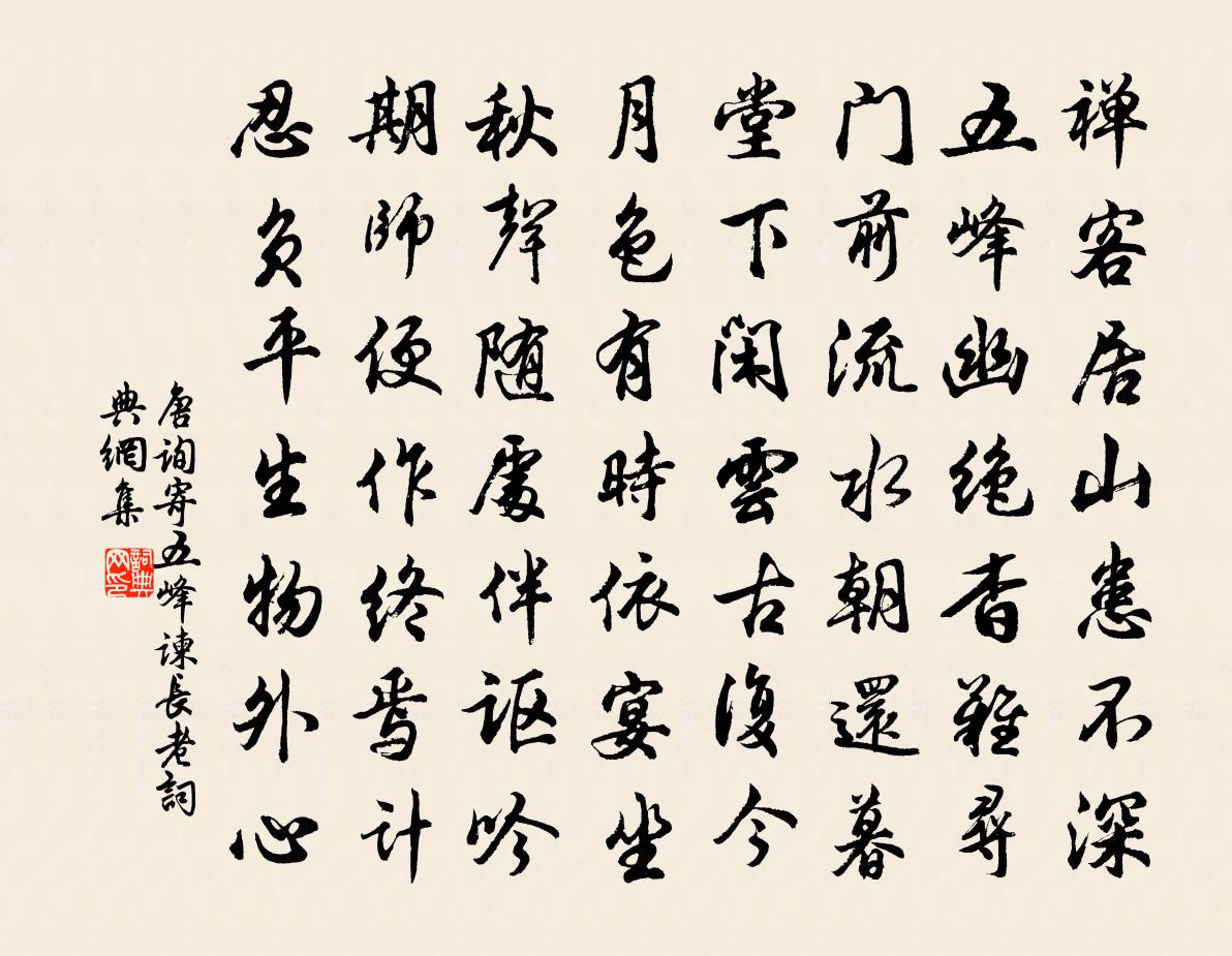 詩詞名句歷史字典書法欣賞書法字典國語詞典說文解字康熙字典古漢語字典標 題 作 者 詩 句 寄五峰諫長老作者:唐詢 朝代:宋代寄五峰諫長老原文禪客居山患不深,五峰幽絕杳難尋。門前流水朝還暮,堂下閒雲古復今。月色有時依宴坐,秋聲隨處伴謳吟。期師便作終焉計,忍負平生物外心。詩詞問答問:寄五峰諫長老的作者是誰?答:唐詢問:寄五峰諫長老寫於哪個朝代?答:宋代唐詢寄五峰諫長老書法欣賞寄五峰諫長老書法作品詩詞推薦暫往吳興出城張鎡〔宋代〕數聲初聽放船鉦,小雨沖涼晚出城。遙見人家層蔭合,便無風袖一塵生。園林豈乏清閒樂,鷗鷺須尋浩蕩盟。秋色和致政王子融侍郎喜昭文龐相公登庸宋庠〔宋代〕感會由來屬俊賢,誰知出處更相先。蒲且卷弋冥鴻日,荀令開池浴鳳年。佚老疏金催具酒,濟時商楫正橫川。高風放舟漫興胡宏〔宋代〕宿雨喜初霽,湖光照人明。狂風撼林木,萬里波濤清。放舟東山邊,蘭菊有奇英。實德自不掩,清香遠相迎。侵晨聚道齋洪皓〔宋代〕古人以道寓諸器,今人謂器與道異。不知器存道亦存,制器尚象皆其類。張公榜齋為聚首,古器用居三代寶。鼎彝頌古釋道顏〔宋代〕有句無句藤倚樹,元來白飯用米飯。高樓吹笛柳如煙,滿地春風落飛絮。藏春峽李侗〔宋代〕詠歸堂里靜怡神,更步芳亭識趣新。愛竹心虛初長筍,觀梅香散漸含仁。雲將膏雨過桐嶺,水泛桃花出劍津。生意魯望以躬掇野蔬兼示雅什,用以酬謝皮日休〔唐代〕杖擿春煙暖向陽,煩君為我致盈筐。深挑乍見牛唇液,細掐徐聞鼠耳香。紫甲采從泉脈畔,翠牙搜自石根傍。雕胡送金城公主適西蕃應制鄭愔〔唐代〕下嫁戎庭遠,和親漢禮優。笳聲出虜塞,簫曲背秦樓。貴主悲黃鶴,征人怨紫騮。皇情眷億兆,割念俯懷柔。使往天平軍馬約與陳子昂新鄉為期,及還而不相遇宋之問〔唐代〕入衛期之子,吁嗟不少留。情人去何處,淇水日悠悠。恆碣青雲斷,衡漳白露秋。知君心許國,不是愛封侯。贈葉洞春畫葡萄陳普〔宋代〕引蔓牽藤寸管頭,扶驪剔蚌出風流。三千龍女拋珠佩,一個儒生擁碧油。莫是前生封即墨,便堪作酒博青州。齊奴寄山中叟齊己〔唐代〕青泉碧樹夏風涼,紫蕨紅粳午爨香。應笑晨持一盂苦,腥膻市里叫家常。畫眉郎/好女兒賀鑄〔宋代〕雪絮雕章。梅粉華妝。小芒台、榧機羅湘素,鼓銅蟾硯滴,金雕琴寫,玉燕釵梁。五馬徘徊長路,漫非意、鳳求凰宮怨任翻〔唐代〕淚乾紅落臉,心盡白垂頭。自此方知怨,從來豈信愁。郊外即事七首袁燮〔宋代〕乍從塵土俯澄泓,瑩徹心神眼倍明。天下淵泉有如此,流清端的自源清。和兵部鄭侍郎省中四松詩十韻劉禹錫〔唐代〕右相歷中台,移松武庫栽。紫茸抽組綬,青實長玫瑰。便有乾霄勢,看成構廈材。數分天柱半,影逐日輪迴。舊賞次韻子由送陳侗知陝州蘇軾〔宋代〕誰能如鐵牛,橫身負黃河。滔天不能沒,尺箠未易訶。世俗自無常,徐公故逶迤。別來不可說,事與浮雲多。當時水龍吟·登建康賞心亭辛棄疾〔宋代〕楚天千里清秋,水隨天去秋無際。遙岑遠目,獻愁供恨,玉簪螺髻。落日樓頭,斷鴻聲里,江南遊子。把吳鉤看了普天樂·翠荷殘滕賓〔元代〕翠荷殘,蒼梧墜。千山應瘦,萬木皆稀,蝸角名,蠅頭利。輸與淵明陶陶醉,盡 * 圍繞東籬。良田數頃,黃牛二題童宰盤隱張煒〔宋代〕才了花陰入要塗,暫時歸去友樵漁。遠山數筆意不盡,流水一泓清有餘。我輩愛吟懷退步,誰人得計肯閒居。古梅兔罝佚名〔先秦〕肅肅兔罝,椓之丁丁。赳赳武夫,公侯干城。肅肅兔罝,施於中逵。赳赳武夫,公侯好仇。肅肅兔罝,施於中林。名句推薦古之君子,使人必報之。魏徵《隋書·志·卷二》 人而無儀,不死何為?佚名《相鼠》 天下從事者,不可以無法儀。無法儀而其事能成者,無有。墨子《墨子·04章 法儀》 念歸林葉換,愁坐露華生。張九齡《西江夜行》 迢迢牽牛星,皎皎河漢女。佚名《迢迢牽牛星》 落木蕭蕭,琉璃葉下瓊葩吐。王十朋《點絳唇·素香丁香》 相尋夢裡路,飛雨落花中。晏幾道《臨江仙·鬥草階前初見》 不蔽人之善,不言人之惡劉向《戰國策·楚一·江乙為魏使於楚》 妾身獨自眠,月圓人未圓。王元鼎《憑欄人·閨怨》 年華共,混同江水,流去幾時回納蘭性德《滿庭芳·堠雪翻鴉》