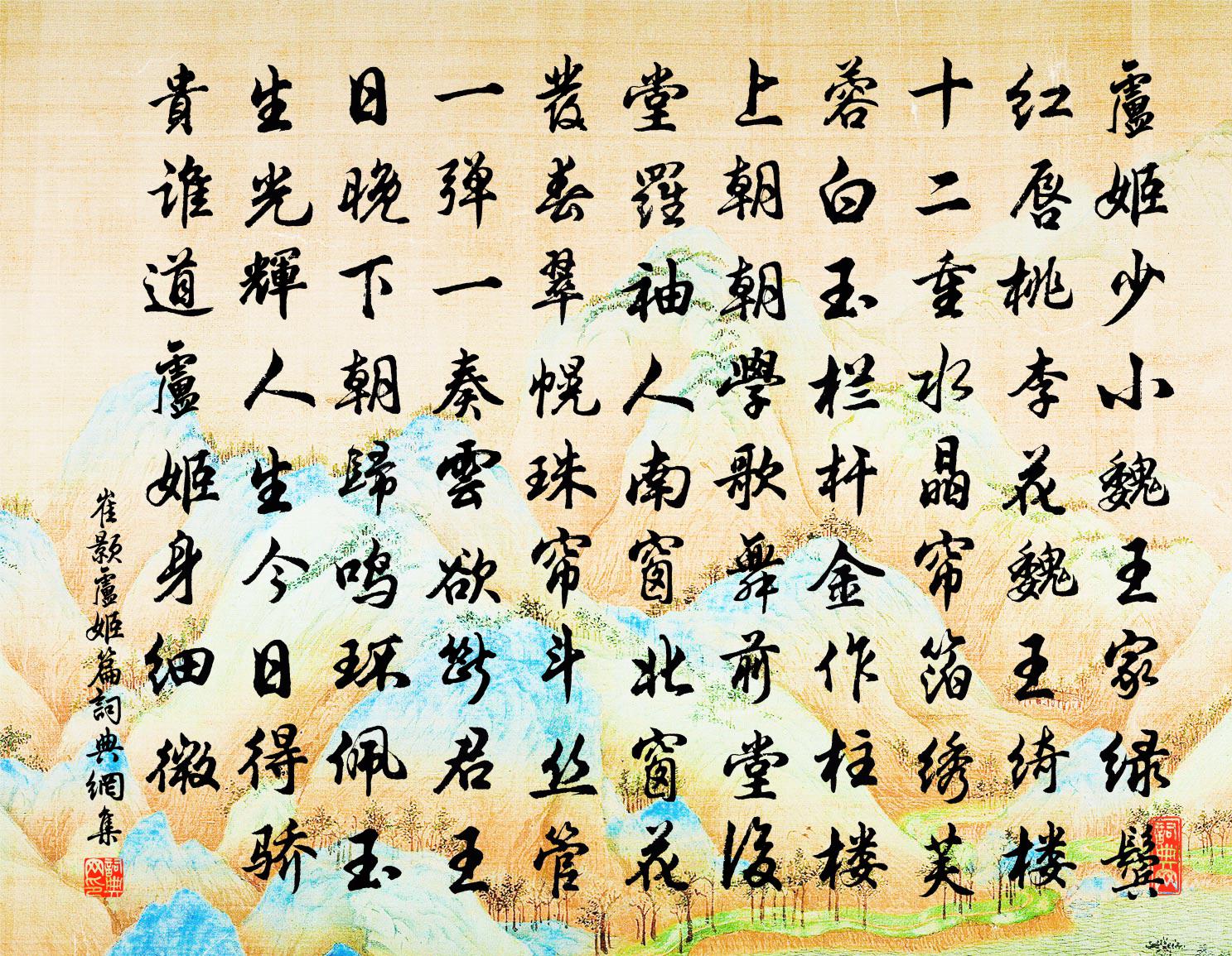 盧姬少小魏王家,綠鬢紅唇桃李花。魏王綺樓十二重,水晶簾箔繡芙蓉。