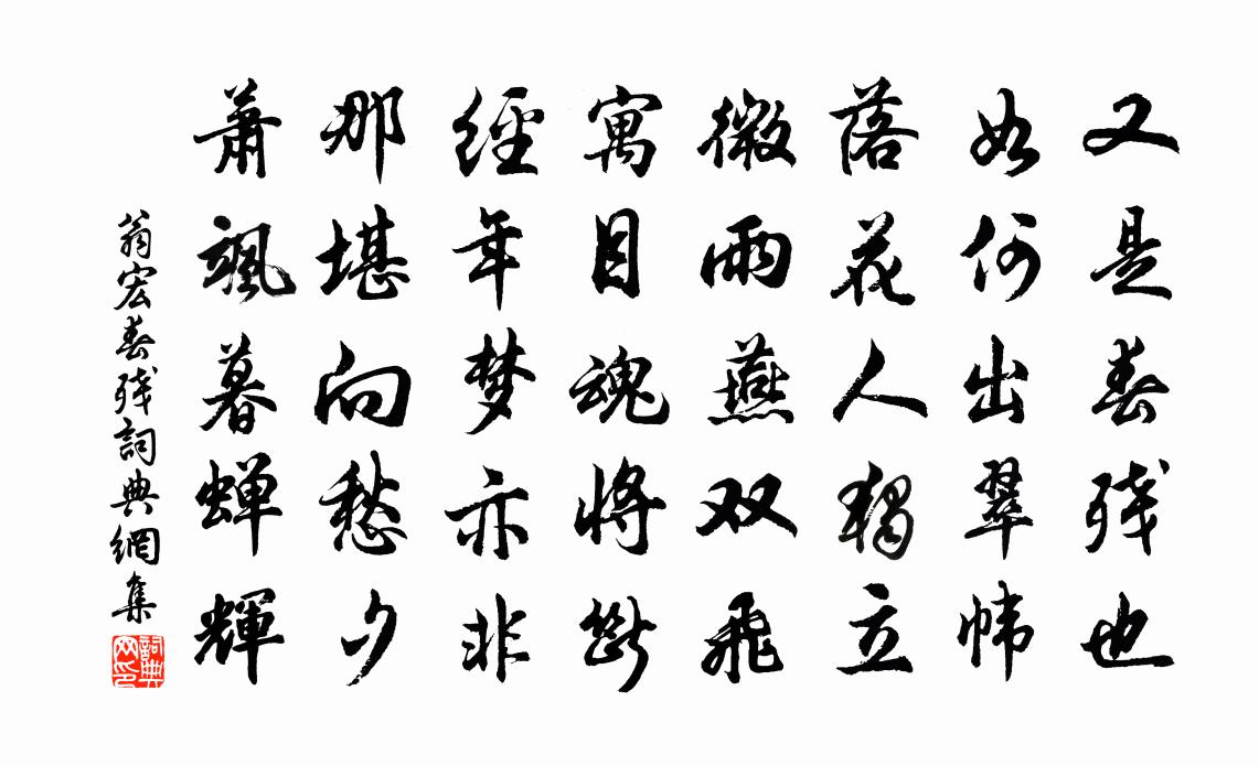 又是春殘也,如何出翠幃!落花人獨立,微雨燕雙飛。寓目魂將斷,經年夢亦非。