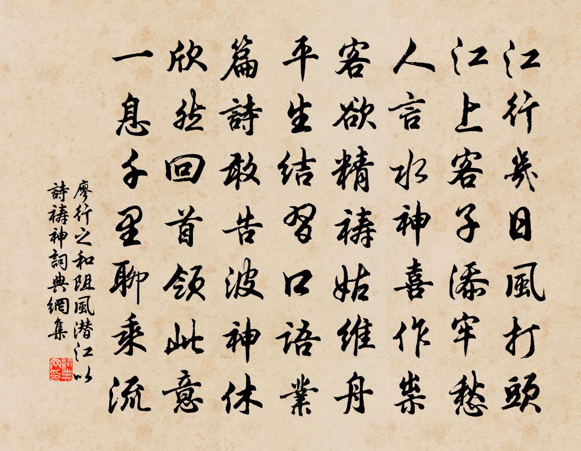 詩詞名句歷史字典書法欣賞書法字典國語詞典說文解字康熙字典古漢語字典標 題 作 者 詩 句 和阻風潛江以詩禱神作者:廖行之 朝代:宋代和阻風潛江以詩禱神原文江行幾日風打頭,江上客子添牢愁。人言水神喜作祟,客欲精禱姑維舟。平生結習口語業,篇詩敢告波神休。欣然回首領此意,一息千里聊乘流。詩詞問答問:和阻風潛江以詩禱神的作者是誰?答:廖行之問:和阻風潛江以詩禱神寫於哪個朝代?答:宋代廖行之和阻風潛江以詩禱神書法欣賞和阻風潛江以詩禱神書法作品詩詞推薦十六觀經頌佛菩薩像觀第八釋遵式〔宋代〕諸佛如來法界身,遍入眾生一切想。智者當觀此想心,是心即佛菩薩像。調笑/調笑令毛滂〔宋代〕城月。冷羅襪。郎睡不知鸞帳揭。香淒翠被燈明滅。花困釵橫時節。河橋楊柳催行色。愁黛有人描得。寄趙帥三首陳造〔宋代〕揚州燈火萬家春,誰著詩翁寂寞濱。舊臘新年無好況,何須更問紫姑神。哭李別駕顧況〔唐代〕故人行跡滅,秋草向南悲。不欲頻回步,孀妻正哭時。蟹唐彥謙〔唐代〕湖田十月清霜墮,晚稻初香蟹如虎。扳罾拖網取賽多,篾簍挑將水邊貨。縱橫連爪一尺長,秀凝鐵色含湖光。蟛蜞和黃倅祈求有應胡寅〔宋代〕海山和氣四時連,太守賓僚自十仙。明恕而行非苟爾,感通之效固昭然。萌心甘澤雲從地,舉意晴蜴日麗天。可但書所見聞示諸友魏了翁〔宋代〕一從輕棄五邊州,所恃藩籬僅武休。又謂武休無足恃,並捐洋漢守金牛。送從祖還黃州桃花鎮寓居徐瑞〔宋代〕禮服悠悠歲月深,歸來城郭豈堪尋。葬防不背先師訓,居穎能知前輩心。古騷桃花勞遠夢,征途柳色動新吟。秋負和十一月十二日與諸君登西園亭榭懷舊書事二梅堯臣〔宋代〕莎徑依然見莎葉,蓮塘無復有蓮花。更看白水滿城下,說著當時龍骨車。偈傾一百六十九首釋智朋〔宋代〕把定乾坤正此時,衲僧猶未副全提。普賢不顧彌天罪,甘自渾身陷鐵圍。送張著作孟侯宰上元梅堯臣〔宋代〕天衢車馬跡,急若機上梭。義雖平生篤,不越一再過。夫子累顧我,言歸泛長河。得邑美建業,風流猶可歌。依稀寄無為居士釋真淨〔宋代〕世俗事無盡,養高心自閒。蔬園通綠野,林塢帶青山。丹灶忘添火,雲庵懶著關。別應修省術,七十見朱顏。眉僧曉岑仆未之識也持缽求施既辭以貧則願丐馮時行〔宋代〕門前剝啄遺兒應,客是平生不識僧。檀施咄嗟貧未可,詞場馳逐老猶能。識凌風月收孤思,乞與雲山伴曲肱。我亦夏日雜感四首張耒〔宋代〕我前十日至,柳葉不蔽日。我後十日來,芳條如紺室。枝間有好鳥,鳴和若琴瑟。渠渠哺其雛,啄我園中實。梢梢北山證果寺李昴英〔宋代〕久聞北寺最清幽,因看花田遂一游。近國好山半煙雨,參天喬木幾春秋。香凝永晝添柄都,風送長松爽茗甌。此境句釋曉瑩〔宋代〕素抱與誰傾。視刀環歌劉禹錫〔唐代〕常恨言語淺,不如人意深。今朝兩相視,脈脈萬重心。觀音思惟像贊釋法薰〔宋代〕苦海深,悲願廣。作是思惟,云何方便。普使群生登彼岸。相和歌辭。祠漁山神女歌。送神王維〔唐代〕紛進舞兮堂前,目眷眷兮瓊筵。來不言兮意不傳,作暮雨兮愁空山。悲急管兮思繁弦,神之駕兮儼欲旋。倏雲收兮寄太白無能禪師顧非熊〔唐代〕太白山中寺,師居最上方。獵人偷佛火,櫟鼠戲禪床。定久衣塵積,行稀徑草長。有誰來問法,林杪過殘陽。名句推薦威加海內兮歸故鄉,安得猛士兮守四方劉邦《大風歌》 出必告,反必面。居有常,業無變。李毓秀《弟子規·入則孝》 言有招禍也,行有招辱也,君子慎其所立乎。荀子《荀子·勸學》 江山如畫,一時多少豪傑蘇軾《念奴嬌·赤壁懷古》 但箭雁沈邊,梁燕無主。劉辰翁《蘭陵王·丙子送春》 學者不患才之不贍,而患志之不立。徐幹《中論·上卷·治學》 長江春水綠堪染,蓮葉出水大如錢。張籍《春別曲》 蓼岸荻花中,隱映竹籬茅舍。張昪《離亭燕·一帶江山如畫》 君若清路塵,妾若濁水泥;曹植《明月上高樓》 遠樹帶行客,孤城當落暉。王維《送綦毋潛落第還鄉 / 送別》