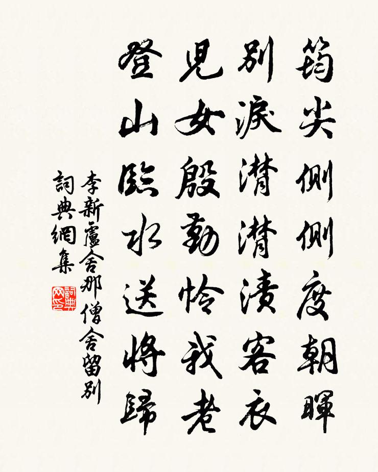 詩詞名句歷史字典書法欣賞書法字典國語詞典說文解字康熙字典古漢語字典標 題 作 者 詩 句 盧舍那僧舍留別作者:李新 朝代:宋代盧舍那僧舍留別原文筠尖側側度朝暉,別淚潸潸漬客衣。兒女殷勤憐我老,登山臨水送將歸。詩詞問答問:盧舍那僧舍留別的作者是誰?答:李新問:盧舍那僧舍留別寫於哪個朝代?答:宋代李新盧舍那僧舍留別書法欣賞盧舍那僧舍留別書法作品詩詞推薦喜與楊六侍御同宿白居易〔唐代〕岸幘花靜言明月花夜,匡花閒臥花落花朝。二三月里饒春睡,七八年來不早朝。濁水清塵難會合,高鵬低鷃各逍遙如夢令陳祖安〔宋代〕月直金波瀲灩。此去水仙不遠。霜重夜風清,骨冷□□□□。誰見。誰見。醉眼參橫斗轉。賀曾帥得祠二首釋善珍〔宋代〕千騎叢中舊擁旄,丹心猶在鬢蕭騷。漢庭重少馮唐老,晉士趨卑張翰高。靜看棋枰爭勝負,閒馳筆陣寄雄豪。搶榆送錢叔依使君之南安孫介〔宋代〕使君心事玉無瑕,遊戲功名發未華。要省文書繙貝葉,故從江嶺訪梅花。春風早趁人千里,勝日想思天一涯。喚取贈朱省郎鄭獬〔宋代〕蕭灑不羈性,本自出塵埃。棄去萬物累,健翅天地回。白髮朱省郎,嶻嶪稱高才。春風如故人,昨日天涯來。置酒嘲賀將仕二首華岳〔宋代〕花何太喜誰能賦,葉是良媒解寄詩。但覺人間傳盛事,不知天上集佳期。墨崖道中作陳襄〔宋代〕陰山沙漠外,六月苦行人。水迸金蓮曉,湯回鐵腳春。馬飢思漢草,仆病臥胡塵。夜夢京華阻,披衣望北辰。局中歸賀鑄〔宋代〕心火成灰不復然,故園笑別十三年。晚涼退食無餘事,坐與兒曹挽紙鳶。滿江紅高觀國〔宋代〕擊碎空明,滄浪晚、棹歌飛入。西山外、紫霞吹斷,赤塵無跡。飛上冰輪涼世界,喚回天籟清肌骨。看驪珠、影墮強甫西上劉克莊〔宋代〕平進差賢似躁求,乃翁豈不為兒謀。今寒畯士難京秩,古子男邦亦小侯。翹館詎宜頻造請。孤山雖好勿淹留。誰言題雪岩胡則潛詩卷首姚勉〔宋代〕君有雪岩余雪坡,坡中雪少岩雪多。試將二雪平章看,坡中雪比岩如何。有人問我坡間雪,一色平鋪寒玉潔。夜深弈棋二首呈任漸黃庭堅〔宋代〕其一偶無公事負朝暄,三百枯棋共一樽。坐隱不知岩穴樂,手談勝與俗人言。簿書堆積塵生案,車馬淹留客在門。轉調踏莎行(上巳道中作)陳亮〔宋代〕洛浦塵生,巫山夢斷。旗亭菸草里,春深淺。梨花落盡,荼又綻。天氣也似,尋常庭院。向晚情懷,十分惱亂。水讀書曾鞏〔宋代〕吾性雖嗜學,年少不自強。所至未及門,安能望其堂。荏苒歲雲幾,家事已獨當。經營食眾口,四方走遑遑。一身西江月佚名〔宋代〕隆暑正當三伏,明朝又是雙旬。崧高孕秀降生申。再捧瑤觴稱慶。督府贊猷英俊,難淹大展經綸。倚需召入秉洪鈞觀賈表之獵吳則禮〔宋代〕軒軒大鷹腦,落落飢鶻拳。忽張六翮去,勢拉淮南天。賈侯實老俊,文字初著鞭。平生坐高飛,孤吟餞流年。收身山居雜詩九十首曹勛〔宋代〕西山隱道室,山光鎖蔥蒨。松竹意可揖,節潤欲入饌。扳攜一二友,香火共昏旦。天台坐忘身,笑領吾所眷。劉彝秀才歸江南梅堯臣〔宋代〕鳳鳥不受笯,麒麟寧受靽。君思此二物,中夜忽興嘆。況值南風來,襲蘭歸楚岸。陳卿內邵氏輓詞王柏〔宋代〕群山峨峨兮屏下環,鍾為人英兮司賢關。風雅解頤兮簪佩珊珊,有女穎悟兮拱聽帷間。識性情之正兮婦德閒,雞鳴句錢惟演〔宋代〕思滿離亭酒,魂驚客舍烏。名句推薦三年不上門,當親也不親。吳承恩《西遊記·第四十回》 寫不成書,只寄得、相思一點。張炎《解連環·孤雁》 俄而未霰零,密雪下。謝惠連《雪賦》 前經洛陽陌,宛洛故人稀。王維《送魏郡李太守赴任》 慷慨十年長劍在,登樓一笑暮山橫。崔允《花馬池詠》 八百里分麾下炙,五十弦翻塞外聲。辛棄疾《破陣子·為陳同甫賦壯詞以寄之》 歡宴良宵好月,佳人修竹清風。吳文英《風入松·麓翁園堂宴客》 不是暗塵明月,那時元夜。蔣捷《女冠子·元夕》 水晶簾不下,雲母屏開,冷浸佳人淡脂粉。晁補之《洞仙歌·泗州中秋作》 曲則全,枉則直,窪則盈,敝則新,少則得,多則惑。老子《老子·道經·第二十二章》