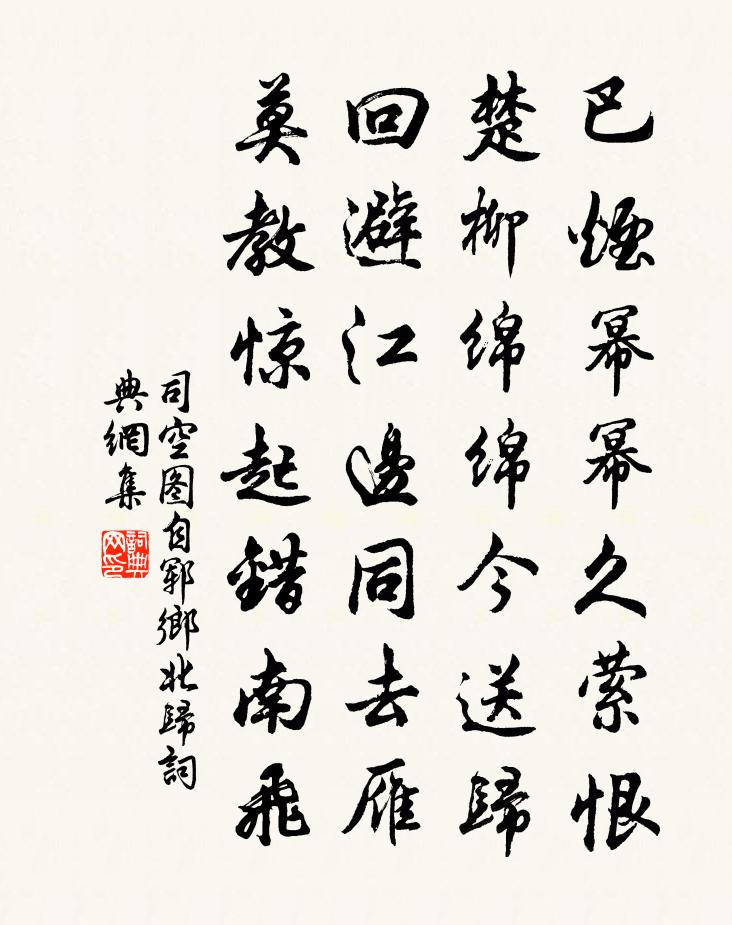 巴煙冪冪久縈恨,楚柳綿綿今送歸。迴避江邊同去雁,莫教驚起錯南飛。