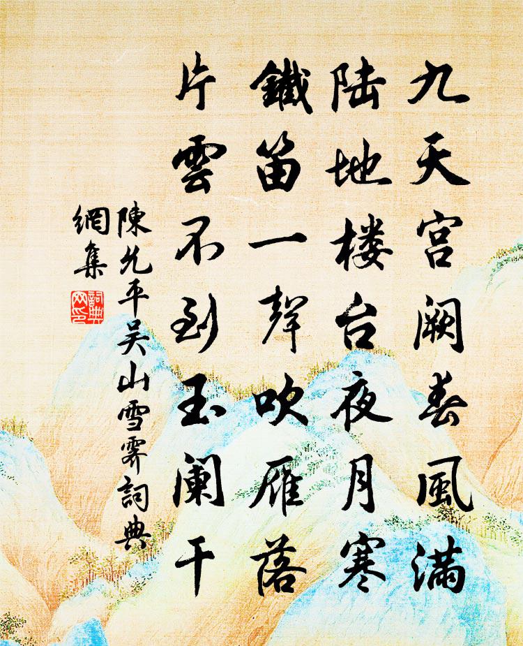 詩詞名句歷史字典書法欣賞書法字典國語詞典說文解字康熙字典古漢語字典標 題 作 者 詩 句 吳山雪霽作者:陳允平 朝代:宋代吳山雪霽原文九天宮闕春風滿,陸地樓台夜月寒。鐵笛一聲吹雁落,片雲不到玉闌乾。詩詞問答問:吳山雪霽的作者是誰?答:陳允平問:吳山雪霽寫於哪個朝代?答:宋代陳允平吳山雪霽書法欣賞吳山雪霽書法作品詩詞推薦秋晚霽後野望憶夏侯審盧綸〔唐代〕天晴禾黍平,暢目亦傷情。野店雲日麗,孤莊砧杵鳴。川原唯寂寞,岐路自縱橫。前後無儔侶,此懷誰與呈。驀山溪(老妻生日作,十一月初七日)向子諲〔宋代〕一陽才動,萬物生春意。試與問宮梅,到東閣、花枝第幾。疏疏淡淡,冷艷雪中明,無俗調,有真香,正與人相倚小山之南作曲欄石磴繚繞如棧道戲作二篇陸游〔宋代〕吏退庭空剩得閒,一窗如在翠微間。半崖縈棧游秦路,疊嶂生雲入剡山。真有岩居臨絕壑,但無漁艇系寒灣。躋攀賦秋蓬釋行海〔宋代〕蘆莖密織水煙籠,恰與湘漁屋檨同。昨夜苹香熏夢醒,又添荷葉蓋西風。戲為六絕句·其一杜甫〔唐代〕庾信文章老更成,凌雲健筆意縱橫。今人嗤點流傳賦,不覺前賢畏後生。題鏡湖野老所居 [一作秦系詩]馬戴〔唐代〕湖裡尋君去,樵風往返吹。樹喧巢鳥出,路細葑田移。漚薴成漁網,枯根是酒卮。老年唯自適,生事任群兒。夜宿天池,月下聞雷,次早知山下大雨王守仁〔明代〕昨夜月明峰頂宿,隱隱雷聲翻山麓。曉來卻問冊下人,風雨三更卷茅屋。解秋十首元稹〔唐代〕清晨頮寒水,動搖襟袖輕。翳翳林上葉,不知秋暗生。回悲鏡中發,華白三四莖。豈無滿頭黑,念此衰已萌。微霜早秋曲江感懷白居易〔唐代〕離離暑雲散,裊裊涼風起。池上秋又來,荷花半成子。朱顏易銷歇,白日無窮已。人壽不如山,年光急於水。青蕪長田舖二首趙蕃〔宋代〕野驛人稀到,空庭草自生。霜清殊未覺,雨細更含晴。採桑子佚名〔宋代〕東君有意觀群卉,故放爭先。帶露含煙。對月偏宜映水邊。瓊苞素蕊胭脂淡,雪後風前。堪賞堪憐。曾與歌樓佐管鷓鴣天(紹興戊辰歲閏中秋)向子諲〔宋代〕明月光中與客期。一年秋半兩圓時。姮娥得意為長計,織女歡盟可恨遲。瞻玉兔,倒瓊彝。追懷往事記新詞。浩歌寒飲御筵口號二首司馬光〔宋代〕雨意沉沉潑火餘,變龍盛集退朝初。酒肴絡繹來丹禁,冠劍參差下玉除。紫鳳歸飛雲爛熳,黃鸝新囀柳扶疏。麥禾兩京陸游〔宋代〕兩京煙柳厭胡塵,又見淳熙十四春。薄命邅回猶許國,孤忠懇款欲忘身。蘇君落魄黃金盡,褚令悲傷白髮新。曾向瑞麥陳宓〔宋代〕維此瑞麥,十有三莖。伊誰所樹,中夏以生。豐年之慶,聖治之臻。我作此贊,播之頌聲。雜曲歌辭。漢宮少年行李益〔唐代〕君不見上宮警夜營八屯,冬冬街鼓朝朱軒。玉階霜仗擁未合,少年排入銅龍門。暗聞弦管九天上,宮漏沈沈清吹繁雪中觀梅花李復〔宋代〕破萼江梅爭初吐,漢宮妙香聞百步。耐寒蛺蝶何自來,繞花翩翩那忍去。幽芳不載蔚宗譜,絕俗韻高吾最許。直疑蘭溪道中宋慶之〔宋代〕朝買蘭溪船,暮泊香頭市。如何十月天,復此連夜雨。朔風寒似鐵,曉色暗如土。道行不見人,路哭疑是鬼。棲棲岳上作修睦〔唐代〕始好步青苔,蟬聲且莫催。辛勤來到此,容易便言回。遠水月未上,四方雲正開。更堪逢道侶,特地話天台。戲答山人趙潁憶山居李復〔宋代〕綠髮年來改,相看憶去頻。青山不厭客,黃屨自迷塵。耳冷泉聲淡,松殘藥灶貧。白雲他日見,應問世間春。名句推薦人生到處知何似,應似飛鴻踏雪泥。蘇軾《和子由澠池懷舊》 人之敵,非奸亦奸;人之友,其奸亦忠。來俊臣《羅織經·察奸卷第八》 曉看紅濕處,花重錦官城。杜甫《春夜喜雨》 橋北橋南千百樹,綠煙金穗映清流。朱栴《官橋柳色》 寒日蕭蕭上瑣窗,梧桐應恨夜來霜。李清照《鷓鴣天·寒日蕭蕭上瑣窗》 天公見玉女,大笑億千場。李白《短歌行》 肯救人坑坎中,便是活菩薩王永彬《圍爐夜話·第二八則》 一騎紅塵妃子笑,無人知是荔枝來。杜牧《過華清宮絕句三首》 終然獨不見,流淚空自知。李白《獨不見》 得人之道,在於知人;知人之法,在於責實。脫脫《宋史·列傳·卷九十七》