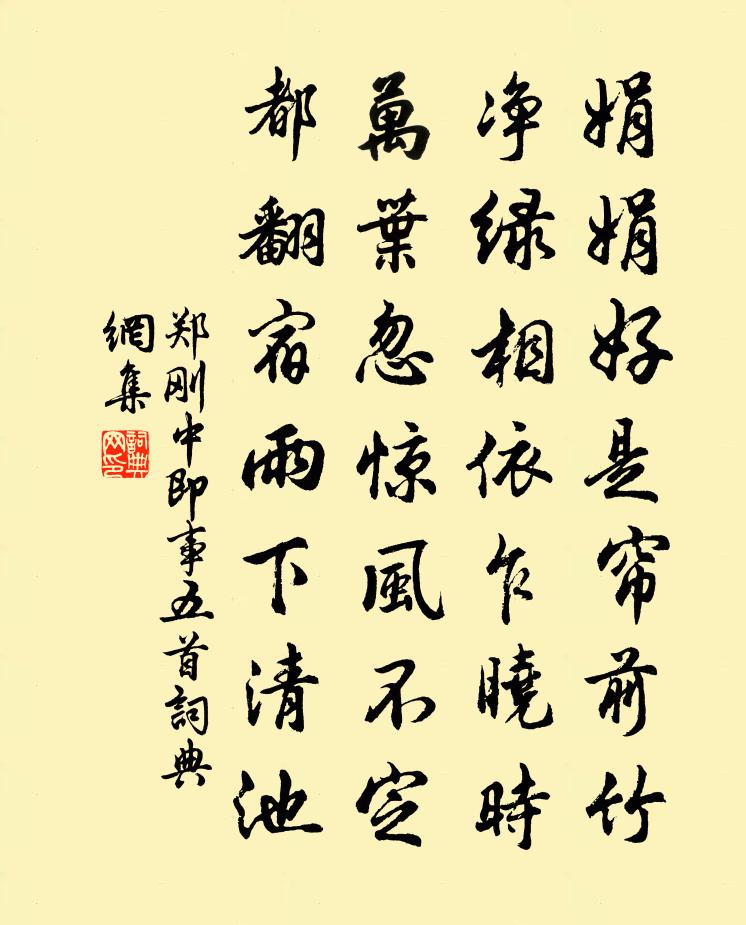 詩詞名句歷史字典書法欣賞書法字典國語詞典說文解字康熙字典古漢語字典標 題 作 者 詩 句 即事五首作者:鄭剛中 朝代:宋代即事五首原文娟娟好是簾前竹,淨綠相依乍曉時。萬葉忽驚風不定,都翻宿雨下清池。詩詞問答問:即事五首的作者是誰?答:鄭剛中問:即事五首寫於哪個朝代?答:宋代鄭剛中即事五首書法欣賞即事五首書法作品詩詞推薦梨花舒岳祥〔宋代〕新葉輕柔宜與藉,芳心疏散不須茸。象床骨冷尺春夢,霧閣神清怯曉風。雨里多情危有淚,月中澄瑩望如空。清明次韻子由書清汶老所傳秦湘二女圖蘇軾〔宋代〕春風消冰失瑤玉,我本無身安有觸。羊生得婦如得風,握手一笑未為辱。先生室中無天游,佩環何處鳴風甌。隨魔吳坂汪遵〔唐代〕踡跼鹽車萬里蹄,忽逢良鑒始能嘶。不緣伯樂稱奇骨,幾與駑駘價一齊。和謝吏部鐵字韻三十四首紀德十一首鄧肅〔宋代〕眼中儒生聊爾耳,僅免春闈飲墨水。可憐四海萬青衿,卻愧建安六七子。誰似丘侯獨可人,日無千篇即怒嗔。腐語近吟衛宗武〔宋代〕晚年打透利名關,十載尤欣老得閒。擬約綺園為隱侶,卻愁無處覓商山。送晏桂山赴高沙郡張蘊〔宋代〕攔武容台彼一時,溪鄉重幸得追隨。鷗前心事滄浪影,梅下吟情汗漫期。感慨中年無近別,徘徊明月有相思。殷勤登樓有題韓偓〔唐代〕暑氣檐前過,蟬聲樹杪交。待潮生浦口,看雨過山坳。才見蘭舟動,仍聞桂楫敲。窣雲朱檻好,終睹鳳來巢。慶曆八年四月二十八日漢體書二詩宋仁宗〔宋代〕花領紅鬃一向偏,綠槐香陌欲朝天。仍嫌眾里驕行疾,傍鐙深藏白玉鞭。臨江仙(戲為期思詹老壽)辛棄疾〔宋代〕手種門前烏臼樹,而今千尺蒼蒼。田園只是舊耕桑。杯盤風月夜,簫鼓子孫忙。七十五年無事客,不妨兩鬢如霜。清明風雪小酌莊舍示黎才翁胡寅〔宋代〕月壓梨花墜,風扶柳絮新。故園寒食路,回首踏青人。萬竅方號籟,千山忽涌銀。擁衾聽窈眇,舉盞寄經綸。浩蕩送包釋可撫機翁卷〔宋代〕州帶福星明,君今指去程。亂山秋雨後,一路野蟬鳴。時靜軍書少,人閒官況清。歸來話風土,盡識荔枝名。游廬山塗中雜詩三首曹勛〔宋代〕去去忘回遠,行行迫臘天。江寒侵老淚,霜冷逼宵眠。客路雖經至,歸塗尚過千。家山在台岳,南望幾悠然。和總管姜知閣虞儔〔宋代〕五筆梅山漫不休,詩筒倏寄置書郵。分符我亦慚銅虎,問俗人誰忍佩牛。已洗圜扉亡久系,更教彩棒息群偷。年來憶鶴呈公儀歐陽修〔宋代〕一笑相驩樂得朋,誦君雙鶴句尤清。高懷自喜凌雲格,俗耳誰思警靈聲。所好與時雖異趣,累心於物豈非情。歸休送范啟東牟融〔唐代〕楊柳春江上,東風一棹輕。行囊歸客興,尊酒故人情。畫史名當代,聲華重兩京。臨岐分手處,無奈別離生。雪後尋梅偶得絕句十首陸游〔宋代〕相逢未易可疏親,不是登牆宋玉鄰。林下風標許誰比,直須江左謝夫人。奉和虢州劉給事使君三堂新題二十一詠方橋韓愈〔唐代〕非閣復非船,可居兼可過。君欲問方橋,方橋如此作。不識自家佚名〔〕曩有愚者,常於戶外縣履為志。一日出戶,及午,忽暴雨。其妻收履。至薄暮,愚者歸,不見履,訝曰:“吾家徙因話天台勝異仍送羅道士方乾〔唐代〕積翠千層一徑開,遙盤山腹到瓊台。藕花飄落前岩去,桂子流從別洞來。石上叢林礙星斗,窗邊瀑布走風雷。縱雲和樂道自河外南過宜芳雨晴氣和景物可愛馬上司馬光〔宋代〕京洛春應老,河邊初解顏。碧浮煙際草,翠滴雨余山。目極褰帷外,詩成攬轡間。滿川桃李色,共喜傳車還。名句推薦花開不並百花叢,獨立疏籬趣未窮。鄭思肖《畫菊》 空山梵唄靜,水月影俱沉。納蘭性德《水調歌頭·題西山秋爽圖》 老至居人下,春歸在客先。劉長卿《新年作》 舊時燕子還飛否?今古不勝情。歸莊《錦堂春·半壁橫江矗起》 猿啼客散暮江頭,人自傷心水自流。劉長卿《重送裴郎中貶吉州》 啼鶯舞燕,小橋流水飛紅。白樸《天淨沙·春》 生當復來歸,死當長相思。蘇武《留別妻》 洞庭春溜滿,平湖錦帆張。陰鏗《渡青草湖》 群芳過後西湖好,狼籍殘紅。歐陽修《採桑子·群芳過後西湖好》 年年郡縣送征人,將與遼東作丘坂。王建《遼東行》