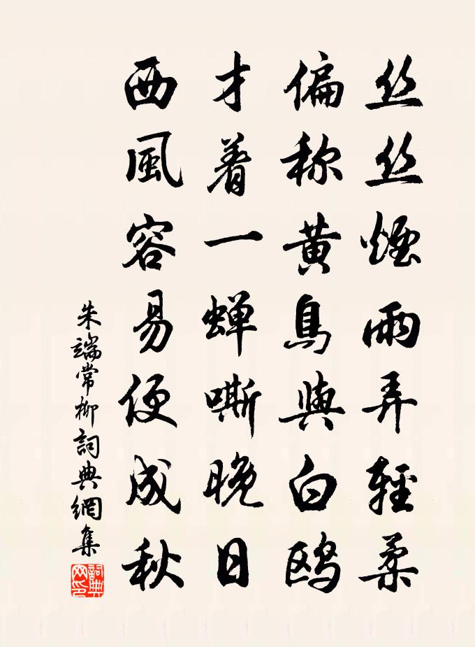 詩詞名句歷史字典書法欣賞書法字典國語詞典說文解字康熙字典古漢語字典標 題 作 者 詩 句 柳作者:朱端常 朝代:宋代柳原文絲絲煙雨弄輕柔,偏稱黃鳥與白鷗。才著一蟬嘶晚日,西風容易便成秋。詩詞問答問:柳的作者是誰?答:朱端常問:柳寫於哪個朝代?答:宋代朱端常柳書法欣賞柳書法作品詩詞推薦井上桐陸龜蒙〔唐代〕美人傷別離,汲井長待曉。愁因轆轤轉,驚起雙棲鳥。獨立傍銀床,碧桐風裊裊。文饒自昌國以詩見寄次韻二首陳瓘〔宋代〕百川滾滾到來休,此是人間第一流。鯨鬣為君翻駭浪,蘭苕空自滿汀洲。怨回紇歌二首皇甫冉〔唐代〕白首南朝女,愁聽異域歌。收兵頡利國,飲馬胡蘆河。毳布腥膻久,穹廬歲月多。雕巢城上宿,吹笛淚滂沱。祖席二將劉克莊〔宋代〕二將同時死,路人聞亦哀。力窮鏖轉急。圍厚突難開。戰骨尋應在,殘兵間有回。傷心郵遞里,隔日捷書來。丁大監文伯得余近作讀之讀之疾愈以詩見貽魏了翁〔宋代〕黔巫之南溪水茲,山粗石惡不可治。崇寧邊臣務廣地,山刊石斷林木斯。其間掌許號為郡,如以土偶安鬚眉。中州次韻陸承之寒夜有懷陳深〔宋代〕客心驚歲春,不奈送愁頻。茅屋夜來雪,梅花江上春。驅車斷行旅,閉戶有高人。奚待扁舟與,風期暗與新。閨怨二首趙蕃〔宋代〕東鄰有賢女,膏沐不加御。朝惟躬奉養,莫且趣機杼。曰賢嫁保晚,政坐一貧故。誰能幣聘之,此女非傲婦。第四橋蕭立之〔宋代〕自把孤樽擘蟹斟,荻花洲渚月平林。一江秋色無人管,柔櫓風前語夜深。細雨方回〔宋代〕雲無又有之,細亦不毫絲。未許迎眸數,才容灑面知。積能成樹滴,散忽被風吹。野燒痕初動,春鞭政要詩。西岩薛濤〔唐代〕憑闌卻憶騎鯨客,把酒臨風手自招。細雨聲中停去馬,夕陽影里亂鳴蜩。春居雜興·春雲如獸復如禽王禹偁〔宋代〕春雲如獸復如禽,日照風吹淺又深。誰道無心便容與,亦同翻覆小人心。符鳳引讖佚名〔唐代〕黑衣神孫披天裳。浪淘沙慢陳允平〔宋代〕暮煙花愁,鴉歸花古樹,雁過空堞。南浦牙檣漸發。陽關歌盡半闋。便恨入迴腸千萬結。長亭柳、寸寸攀折。望日玉蝴蝶 春夢張翥〔元代〕屏里昊山深竊,宿酲未解,午枕初甜。膽怯窗虛,驚起誤使人嫌。是乳鴉、聲聲綠樹,是語燕、兩兩朱簾。轉愁添答惠牡丹方岳〔宋代〕不識桃花過一年,已甘無分牡丹邊。開園肯剪夜欄雨,抱瓮亟分山澗泉。書室乍驚春富貴,草廬誰結酒因緣。如聞陌上花八首晁補之〔宋代〕臨安城郭半池台,曾是香塵撲面來。不見當時翠軿女,今年陌上又花開。金陵懷古劉子翬〔宋代〕荒城莽莽蔽荊榛,虎踞龍蟠跡已陳。赤壁戰爭江照晚,青樓歌舞鳥鳴春。十年王氣雄圖盡,一疊寒笳客恨新。折屐紅林檎近楊 * 〔宋代〕輕有鵝毛體,白如龍腦香。瓊筍綴飛桷,冰壺鑒方塘。渾如瑤台閬苑,更無茅舍蓬窗。畫閣自有梅裝。貪耍罷彈簧苦寒行二首張耒〔宋代〕淮南苦寒不可度,積雪連山風倒樹。長淮凍絕魚龍愁,哀鴻傍人飛不去。雪中寒日無暖光,六龍瑟縮不肯驤。老憊次韻郝元隱浙西山方回〔宋代〕疏處溫涼密處寒,未須向背問支幹。猿閒配偶雙嬉戲,樹古根枝萬屈盤。何限樓台荒宿草,幾年歌舞罷鳴鑾。賴天名句推薦喜怒無蹤,慎思及遠,人所難圖焉。來俊臣《羅織經·固榮卷第六》 冠蓋滿京華,斯人獨憔悴。杜甫《夢李白二首·其二》 十年無夢得還家,獨立青峰野水涯。謝枋得《武夷山中》 夢中未比丹青見,暗裡忽驚山鳥啼。姜夔《鷓鴣天·元夕有所夢》 用之在於機,顯之在於勢。姜子牙《六韜·文韜·兵道》 是非成敗轉頭空。楊慎《臨江仙·滾滾長江東逝水》 善附者異旨如肝膽,拙會者同音如胡越。劉勰《文心雕龍·附會》 選賢於野,則治身業弘;求士子朝,則飾智風起。沈約《宋書·列傳·卷五十五》 泰山嵯峨夏雲在,疑是白波漲東海。李白《早秋單父南樓酬竇公衡》 他鄉逢七夕,旅館益羈愁。孟浩然《他鄉七夕》