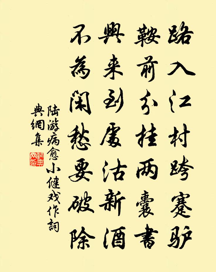 路入江村跨蹇驢,鞍前分掛兩囊書。興來到處沽新酒,不為閒愁要破除。