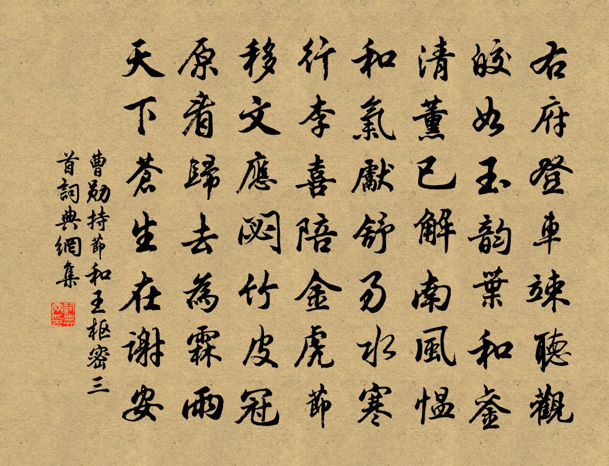 詩詞名句歷史字典書法欣賞書法字典國語詞典說文解字康熙字典古漢語字典標 題 作 者 詩 句 持節和王樞密三首作者:曹勛 朝代:宋代持節和王樞密三首原文右府登車竦聽觀,皎如玉韻葉和鑾。清薰已解南風慍,和氣先舒易水寒。行李喜陪金虎節,移文應閟竹皮冠。原看歸去為霖雨,天下蒼生在謝安。詩詞問答問:持節和王樞密三首的作者是誰?答:曹勛問:持節和王樞密三首寫於哪個朝代?答:宋代曹勛持節和王樞密三首書法欣賞持節和王樞密三首書法作品詩詞推薦別留少策兼呈玉黨先生陳元晉〔宋代〕天涯萬里同為客,先自非愀更送君。歸路明朝好蕭索,一聲雁斷幾重雲。次韻子瞻和淵明擬古九首蘇轍〔宋代〕蕭蕭發垂素,晡日迫西隅。道人愍我老,元氣時卷舒。歲惡風雨交,何不完子廬。萬法滅無餘,方寸可久居。將掃至正戊戌九日感懷葉顒〔元代〕風急登高野客傷,悲笳聲里過重陽。正須擊劍論《孤憤》,何暇攜壺舉一觴!白骨不埋新戰恨,黃花空發舊枝香。望海潮鄱陽護戎〔宋代〕雲收飛腳,日祛怒暑,新蟬高柳鳴時。蘭佩紫囊,蒲抽碧劍,吳絲兩腕雙垂。聞道五陵兒。蛟龍吼波面,沖碎琉璃寄程漕毛滂〔宋代〕風流三老今無有,明珠雙璧公其後。長安初見紫微人。山陽途識生風手。同時蜀艉共差遲,今日吳餓付忠厚。吳餓曾谹父將赴浮光九日無酒賦二詩次韻王洋〔宋代〕經營戒奔忙,高士乃貴懶。不然擊匏瓜,何異列樗散。若人落閒社,帝觀助煩惋。況聞上方札,天子恨見晚。朝廷明月陳杰〔宋代〕皎皎明月,載缺載盈,我酒在庭。減字木蘭花沈瀛〔宋代〕淵明酒止。莫信渠言心妄喜。達士高風。只說三杯大道通。不如飲酒。人世豈能金石壽。無奈渠何。贏得尊前笑語宮詞一百首岳珂〔宋代〕十里金明貫寶津,鴨頭新綠水粼粼。玉卮齊獻堯階壽,柳鈀花光一樣春。金宮詞一百首其二十五門內使走天街,當水雲堂汪應辰〔宋代〕雲本無心水自流,龍鱗鳳翼此中游。遂令巫峽桃源景,頓覺收歸在寸眸。山中即景游酢〔宋代〕翠靄光風世界,青松綠竹入家。天外飛來野鳥,澗中流出桃花。同山窗游黃山程無鳳〔宋代〕解鞍小憩索胡床,五載重來兩鬢霜。庭下幽花迷蛺蝶,屋頭喬木弄笙簧。棣華喜遂團欒樂,柳絮從教上下狂。明月題史髯詞卷二首陳造〔宋代〕方朔歲星仍客星,竊桃他日太狂生。幾時又泛靈槎去,平掇天孫翠纖成。雪峰真覺祖師贊釋惟一〔宋代〕弄出鱉鼻蛇,彈起廣陵曲。清韻難可掩,毒氣不可觸。瞻之不足聽不足,千古萬古福城福。寄趙叔魯戴師古〔宋代〕相知言莫盡,別後意如何。命笑人冰薄,愁因夜雨多。全家寓京國,無地著吟喔。會得窮通理,從科緝薜蘿。銘座六言二首劉克莊〔宋代〕象防跡露埋齒,麝以香聞割臍。群兒爭放紙鷂,老子寧為木雞。如魚水(二之一·仙呂調)柳永〔宋代〕輕靄浮空,亂峰倒影,瀲灩十里銀塘。繞岸垂楊。紅樓朱閣相望。芰荷香。雙雙戲、鸂鶒鴛鴦。乍雨過、蘭芷汀洲使東川南秦雪元稹〔唐代〕帝城寒盡臨寒食,駱谷春深未有春。才見嶺頭雲似蓋,已驚岩下雪如塵。千峰筍石千株玉,萬樹松蘿萬朵銀。飛鳥張平章席上汪元量〔宋代〕兩鬢蕭蕭不耐秋,興來今日謁公侯。舞余燕玉錦纏頭,又著紅靴踢繡毬。吳兒汪元量〔宋代〕玉貌兒童淚盈把,辮髮垂肩行酒斝。將軍又去打蘇州,出門指使教牽馬。名句推薦怒猊抉石,渴驥奔泉宋祁、歐陽修、范鎮、呂夏卿等《新唐書·列傳·卷八十五》 騷人可煞無情思,何事當年不見收。李清照《鷓鴣天·桂花》 同居長乾里,兩小無嫌猜。李白《長干行二首》 巧媳婦煮不得沒米粥馮夢龍《警世通言·卷十二》 古岩泉滴滴,幽谷鳥關關。令狐楚《賦山 / 一七令·山》 數枝門柳低衣桁,一片山花落筆床。岑參《山房春事二首》 上有流思人,懷舊望歸客。謝朓《送江水曹還遠館》 名不徒生,而譽不自長。功成名遂。墨子《墨子·02章 修身》 憑高遠望,見家鄉、只在白雲深處。王瀾《念奴嬌·避地溢江書於新亭》 編草結庵,不違涼暑。蕭子顯《南齊書·列傳·卷四十》