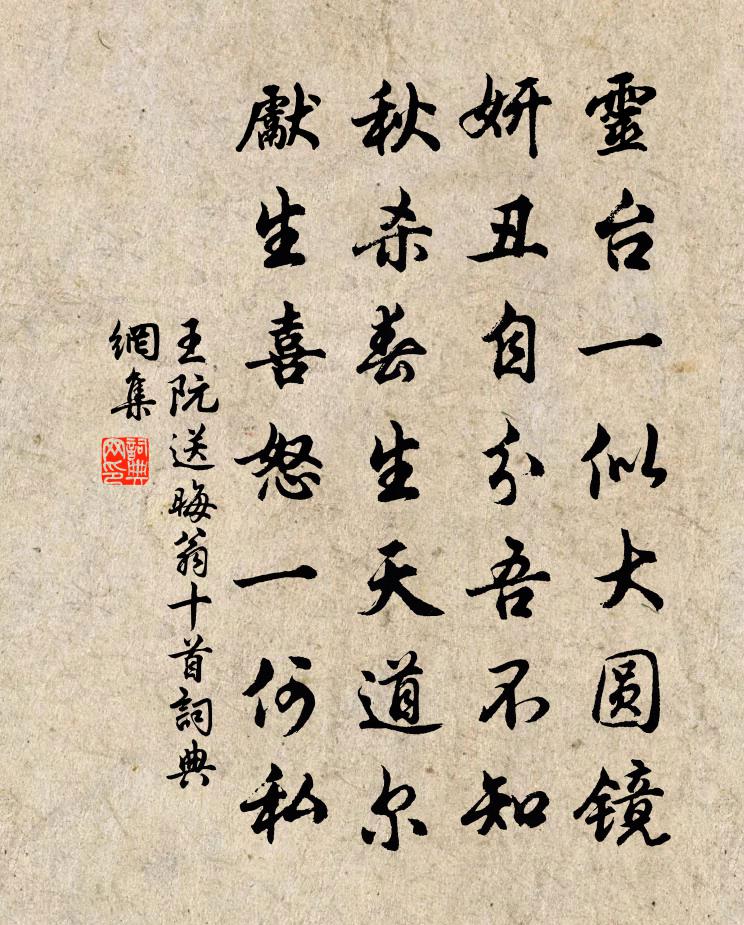 詩詞名句歷史字典書法欣賞書法字典國語詞典說文解字康熙字典古漢語字典標 題 作 者 詩 句 送晦翁十首作者:王阮 朝代:宋代送晦翁十首原文靈台一似大圓鏡,妍醜自分吾不知。秋殺春生天道爾,先生喜怒一何私。詩詞問答問:送晦翁十首的作者是誰?答:王阮問:送晦翁十首寫於哪個朝代?答:宋代王阮送晦翁十首書法欣賞送晦翁十首書法作品詩詞推薦感舊寇準〔宋代〕長思密勿侍甘泉,丹地翱翔獨少年。重到文昌倍惆悵,秋風霜鬢共蕭然。送董頲戴叔倫〔唐代〕霜雁群飛下楚田,羈人掩淚望秦天。君行江海無定所,別後相思何處邊。改魏扶詩佚名〔宋代〕葉落滿庭陰,朱門試院深。昔年辛苦地,今日負前心。元夕用胡經仲所寄韻呈辛倅及諸僚友吳芾〔宋代〕星斗潛移下九天,滿城如晝酒如泉。當時行樂陪千騎,今日重來恰十年。燈燭光中春更好,綺羅叢里月爭妍。諸君句周邦彥〔宋代〕對花今日柰天涯。初夏丘葵〔宋代〕一信楝花風,一年春事空。池荷還揭揭,櫻筍又匆匆。空嘆時光換,誰知造化工。盡將枝上色,並作石榴紅。次韻春日即事六首洪皓〔宋代〕何腓百鳥獻花紅,懶似吾師有祖風。儒釋自來曾結社,不妨俱隱小堂中。和陳翃郎中拜本府少尹兼侍御史獻上侍中因呈同院諸公盧綸〔唐代〕金印垂鞍白馬肥,不同疏廣老方歸。三千士里文章伯,四十年來錦繡衣。節比青松當澗直,心隨黃雀繞檐飛。鄉中寡婦詩曹植〔魏晉〕高墳郁兮巍巍。松柏森兮成行。憶山中梅送大聲瞻軍赴調趙蕃〔宋代〕江南梅蕊臘前破,憶我林園疲坐臥。君行正過玉溪邊,雪後應余欲殘朵。君既不飲何以酬,詩成寄我無悠悠。得意人月圓楊無咎〔宋代〕月華燈影光相射。還是元宵也。綺羅如畫,笙歌遞響,無限風雅。鬧蛾斜插,輕衫乍試,閒趁尖耍。百年三萬六千侍宴安樂公主新宅應制武平一〔唐代〕紫漢秦樓敞,黃山魯館開。簪裾分上席,歌舞列平台。馬既如龍至,人疑學鳳來。幸茲聯棣萼,何以接鄒枚。桃源釋宗覺〔宋代〕深隱猶疑世上聞,桃花還洩洞中春。當時不得漁人入。將謂人問幾世秦。送蕭德洪赴試建安李彌遜〔宋代〕鴻鵠不作三年飛,乘秋逸興高九嶷。去尋岩桂香中路,趁得御柳風前期。青錢立登天上選,黃絹共賞人間辭。漢庭弟觀為眾奉里神于丹山僧舍有五絕因趁韻陳著〔宋代〕老我今年七十二,已無半念到窮通。北窗一枕羲皇上,日自流西水自東。塞上曲田錫〔宋代〕秋氣生朔陲,塞草猶離離。大漠西風急,黃榆涼葉飛。襜襤罷南牧,林胡畏漢威。藁街將入貢,代馬就新羈。浮雲疊翠亭王安石〔宋代〕煙籠遠浦迷芳草,日照澄湖浸碧峰。幸有清樽堪酩酊,忍陪良友不從容。送傳龍圖帥秦孔武仲〔宋代〕公才卓牽有施為,鎮俗安邊正及時。東壁圖書遷秩峻,西州父老嘆來遲。門開細柳軍無匹,劍下樓蘭敵未知。聞道湖亭與行簡宿白居易〔唐代〕潯陽少有風情客,招宿湖亭盡卻回。水檻虛涼風月好,夜深誰共阿憐來?賞牡丹謝枋得〔宋代〕洛陽園裡草茵寒,夢想堯夫一寸丹。安得根頭知上品,今人多是就花看。名句推薦時危見臣節,世亂識忠良。鮑照《代出自薊北門行》 鄉書不可寄,秋雁又南回。韋莊《章台夜思》 殘雪庭陰,輕寒簾影,霏霏玉管春葭。王沂孫《高陽台·和周草窗寄越中諸友韻》 相見情已深,未語可知心。李白《相逢行二首》 以小人尚民而威,以非所取於民而巧,是傷國之大災也。荀子《荀子·王霸》 無求到處人情好,不飲任他酒價高。佚名《增廣賢文·上集》 啼號升斗抵千金,凍雀飢鴉共一音。范成大《雪中聞牆外鬻魚菜者求售之聲甚苦有感》 樂遊原上清秋節,鹹陽古道音塵絕。李白《憶秦娥·簫聲咽》 至今不會天中事,應是嫦娥擲與人。皮日休《天竺寺八月十五日夜桂子》 夫為將者,必有腹心、耳目、爪牙。諸葛亮《將苑·卷一·腹心》