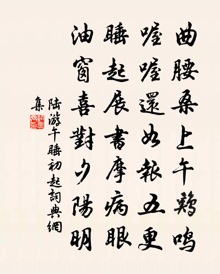 曲腰桑上午雞鳴,喔喔還如報五更。睡起展書摩病眼,油窗喜對夕陽明。