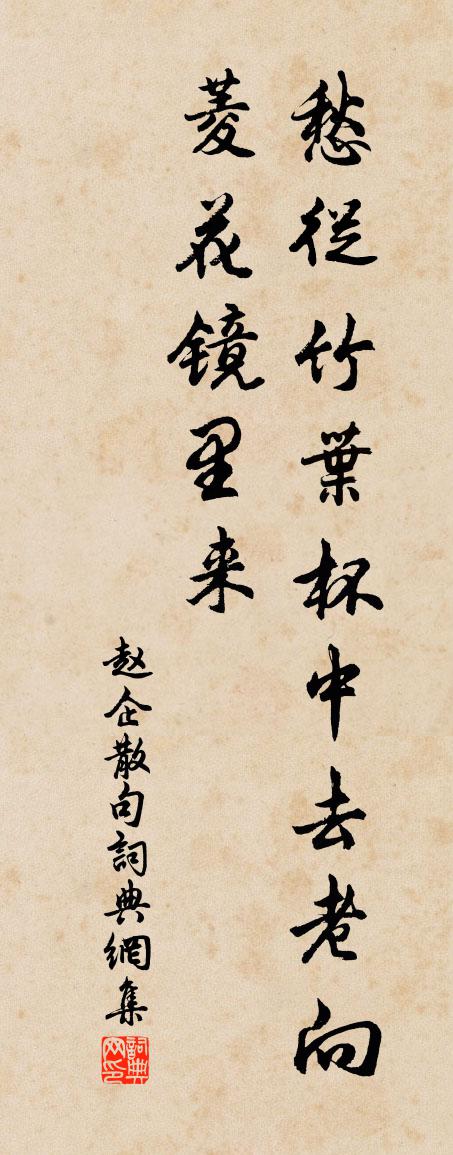 詩詞名句歷史字典書法欣賞書法字典國語詞典說文解字康熙字典古漢語字典標 題 作 者 詩 句 句作者:趙企 朝代:宋代句原文愁從竹葉杯中去,老向菱花鏡里來。詩詞問答問:句的作者是誰?答:趙企問:句寫於哪個朝代?答:宋代趙企句書法欣賞句書法作品詩詞推薦清平樂(二之一)陳師道〔宋代〕秋聲隱地。葉葉無留意。冰簟流光團扇墜。驚起雙棲燕子。夜堂簾合迴廊。風幃吹亂凝香。臥看一庭名月,曉衾不送別趙倅姚勉〔宋代〕寶婺星邊太白仙,馭風飛下錦河邊。朅來盡散陽春腳,歸去獨撐明月船。名重題輿千里郡,詔催步履八花磚。只愁徽宗皇帝秋賦御書贊岳珂〔宋代〕帝宣和之太平兮,忻朝野之多娛。偉楚臣之託辭兮,侈肆筆之特書。猗百工之精能兮,璨玳軸而金朱。宛百年其如古意梅堯臣〔宋代〕林中即鹿人,常為虎所即。虎豈援鹿者,亦各求其食。趨利不顧害,禍患安可息。古來遯世土,輕彼用智力。題庾嶺三亭詩通越亭余靖〔宋代〕行盡章江庾水濱,南踰梅館陟嶙峋。城中紹祚千年聖,海外占風九譯人。嶠嶺古來稱絕徼,梯山從此識通津。輿琛鶴劉筠〔宋代〕碧樹陰濃釦砌平,華亭歸夢曉頻驚。仙經若未標奇相,琴操何因寄恨聲。養氣自憐雞善勝,全身卻許雁能鳴。芝田行唐村平野,晴色妍甚范成大〔宋代〕暖日烘繁梅,穠香撲征鞅。雲煙釀春色,心目兩駘蕩。柳眉翠已掃,桑眼青未放。茲游定不俗,前路八千嶂。生查子呂渭老〔宋代〕攤錢臨小窗,撲蝶穿斜徑。醉戲晚風前,吹亂連枝影。別來秋夜長,夢到金屏近。腸斷一聲雞,殘月懸朝鏡。偶書呈雪溪葛守正車若水〔宋代〕秦埃幻六籍,斯文天地屯。詝言嘈萬喙,渺不游其津。作者能幾何,落落星已晨。單其千載傳,覷斑尤苦辛。毫芒黃用之遷居奉寄姜特立〔宋代〕盡傾清俸買新居,橐內無金只有書。不用鄰人借輿馬,已知家具少於車。句諶祜〔宋代〕天開暝色雲千里,雨洗秋空月十分。經豐城劍池詩陰鏗〔南北朝〕清池自湛澹。神劍久遷移。無復連星氣。空餘似月池。夾筱澄深淥。含風結細漪。唯有蓮花蕚。還想匣中雌。下第薛嵎〔宋代〕寸晷場中較尺尋,榮親無路淚盈襟。一貧誰過簞瓢巷,百口難寬兒女心。昨夢重圓知誤喜,平生失計為工吟。近來江上吳叔元〔宋代〕獨坐江之涘,高秋葉落時。風狂疑水立,雲動覺天移。浦遠孤鷗沒,溪平小艇遲。徘徊待月上,把酒寄遐思。題竹繆鑒〔宋代〕甚矣吾衰矣,深君不用名。瘦因詩思苦,貧為利心輕。有竹堪醫俗,無花可問盟。醉眠閒聽雨,飢鼠齧書檠。河傳令 贈京兆趙公王哲〔元代〕心合眼瑩,耳聰意靜,鼻通舌辯。說山頭,一派清流落澗。中烹,焰兒,緊不慢。西金解東方版片,便令虎龍,同書江亭壁陳郁〔宋代〕人間風浪最傾危,君自深藏了不知。只恐隨流禹門去,又翻頭角露天池。五老峰王禹偁〔宋代〕矗矗拂星榆,崢嶸與眾殊。精靈奔昂宿,神異載河圖。捧日光先及,參天禮不趣。綠蘿供組綬,清籟獻笙竽。泄雨寓興七首魏野〔宋代〕伯夷非好餓,展禽非好黜。聖人不私己,動為萬世則。夷齊苟就祿,賊亂何由窒。展禽苟便去,何人肯佐國。其跡七夕宴懸圃二首崔顥〔唐代〕長安城中月如練,家家此時持針線。仙裙玉佩空自知,天上人間不相見。長信深陰夜轉幽,瑤階金閣數螢流。班姬名句推薦鬧里掙錢,靜處安身。佚名《增廣賢文·上集》 待浮花、浪蕊都盡,伴君幽獨。蘇軾《賀新郎·夏景》 利出者實及,怨往者害來。列子及其弟子《列子·說符》 玉門山嶂幾千重,山北山南總是烽。王昌齡《從軍行七首》 本分人,即是快活人,無奈做本分人者甚少。王永彬《圍爐夜話·第四則》 離情被橫笛,吹過亂山東。王安石《江上》 蠟燭有心還惜別,替人垂淚到天明。杜牧《贈別》 欲潔何曾潔,雲空未必空。可憐金玉質,終陷淖泥中。曹雪芹《紅樓夢·第五回》 一任紫玉無情,夜寒吹裂納蘭性德《琵琶仙·中秋》 驚風飄白日,忽然歸西山曹植《贈徐幹詩》