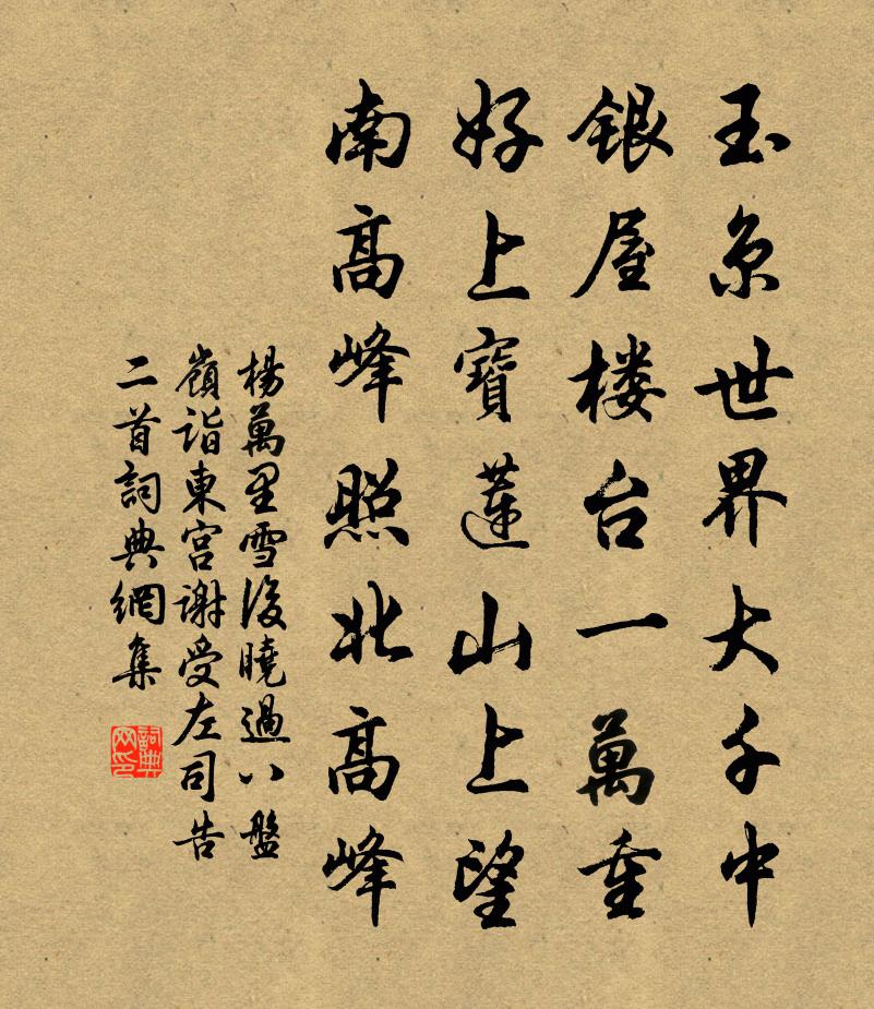 玉京世界大千中,銀屋樓台一萬重。好上寶蓮山上望,南高峰照北高峰。