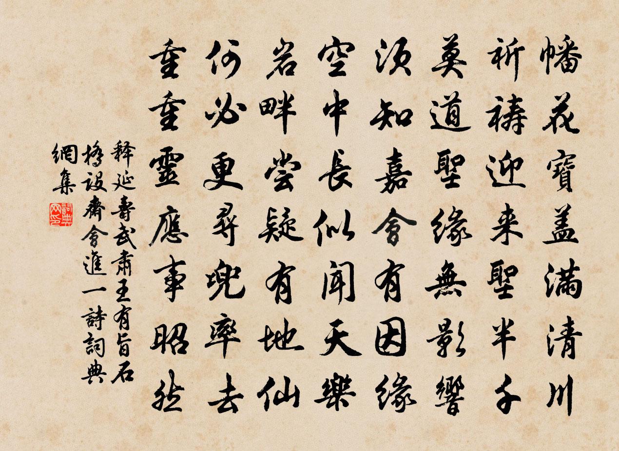 詩詞名句歷史字典書法欣賞書法字典國語詞典說文解字康熙字典古漢語字典標 題 作 者 詩 句 武肅王有旨石橋設齋會進一詩作者:釋延壽 朝代:宋代原文幡花寶蓋滿清川,祈禱迎來聖半千。莫道聖緣無影響,須知嘉會有因緣。空中長似聞天樂,岩畔嘗疑有地仙。何必更尋兜率去,重重靈應事昭然。詩詞問答問:《武肅王有旨石橋設齋會進一詩》的作者是誰?答:釋延壽問:該詩寫於哪個朝代?答:宋代書法欣賞武肅王有旨石橋設齋會進一詩書法作品詩詞推薦敘州陸游〔宋代〕楚柂吳檣又遠遊,浣花行樂夢西州。千尋鐵鎖遠堪恨,空鎖長江不鎖愁!贈友之閩趙良坡〔宋代〕世人作離別,惟別酒一觴。今我與君別,稍稍鄙玕琅。閩海古名地,幕職不可量。聖明廣延攬,計日下褒章。願將關山路三首孔武仲〔宋代〕晨朝馬匹涉崎嶇,映水梅花尚一株。旬日山川歷千里,江南雪蕊已全無。以使事過成都訖事而歸虞萬州成都尉高表史拉魏了翁〔宋代〕無事江流到處平,無言天運四時新。真仙此意何曾間,直到如今瞪眎人。有客來從陽羨聞元績離家已月余由崑山過臨安仲並〔宋代〕風露侵人曷往哉,白雲飛處棹徘徊。平時識面盡經過,莫為茅檐偏不來。青玉案張榘〔宋代〕龍香熏被羅屏繞。任窗外、風兒峭。鴛枕夢回雞唱曉。丫鬟驚笑,瓊枝低亞,錯認梅花老。紅爐獸炭裝還倒。強梳抱瓮秦觀〔宋代〕搰搰抱瓮人,汒呼治其內。仲尼為所輕,子貢無以對。舍器欲還朴,為量固已隘。苟得渾沌真,寧羞事機械。挽王厚齋尚書牟巘五〔宋代〕文獻遺諸老,風霜魯殿余。斯人不可贖,吾道意何如。永念年家好,曾聯選部居。無由陪縞送,東望淚沾裾。譏元載詩高亭〔唐代〕上元官吏務剝削,江淮之人皆白著。浣沙溪(黃鐘·第二)周邦彥〔宋代〕貪向津亭擁去車。不辭泥雨濺羅襦。淚多脂粉了無餘。酒釅未須令客醉,路長終是少人扶。早教幽夢到華胥。送翁靈舒赴越帥分韻得欲字戴栩〔宋代〕越峰羅四圍,越水鏡相燭。我昔扁舟來,十日看不足。天垂禹祠旁,海入秦望曲。荒寒暝色歸,牛背下鴝鵒。興亡別臨邛知縣李允成李流謙〔宋代〕周公山前傾蓋時,再歲通家同骨肉。紫岩樓畔又從容,四方上下如相逐。另來每恨無見日,要見夙緣償未足。公來寫心五首方回〔宋代〕此身修至此,尚恐玉有瑕。自茲修更修,庶幾寬我涯。不然輪生角,豈不柅厥車。故無熊虎卜,亦未夢龍蛇。學不重次龔子輝平塘韻三首陶夢桂〔宋代〕白髮多時精力少,綠樽疎後簡編親。本無世上榮華分,莫作山羊懶惰人。幽居陸游〔宋代〕衰鬢蕭條笑舊青,一枝棲穩寄余齡。徐行不媿衣露肘,安臥何妨席見經。視客恰如堂上燕,捐書那願案頭螢。時時南康郡牧陸肱郎中辟許棠先輩為郡從事,因有寄贈鄭谷〔唐代〕末路思前侶,猶為戀故巢。江山多勝境,賓主是貧交。飲舫閒依葦,琴堂雅結茅。夜清僧伴宿,水月在松梢。題長松二首何耕〔宋代〕老檜搖風萬壑聲,梨花著雨四山明。龕中大士好看客,排遣雲陰作晚晴。贈昌言太中韓維〔宋代〕春風吹袂逾嶺,秋雨隨軒達潁亭。達理偶同無剩語,論交雖晚便忘形。兩株枯木同危坐,數朵寒花伴獨醒。鴨子陂送陳應求赴官黃公度〔宋代〕莫辭酒,且聽歌,休被驪駒白玉珂。主人勸客終今夕,明日長亭可奈何。金風蕭蕭鏖餘熱,砌蟲唧唧助淒切。此時我屋晁說之〔宋代〕窈窕吾山好,欄乾我屋宜。胡然名未著,不得謝公詩。名句推薦天蒼蒼,野茫茫。風吹草低見牛羊。佚名《敕勒歌》 時無英雄,使豎子成名!房玄齡《晉書·列傳·第十九章》 吏呼一何怒,婦啼一何苦。杜甫《石壕吏》 林壑斂暝色,雲霞收夕霏。謝靈運《石壁精舍還湖中作》 高山安可仰,徒此揖清芬李白《贈孟浩然》 慟哭六軍俱縞素,衝冠一怒為紅顏。吳偉業《圓圓曲》 寢興目存形,遺音猶在耳。潘安《悼亡詩三首》 回看射鵰處,千里暮雲平。王維《觀獵》 父在,觀其志;父沒,觀其行;三年無改於父之道,可謂孝矣。孔子弟子《論語·學而篇》 十年重見,依舊秀色照清眸。王以寧《水調歌頭·呈漢陽使君》