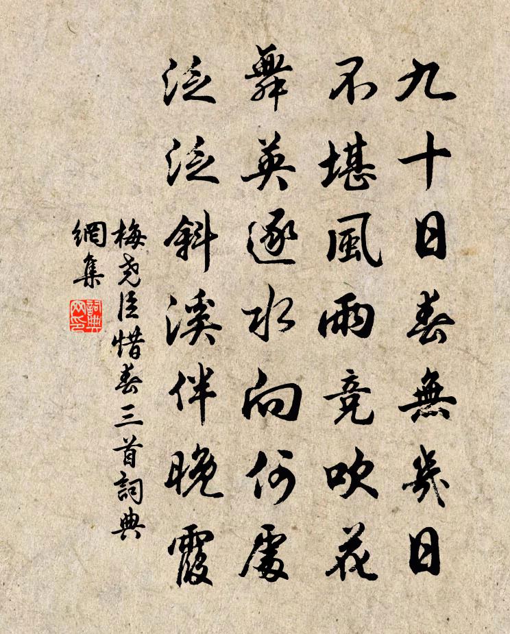 九十日春無幾日,不堪風雨競吹花。舞英逐水向何處,泛泛斜溪伴晚霞。