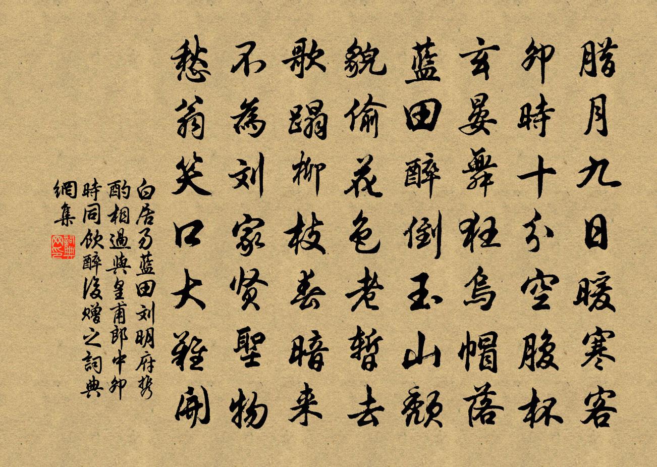 臘月九日暖寒客,卯時十分空腹杯。玄晏舞狂烏帽落,藍田醉倒玉山頹。