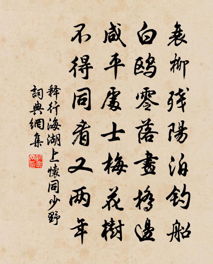 詩詞名句歷史字典書法欣賞書法字典國語詞典說文解字康熙字典古漢語字典標 題 作 者 詩 句 湖上懷同少野作者:釋行海 朝代:宋代湖上懷同少野原文衰柳殘陽泊釣船,白鷗零落畫橋邊。鹹平處士梅花樹,不得同看又兩年。詩詞問答問:湖上懷同少野的作者是誰?答:釋行海問:湖上懷同少野寫於哪個朝代?答:宋代釋行海湖上懷同少野書法欣賞湖上懷同少野書法作品詩詞推薦小蟹文同〔宋代〕骨甲與支節,解絡尤精研。手足雖爾多,能使如一錢。戲謝師直梅堯臣〔宋代〕古錦裁詩句,班衣戲坐隅。木奴今正熟,肯效陸郎無。豐年趙葵〔宋代〕一犁春雨足生涯,黍稷桑麻已滿略。軹頭今年風景好,村村社酒樂農家。定風波令(再次韻送子瞻·般涉調)張先〔宋代〕談辨才疏堂上兵。畫船齊岸暗潮平。萬乘靴袍曾好問。須信。文章傳口齒牙清。三百寺應游未遍。□算。湖山風物初寒老身頗健戲書陸游〔宋代〕一身百病老難支,病減身輕偶此時。窗暖不妨聊假寐,囊空久已罷招醫。山爐巉絕香生岫,鏊研坡陀墨滿池。個裡秋夜蘇泂〔宋代〕一點流螢自入扉,清風都向草頭吹。眠稀又被啼螿妒,看見新涼上小時。致孫狀元訴醵罰錢盧嗣業〔唐代〕未識都知面,頻輸復分錢。苦心事筆硯,得志助花鈿。徒步求秋賦,持杯給暮饘。力微多謝病,非不奉同年。偈頌九十三首釋梵琮〔宋代〕把定風光末上開,紛紛如雪點蒼苔。清香飄處多真實,真實中藏調鼎才。學北堂有海棠一株顏色至佳凋落稍速憶而為詩李覯〔宋代〕來時初見滿枝紅,璧碎珠沉幾日中。宋玉有鄰誠耐事,三年猶在短牆東。蘇幕遮 姜鍾二公法名王處一〔元代〕鍾守中,姜守靜。接引丹陽,濟度諸靈性。志懇心堅人盡敬。遠近聞風,一布欽真聖。到如今,誰復聽。工匠艱難通判孫宗丞分餉溫柑次馬撫乾詠橘韻作詩為謝喻良能〔宋代〕珍果分柑不作疏,李衡千顆直堪奴。初嘗蔌蔌泉流齒,未摘青青香滿株。可是騷人憐楚樹,只應仙種自蓬壺。龍城偈頌四十一首釋慧暉〔宋代〕余月今朝初一日,滿山綠樹影青青。異苗繁茂只斯是,大地全分畫不成。高平九日唐彥謙〔唐代〕雲淨南山紫翠浮,憑陵絕頂望悠悠。偶逢佳節牽詩興,漫把芳尊遣客愁。霜染鴉楓迎日醉,寒沖涇水帶冰流。烏紗新暑賦西軒竹衛宗武〔宋代〕此君與我同襟期,延致屋宅西財維。涵濡雨露歲未半,柯葉深茂華而滋。恍疑神士萃庭宇,旌{左方右童}羽蓋紛句韓元吉〔宋代〕但如王粲賦從軍,莫為班姬詠團扇。郊廟朝會歌辭建隆乾德朝會樂章二十八首佚名〔宋代〕壺關方逆命,投袂起親征。虎旅聊攻伐,梟巢遽蕩平。天威清朔漠,仁澤被黎氓。按節皇興復,洋洋載頌聲。贈李溟秀才棲白〔唐代〕南居古廟深,高樹宿山禽。明月上清漢,騷人動楚吟。數篇正始韻,一片補亡心。孤悄欺何謝,雲波不可尋。竹羅鄴〔唐代〕翠葉才分細細枝,清陰猶未上階墀。蕙蘭雖許相依日,桃李還應笑後時。抱節不為霜霰改,成林終與鳳凰期。渭濱隴頭水徐陵〔南北朝〕隴頭流水急。水急行難渡。半入隗囂營。傍侵酒泉路。心交賜寶刀。小婦裁紈素。欲知別家久。戎衣今已故。書懷陸游〔宋代〕無事自能心太平,有為終蔽性光明。皮膚脫盡見真理,粱肉掃空甘菜羹。處處浮家成野宿,時時策蹇作山行。平生名句推薦千載琵琶作胡語,分明怨恨曲中論。杜甫《詠懷古蹟五首·其三》 一家二貴,事乃無功。韓非及後人《韓非子·揚權》 喜無以賞,怒無以殺管仲《管子·版法》 范增一去無謀主,韓信原來是逐臣。嚴遂成《烏江項王廟》 城裡夕陽城外雪,相將十里異陰晴。王守仁《次韻陸僉憲元日春晴》 殊方日落玄猿哭,舊國霜前白雁來。杜甫《九日五首·其一》 語來江色暮,獨自下寒煙。李白《尋雍尊師隱居》 魏都接燕趙,美女夸芙蓉。李白《魏郡別蘇明府因北游》 七國三邊未到憂,十三身襲富平侯李商隱《富平少侯》 人生如寄,何事辛苦怨斜暉。朱熹《水調歌頭·隱括杜牧之齊山詩》
